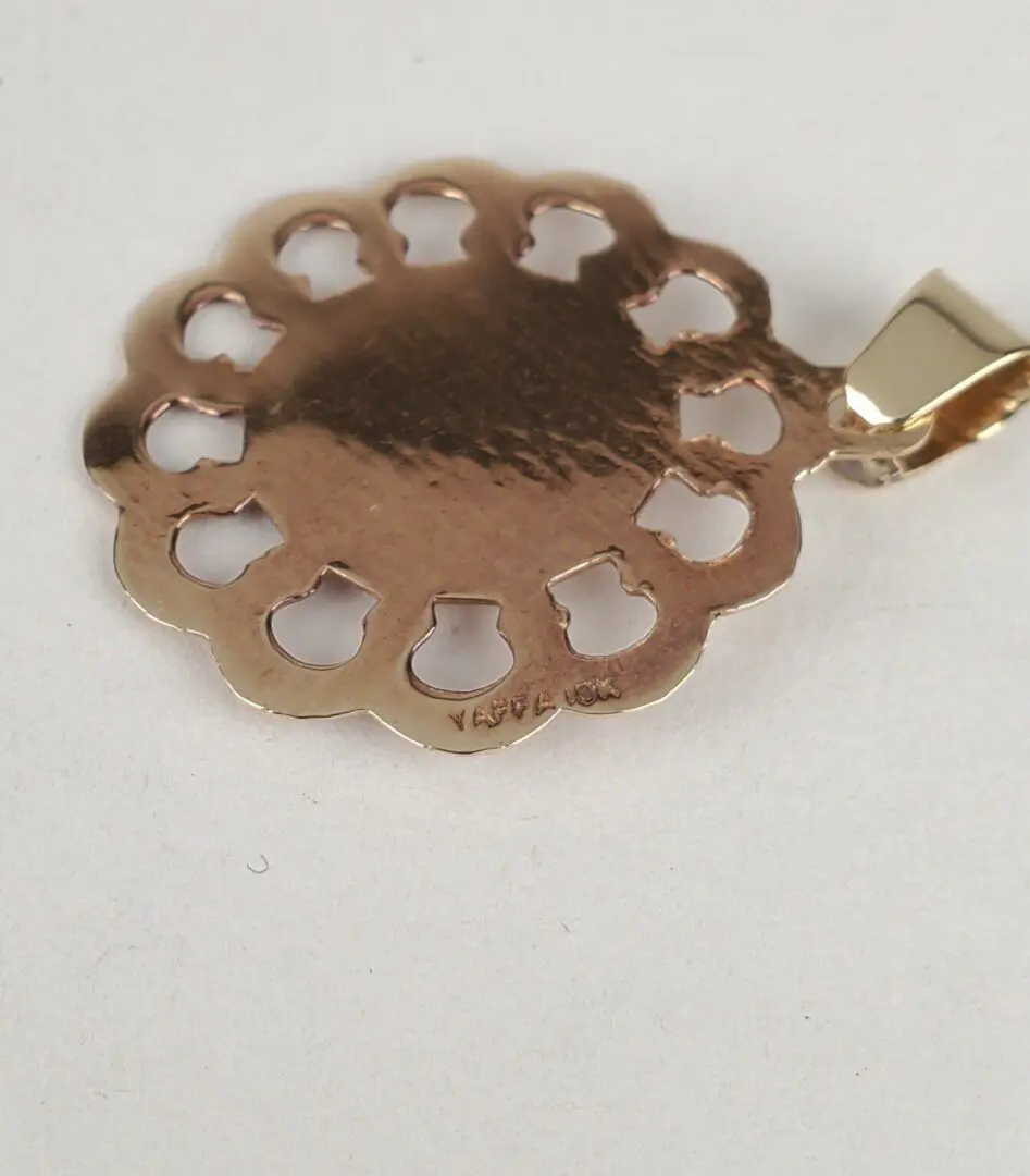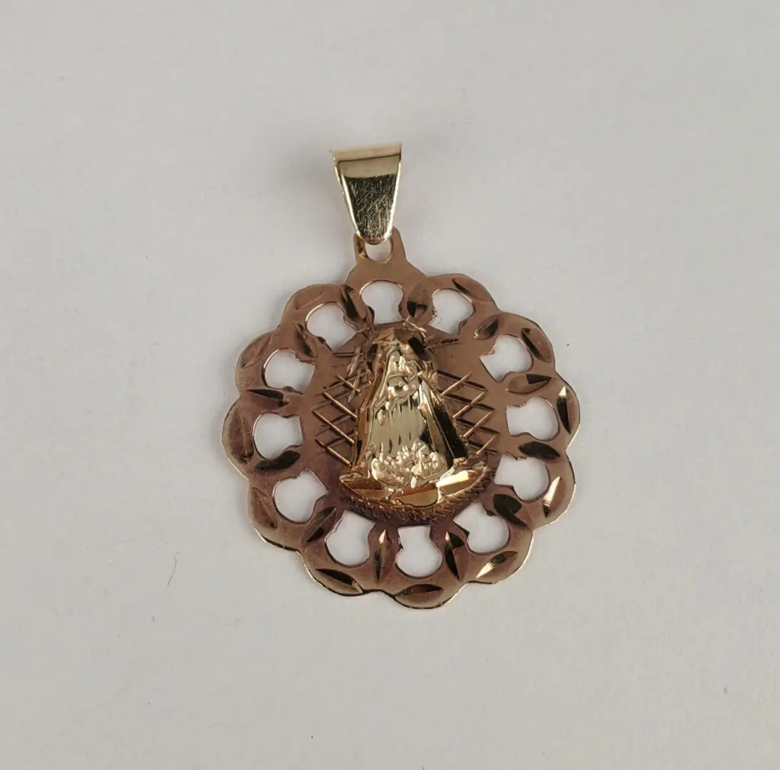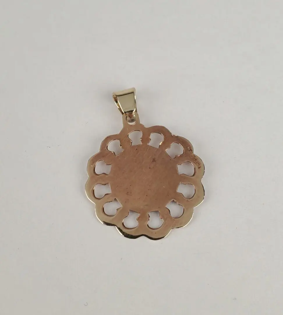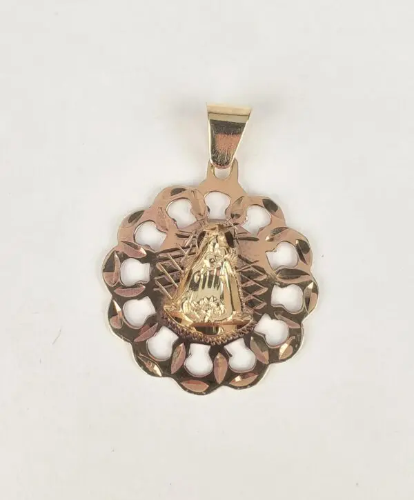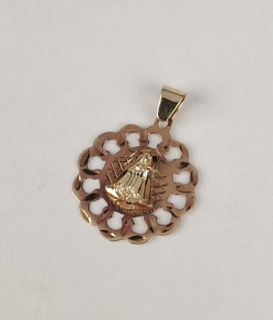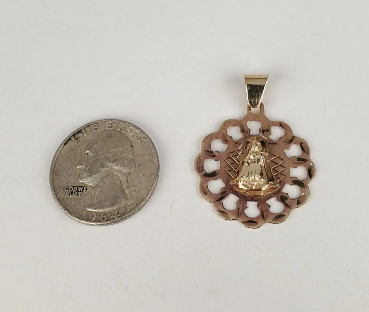 10k Multi-Tone Gold Caridad De Cobre Medallion Circle Drop Pendant
