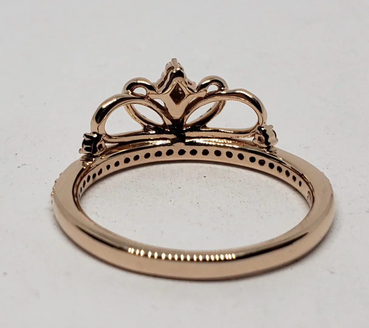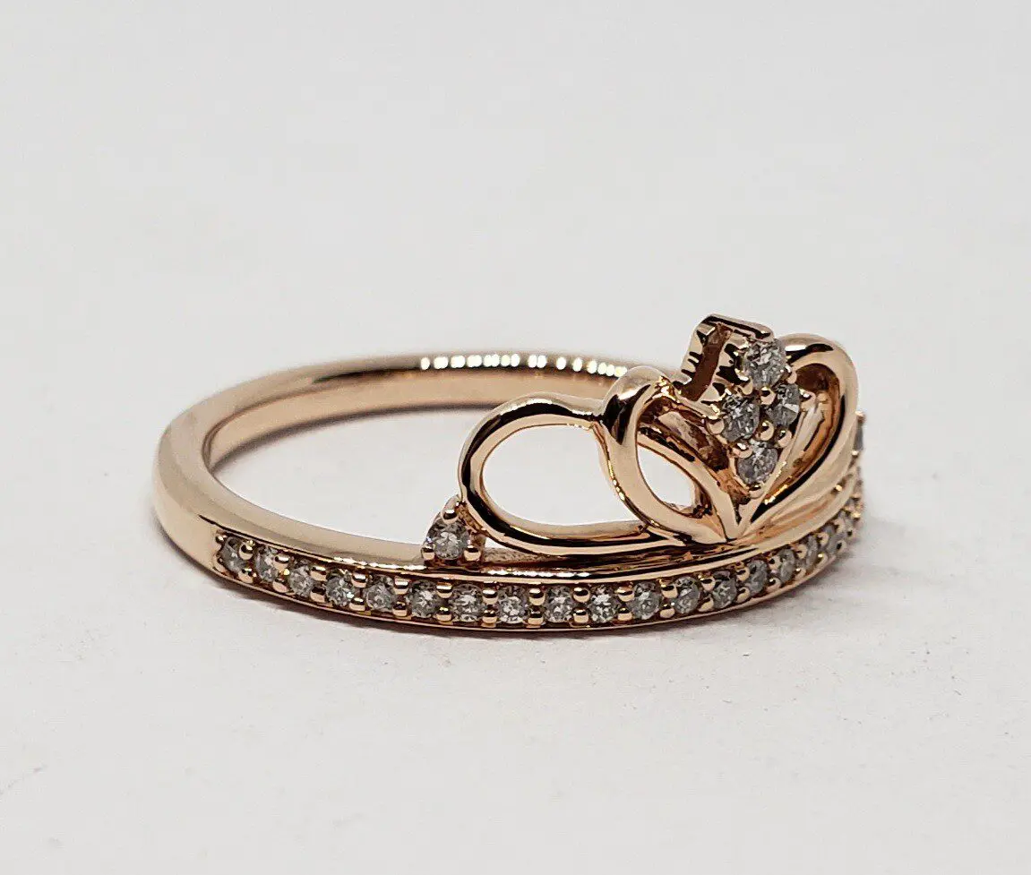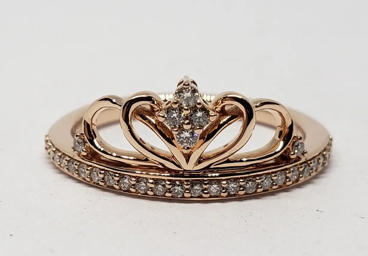 10k Rose Gold Crown Princess Queen King Tiara Diamond Cluster Ring Emmy London