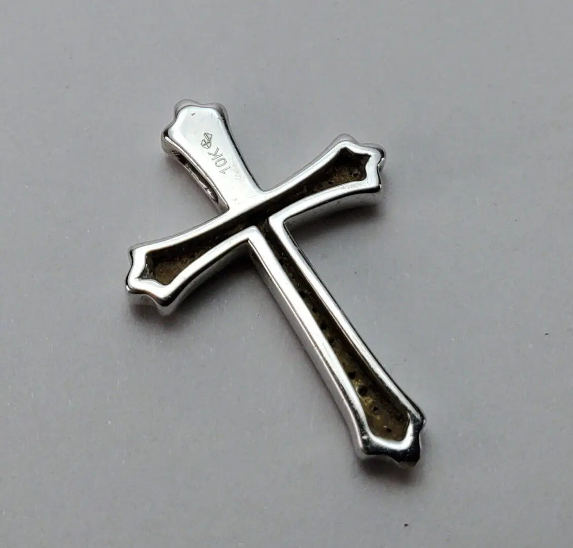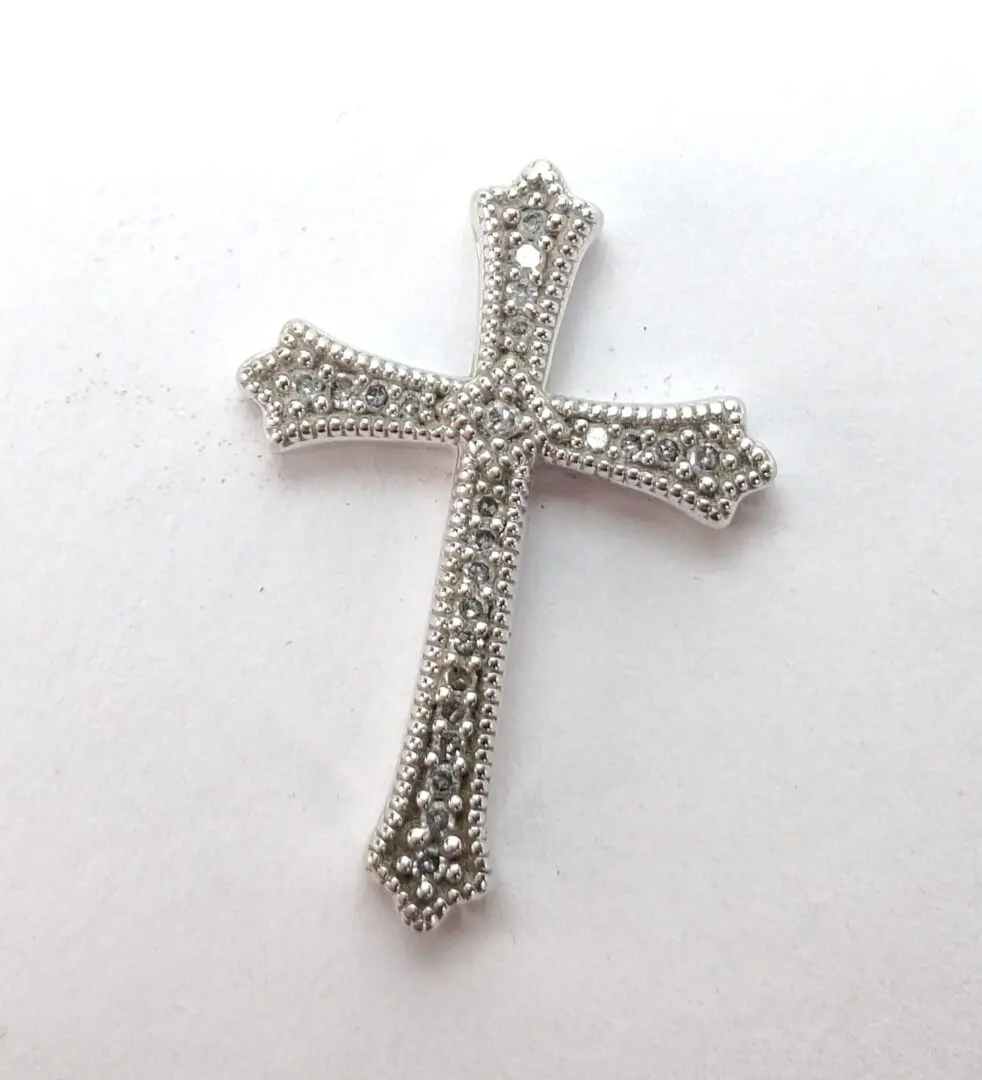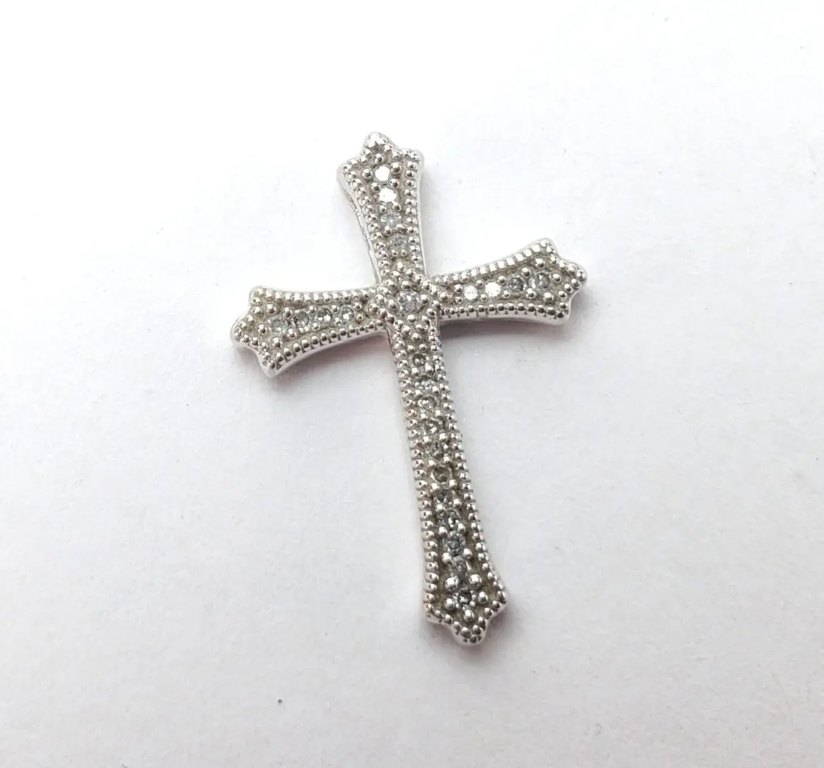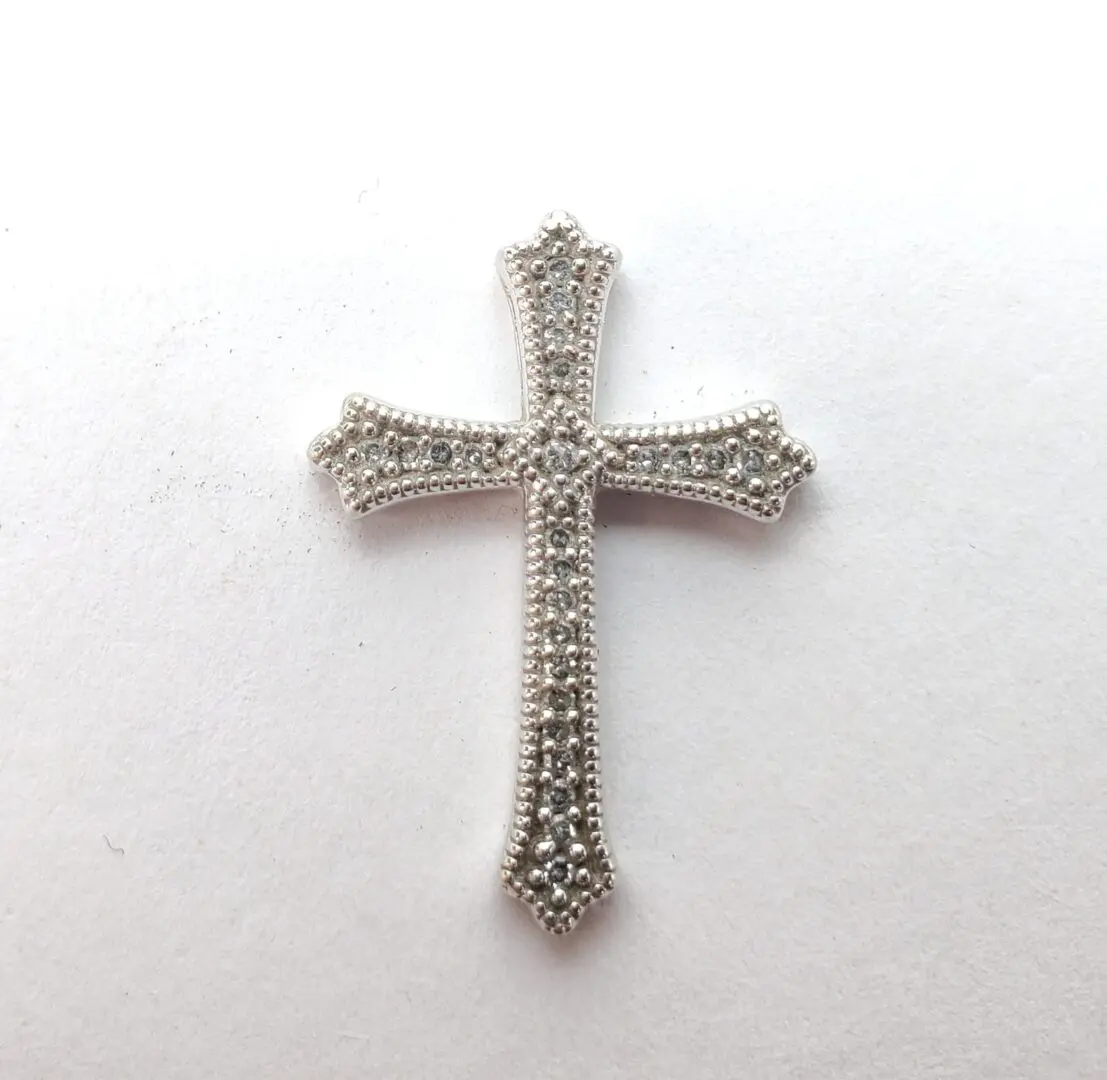 10k White Gold Diamond Cross Religious Christian Catholic Slider Pendant 7/8''
