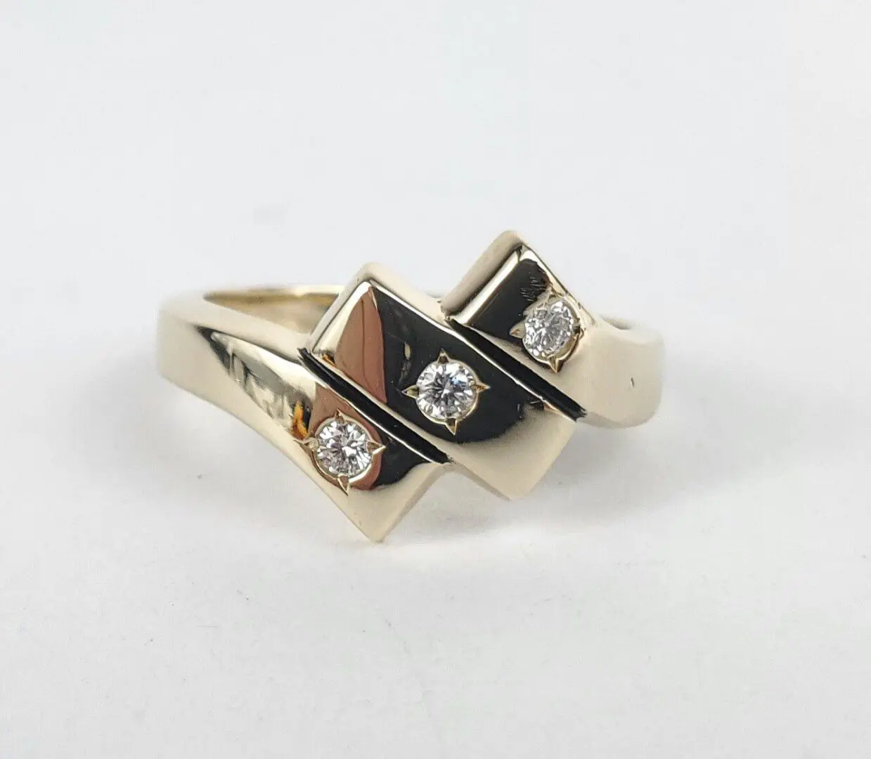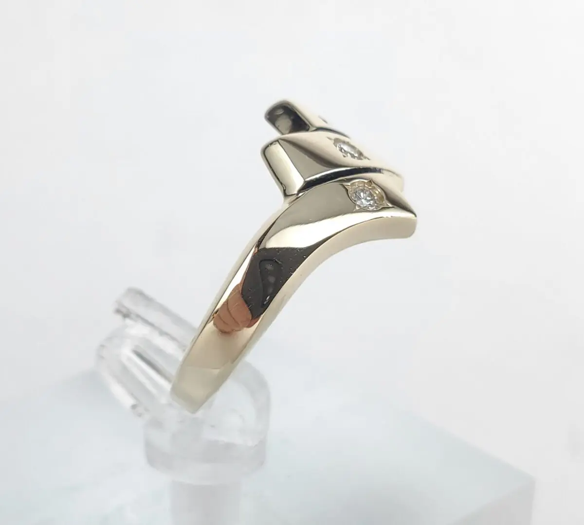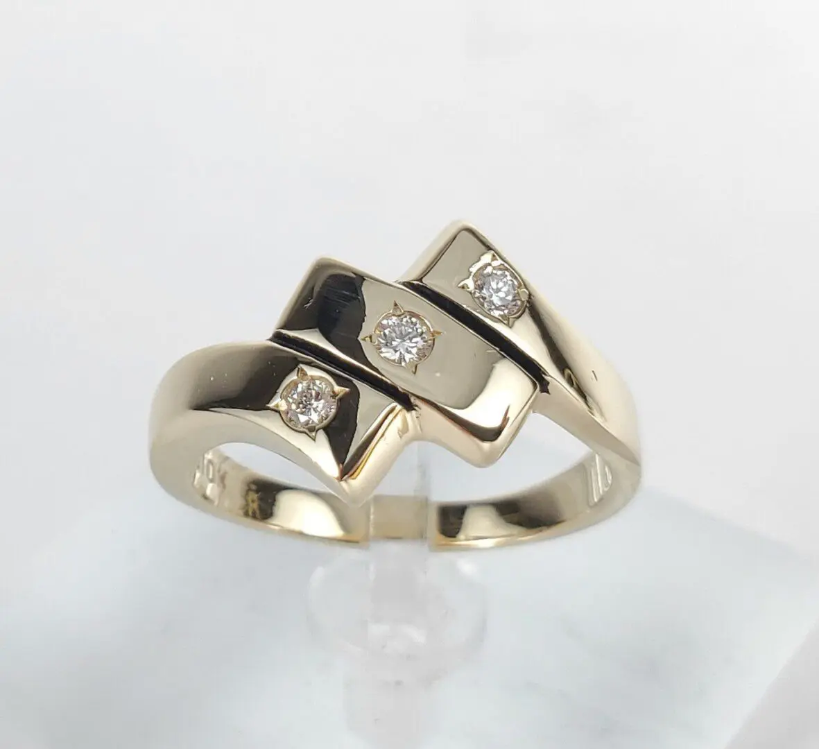 10k Yellow Gold Diamond Curved Stepped Segmented Bypass Band Ring 7''