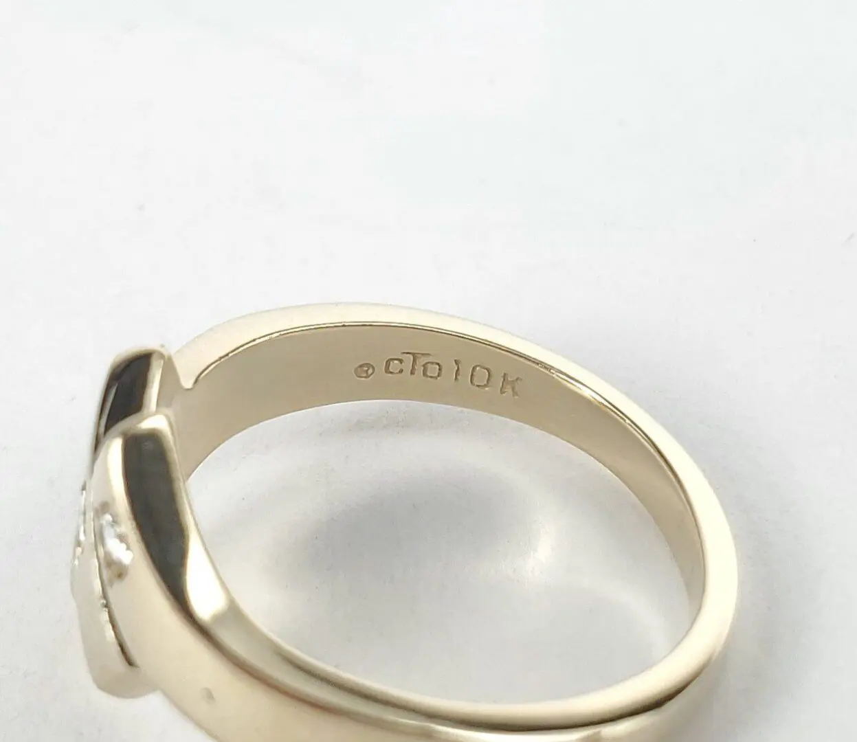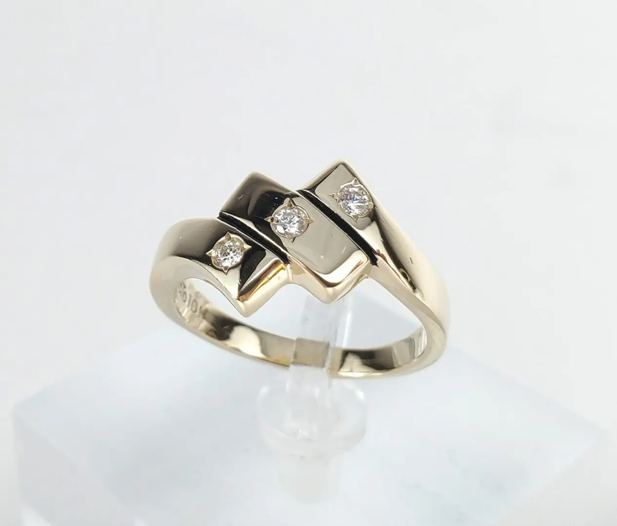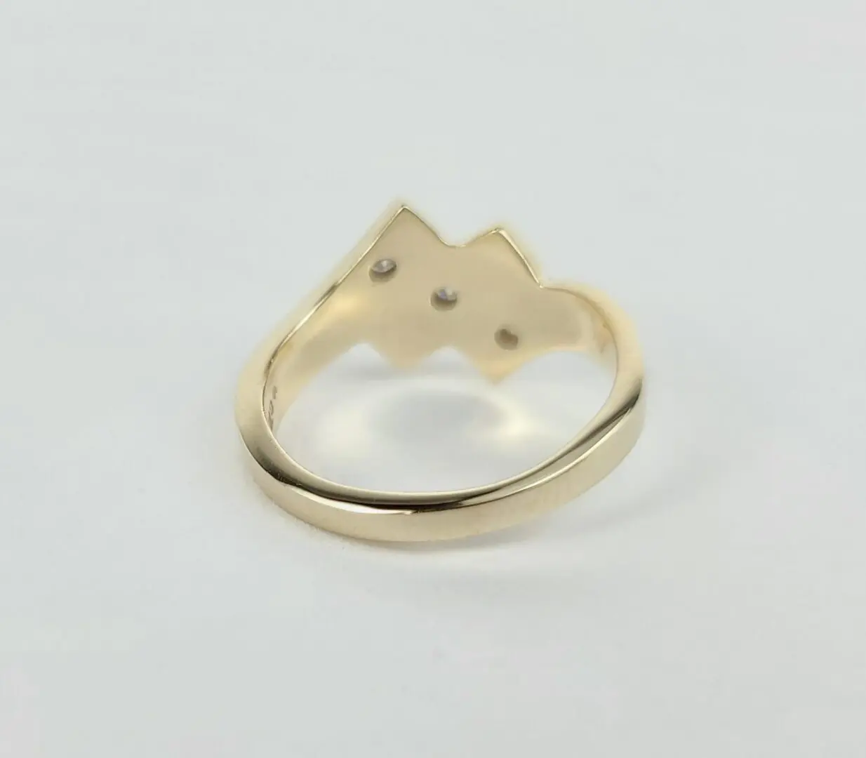 10k Yellow Gold Diamond Curved Stepped Segmented Bypass Band Ring 7''