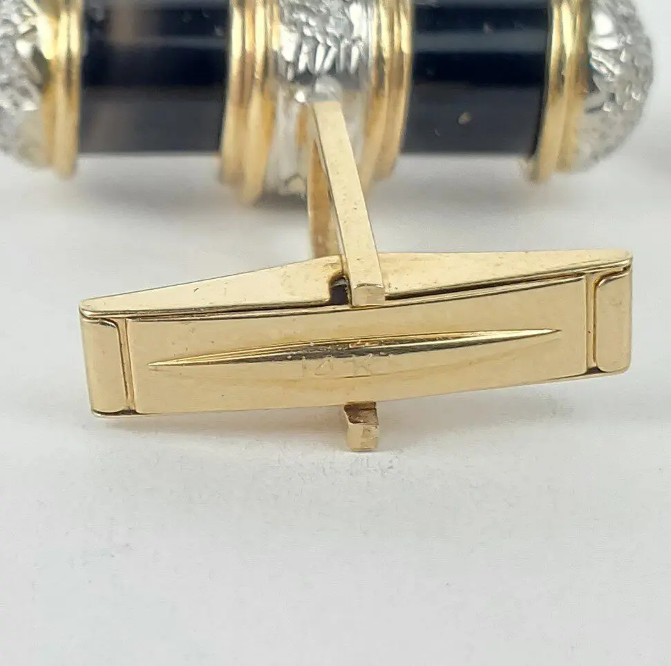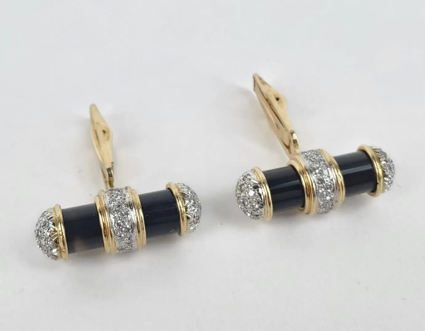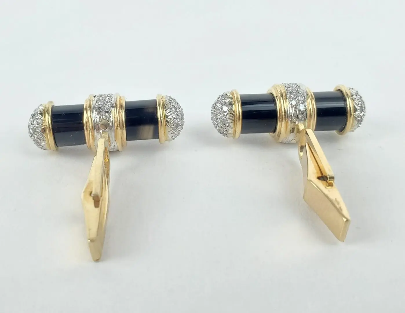14k Multi Tone Yellow White Gold 1.40ctw Pave Diamond Bar Cufflinks 1 1/8''
