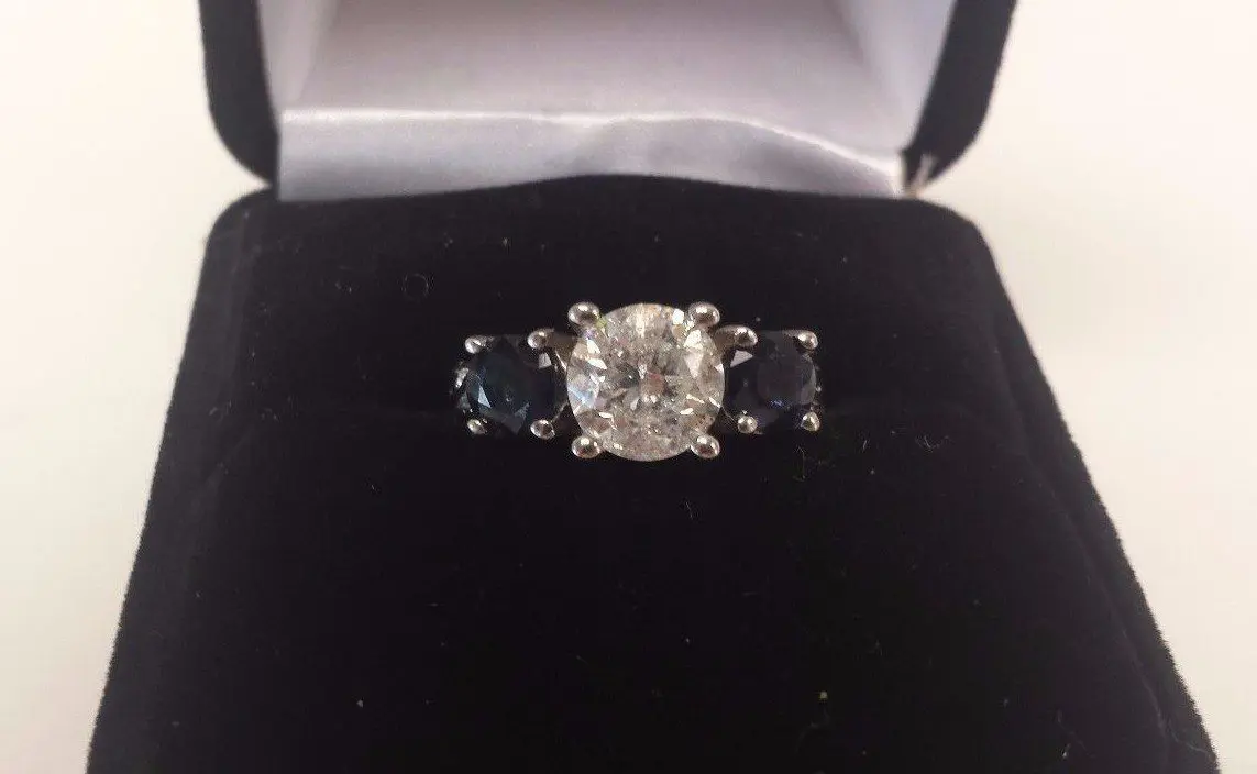 14k White Gold 1.5ct Diamond Sapphire Ring Sz 5.25