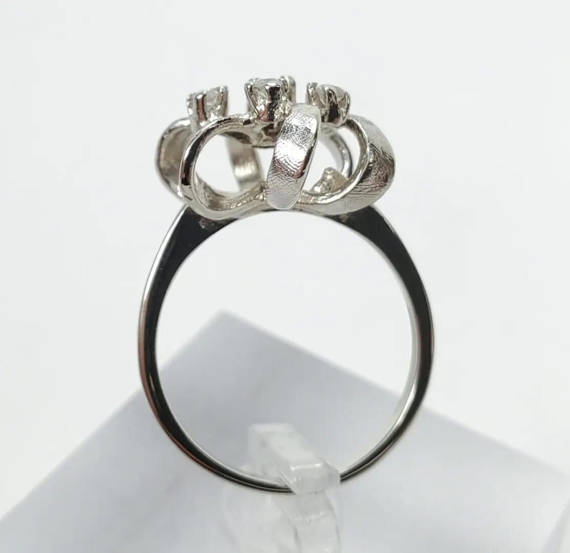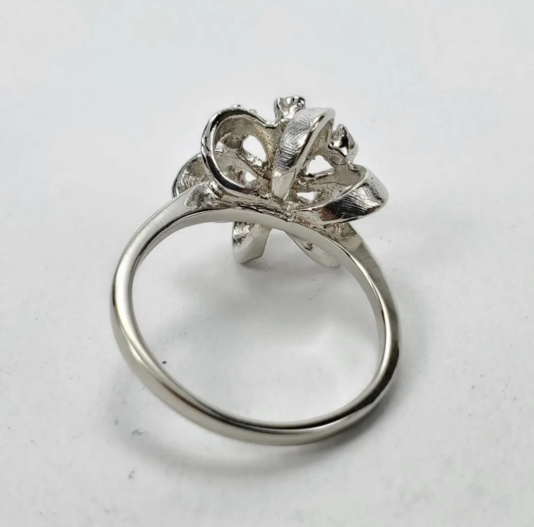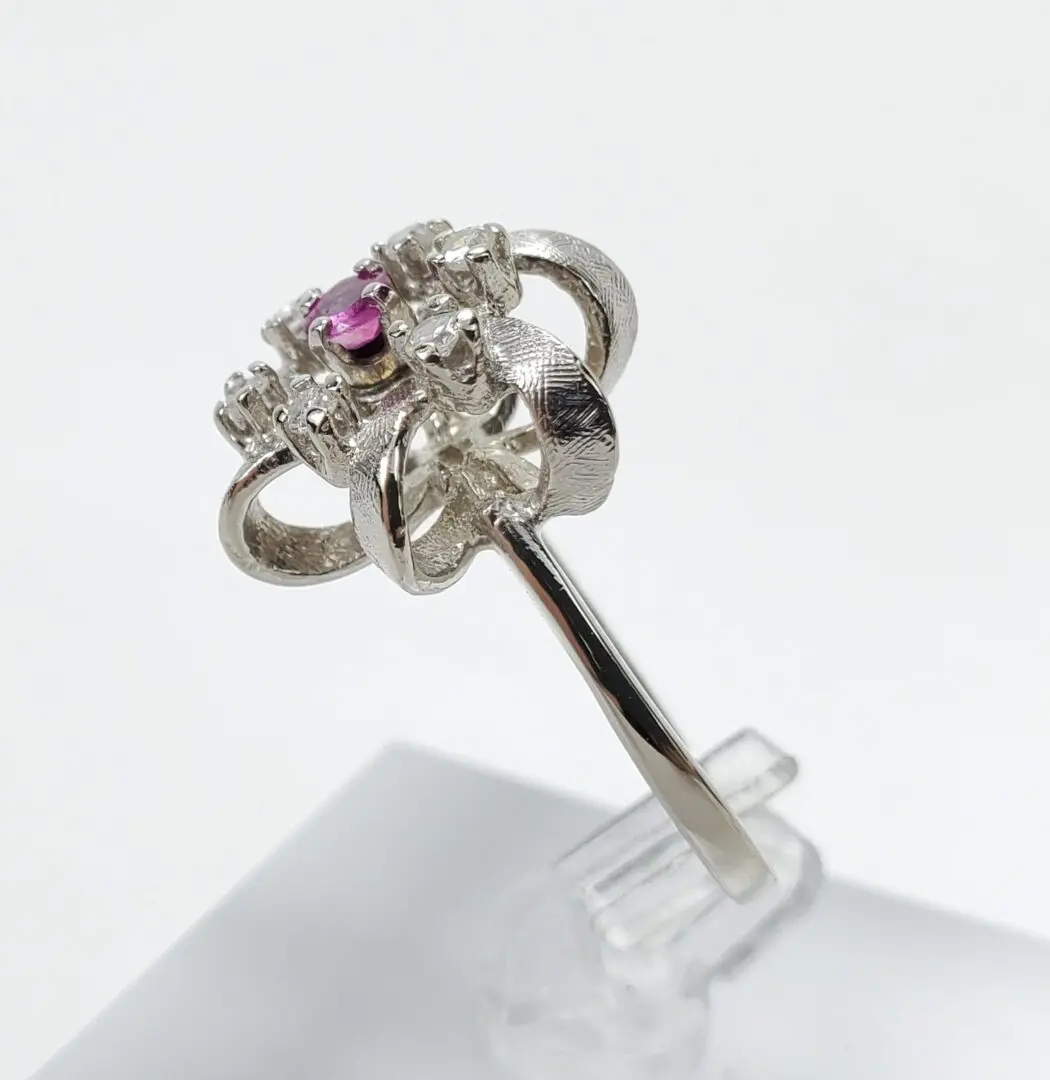 14k White Gold .25ctw Natural Ruby Diamond Textured Flower Florette Ring
