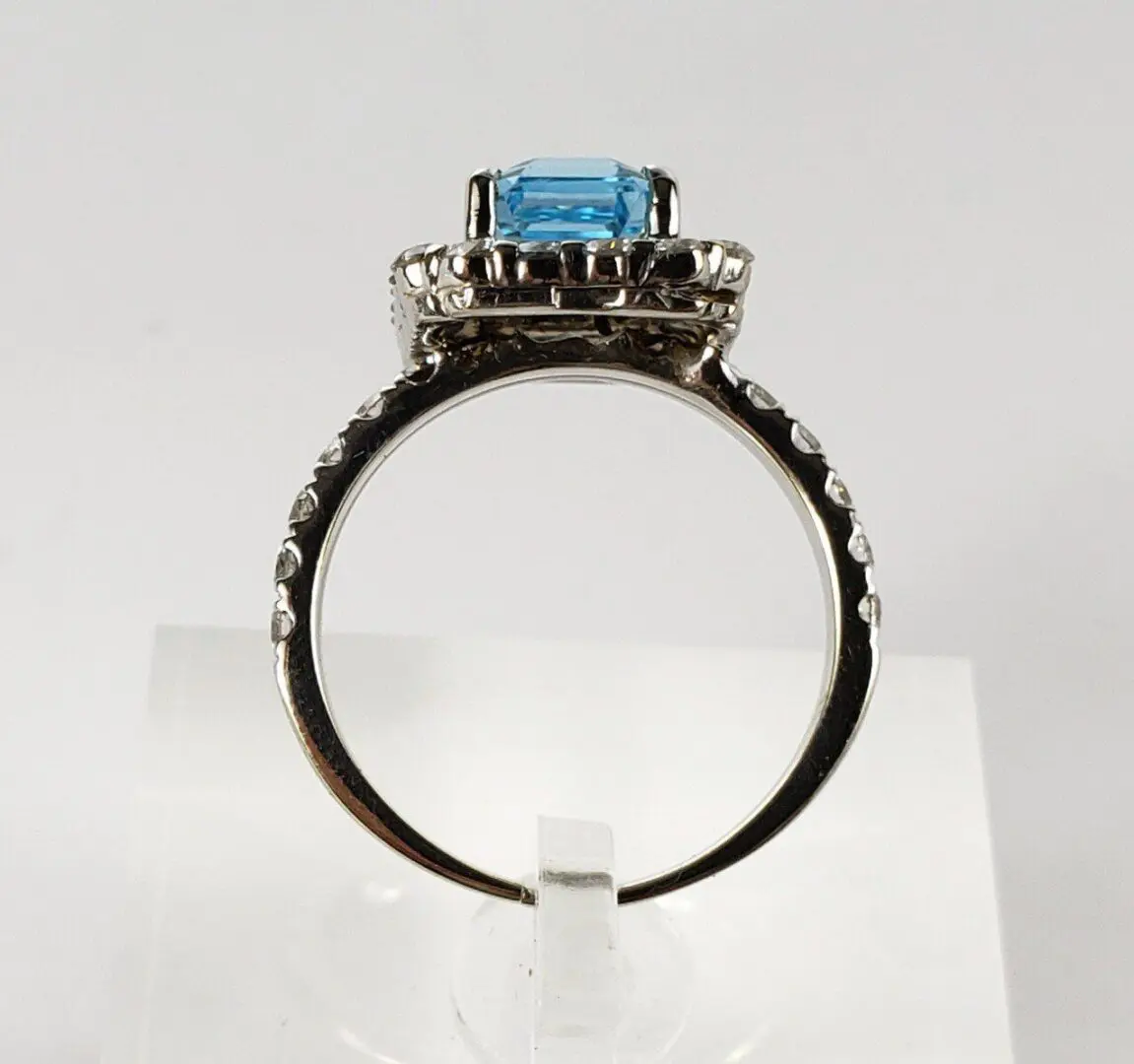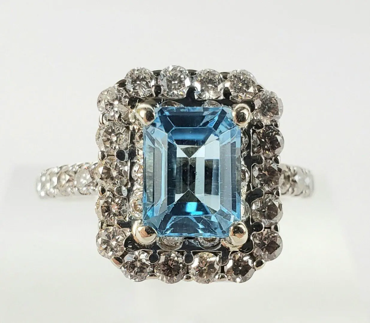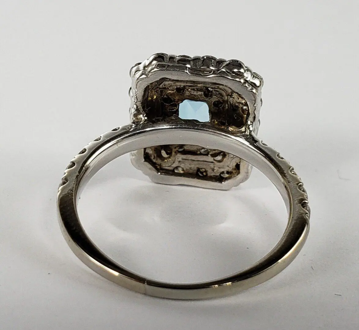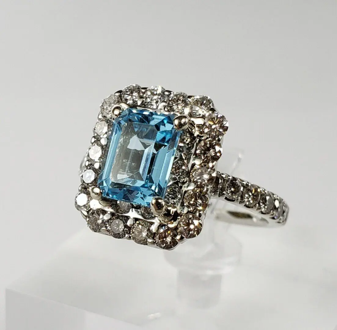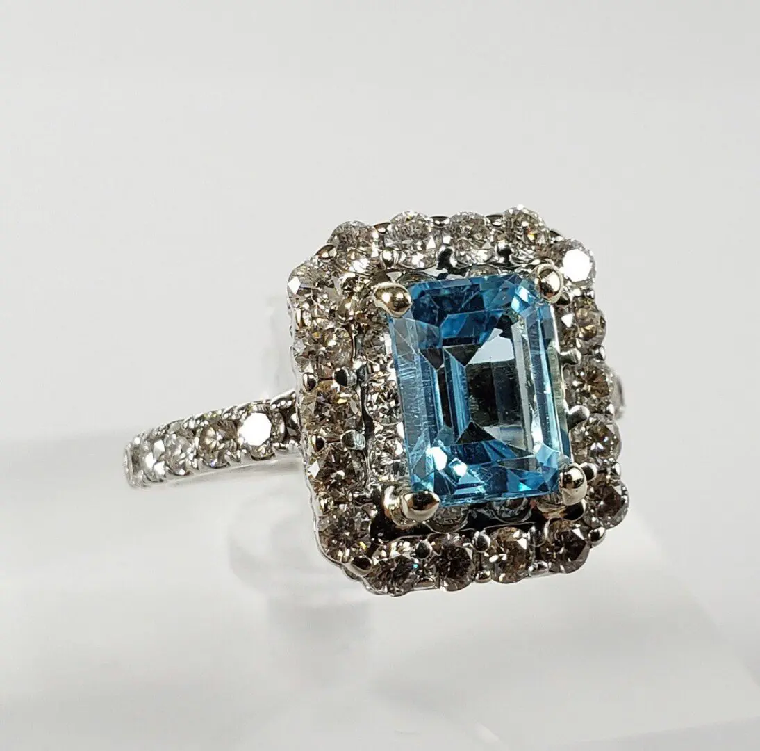 14k White Gold 3.55ctw 2.14ct Blue Topaz 1.41ct D/VS Diamond Cluster Halo Ring