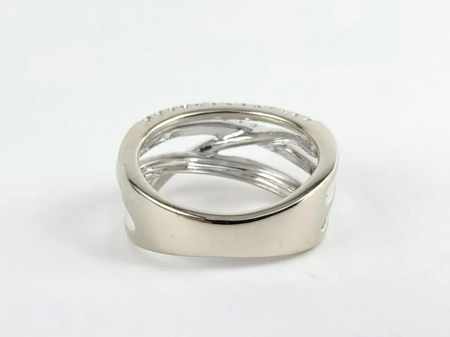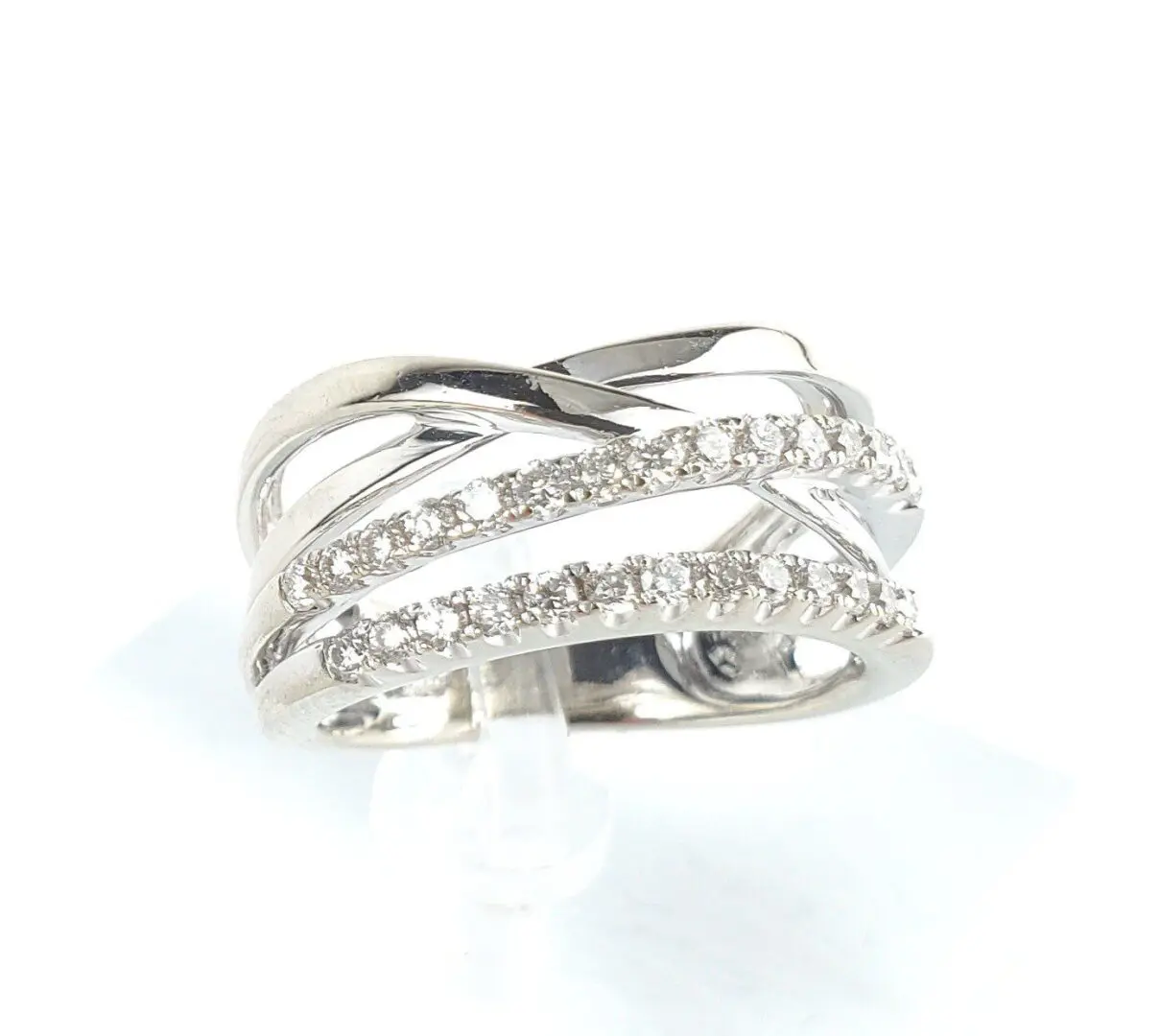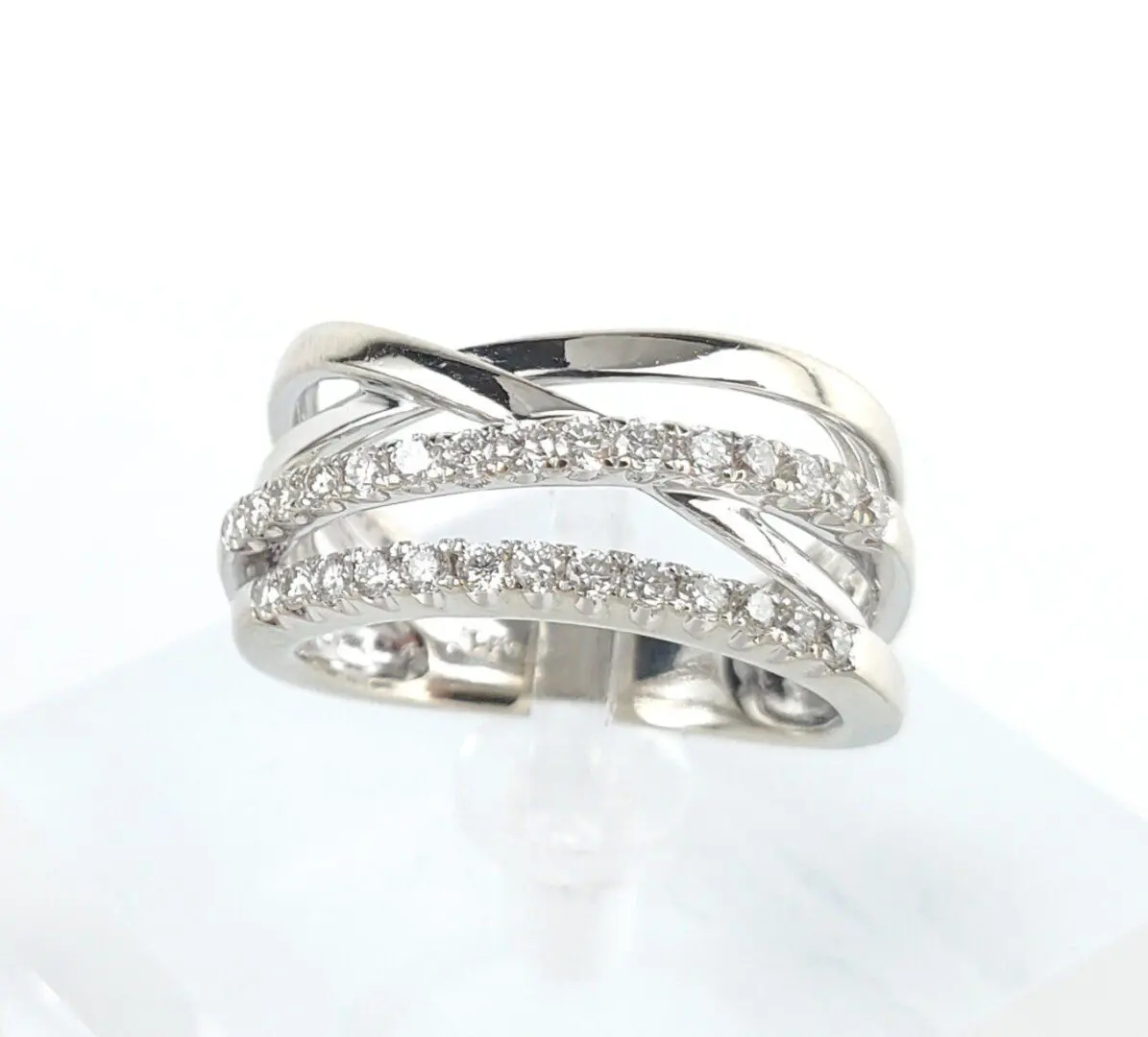 14k White Gold .50ctw Round Brilliant Diamond Weave Crossover Band Ring 6.25''