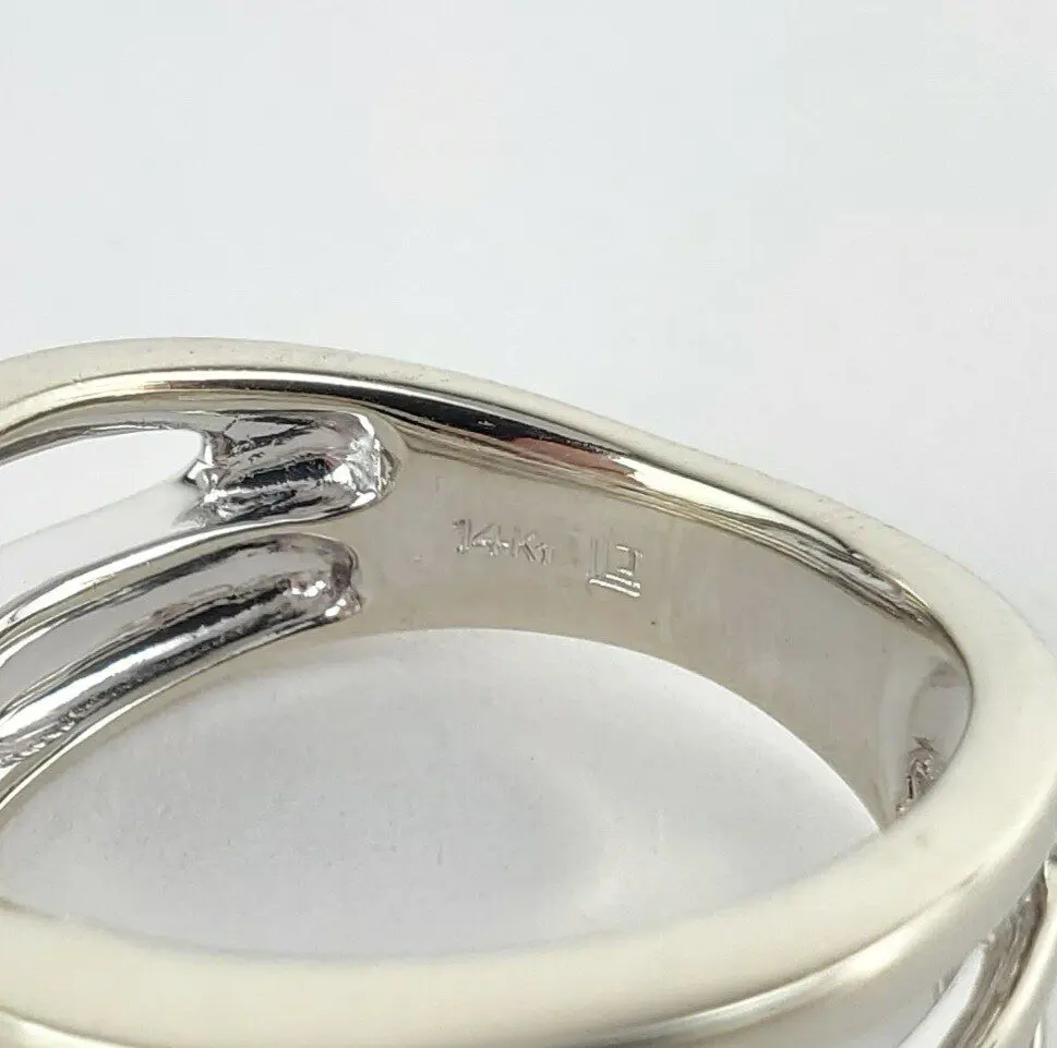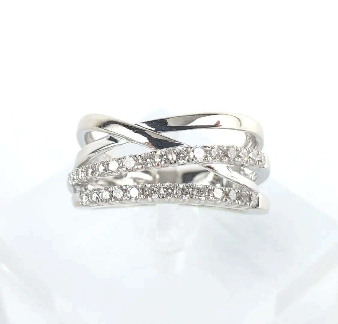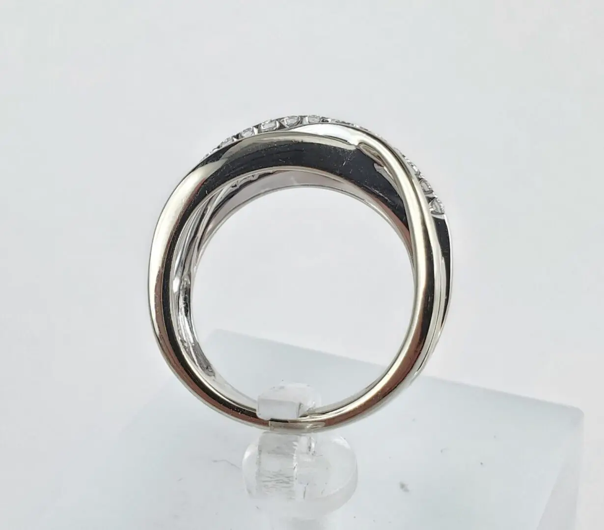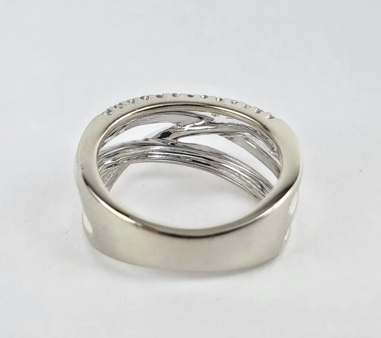 14k White Gold .50ctw Round Brilliant Diamond Weave Crossover Band Ring 6.25''