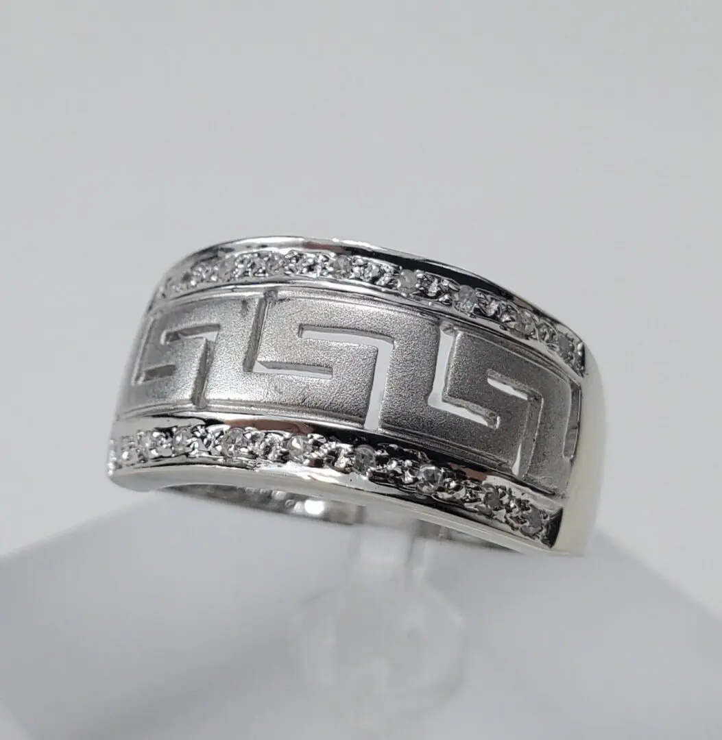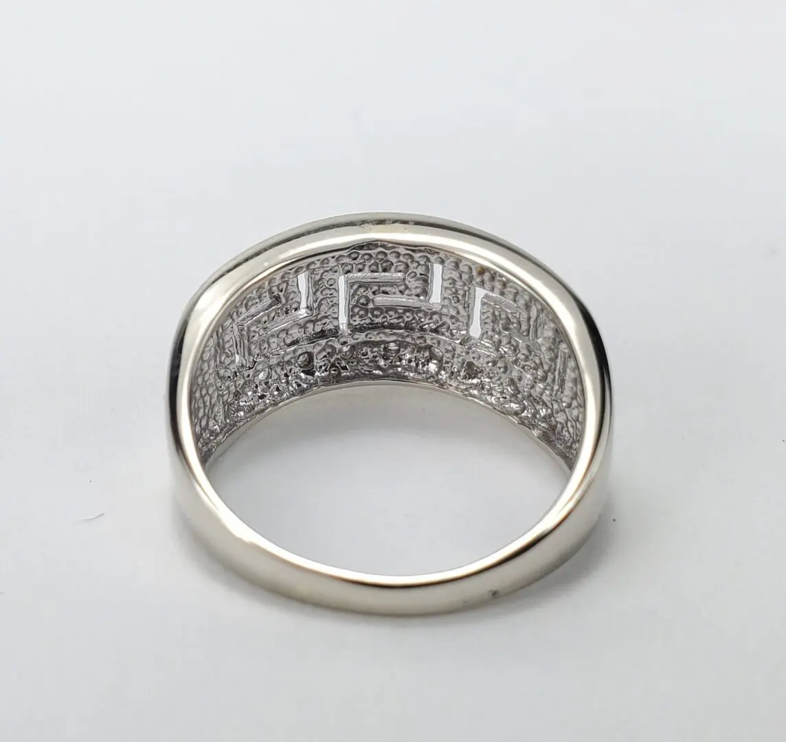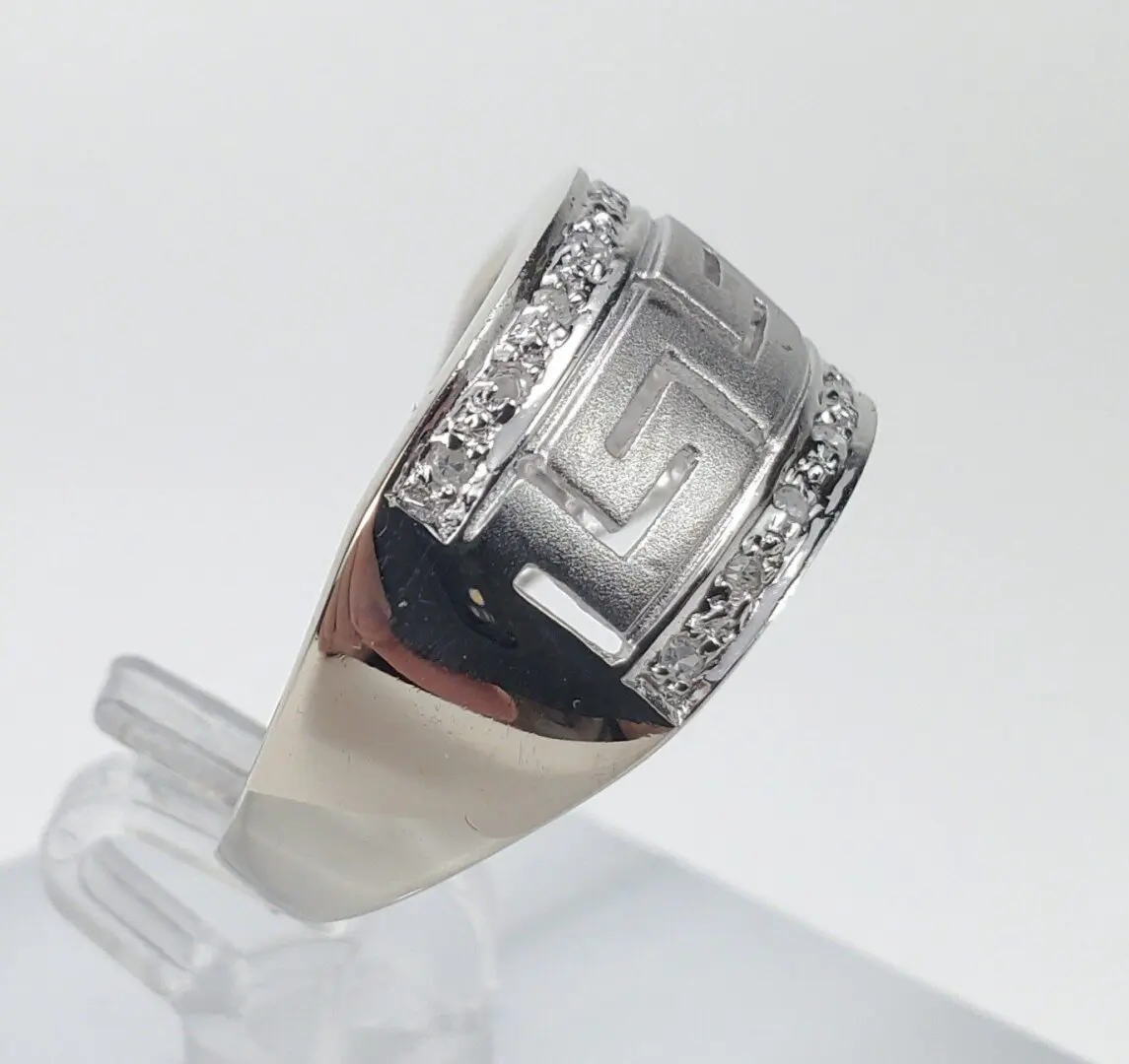 14k White Gold Diamond Greek Meander Pattern Band Ring 6.5''