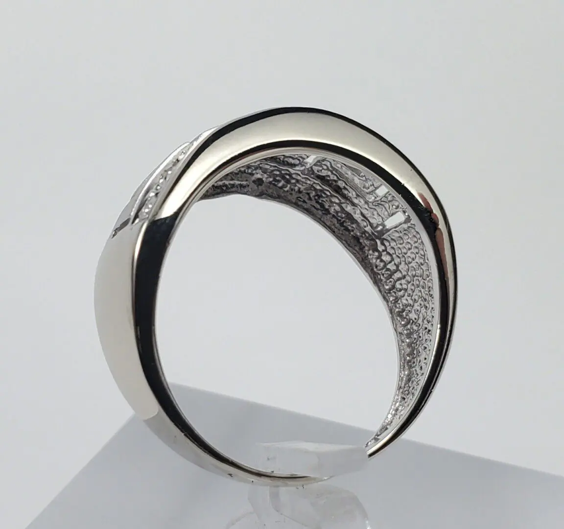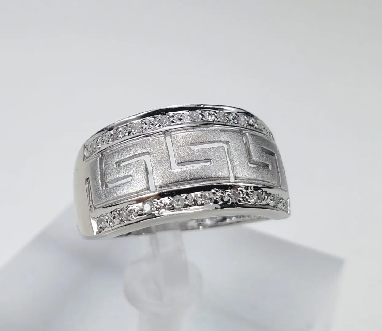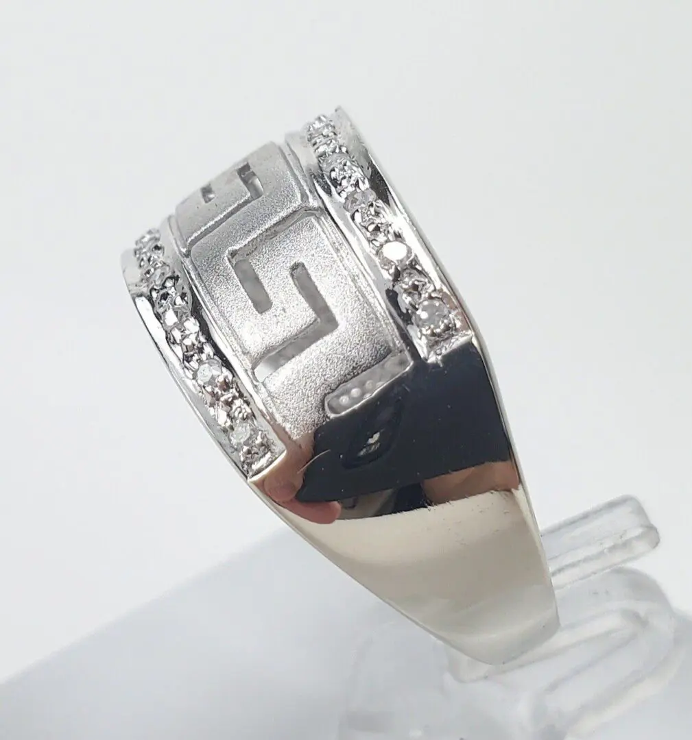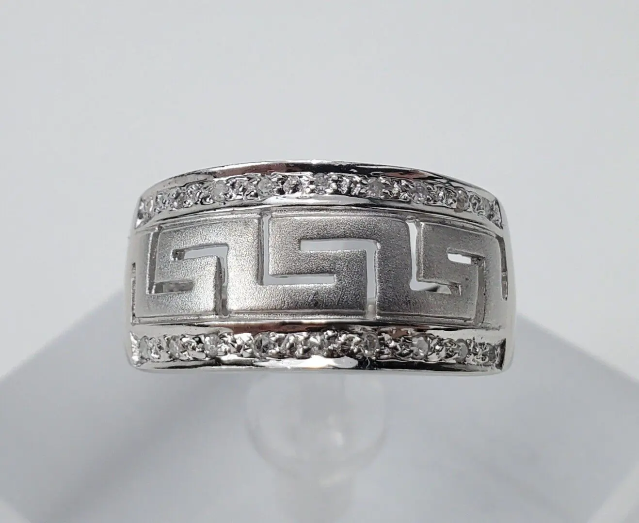 14k White Gold Diamond Greek Meander Pattern Band Ring 6.5''