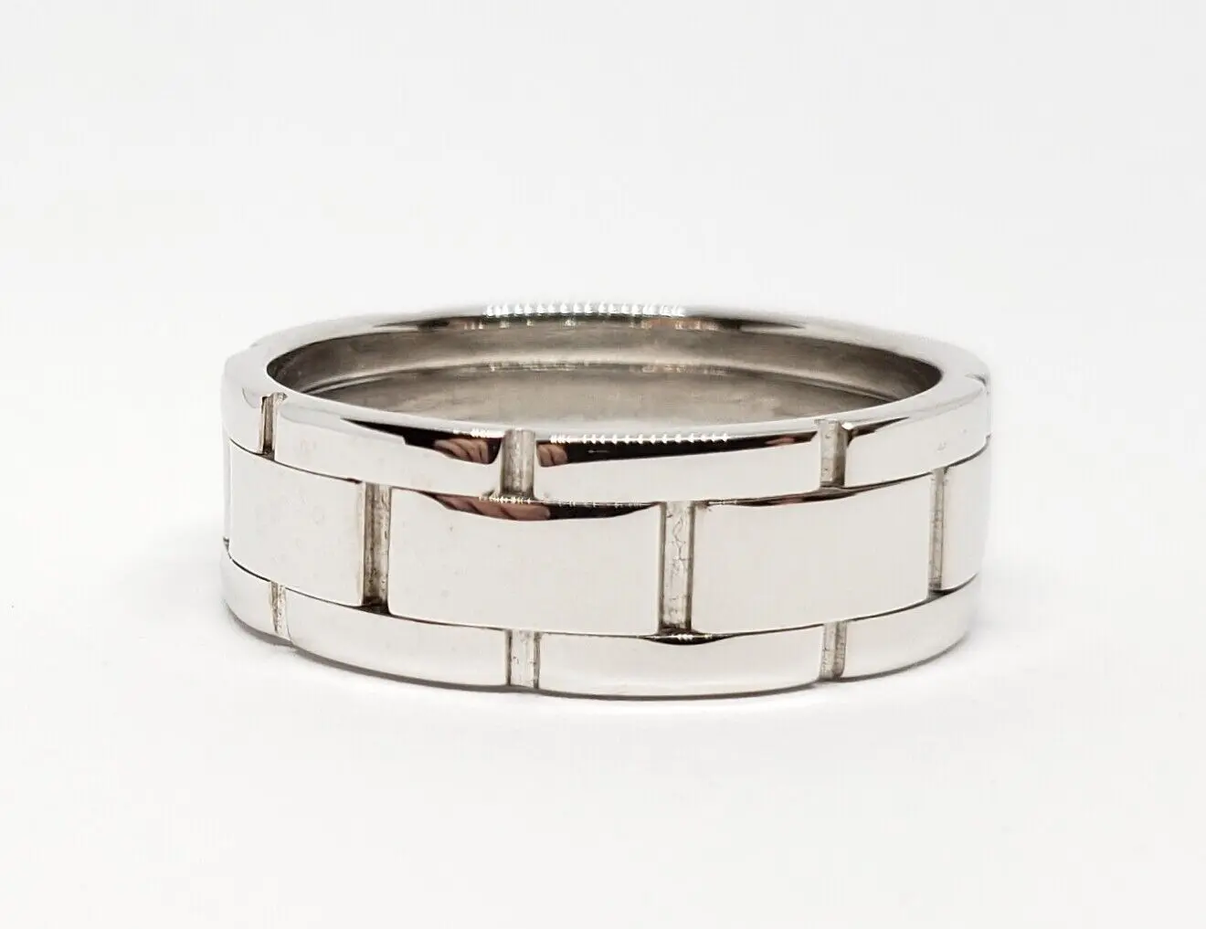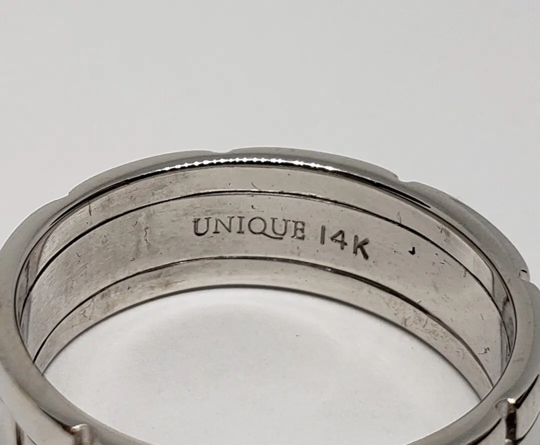 14k White Gold Mens Stone Wall Brick Pattern Band Wedding Ring Hallmark "Unique"