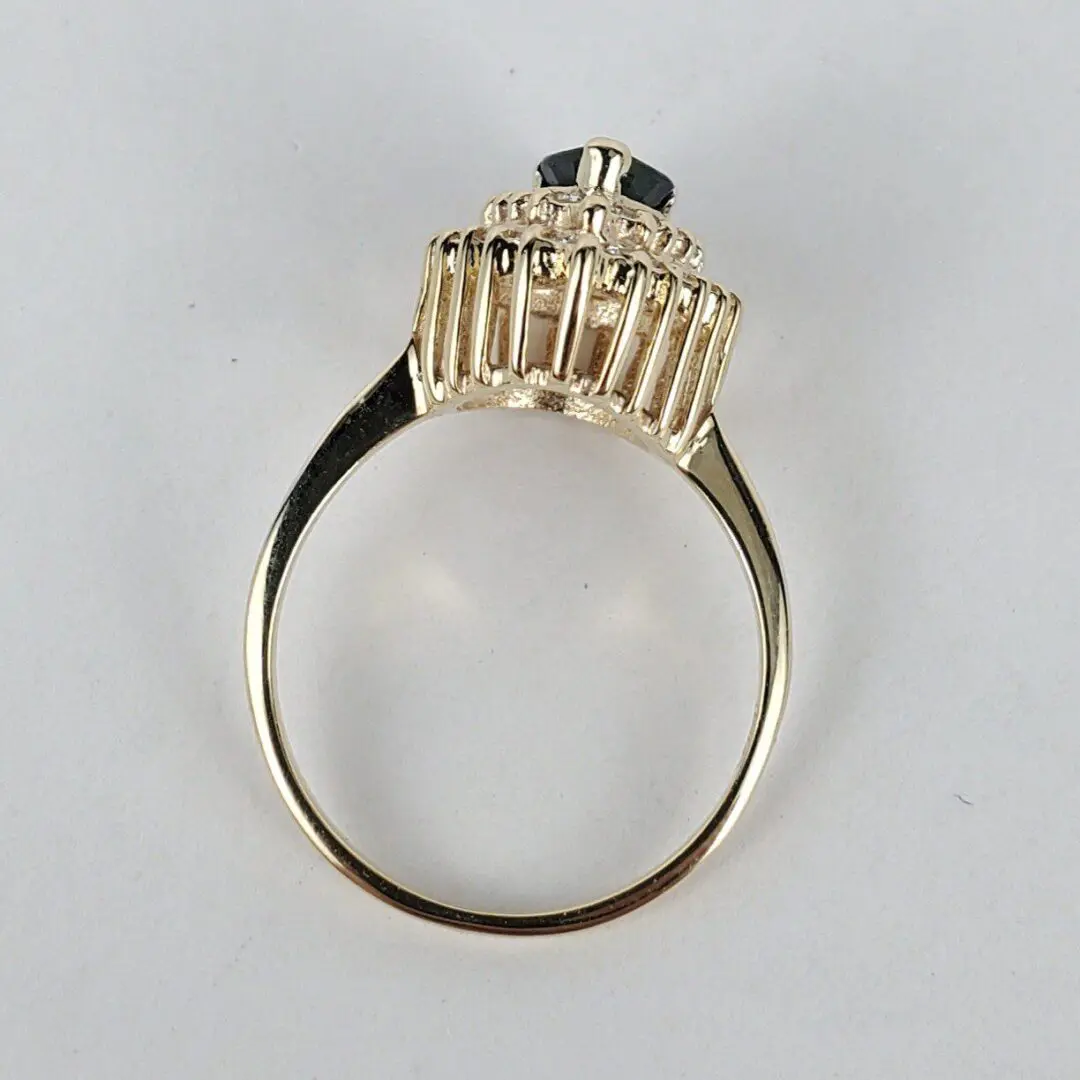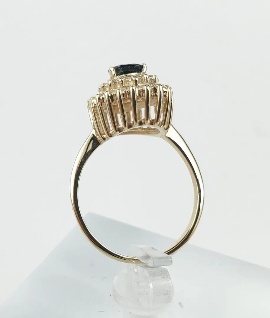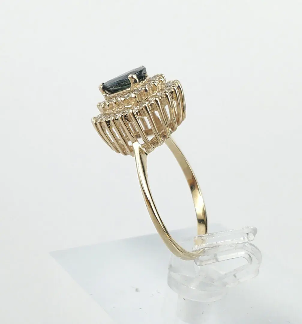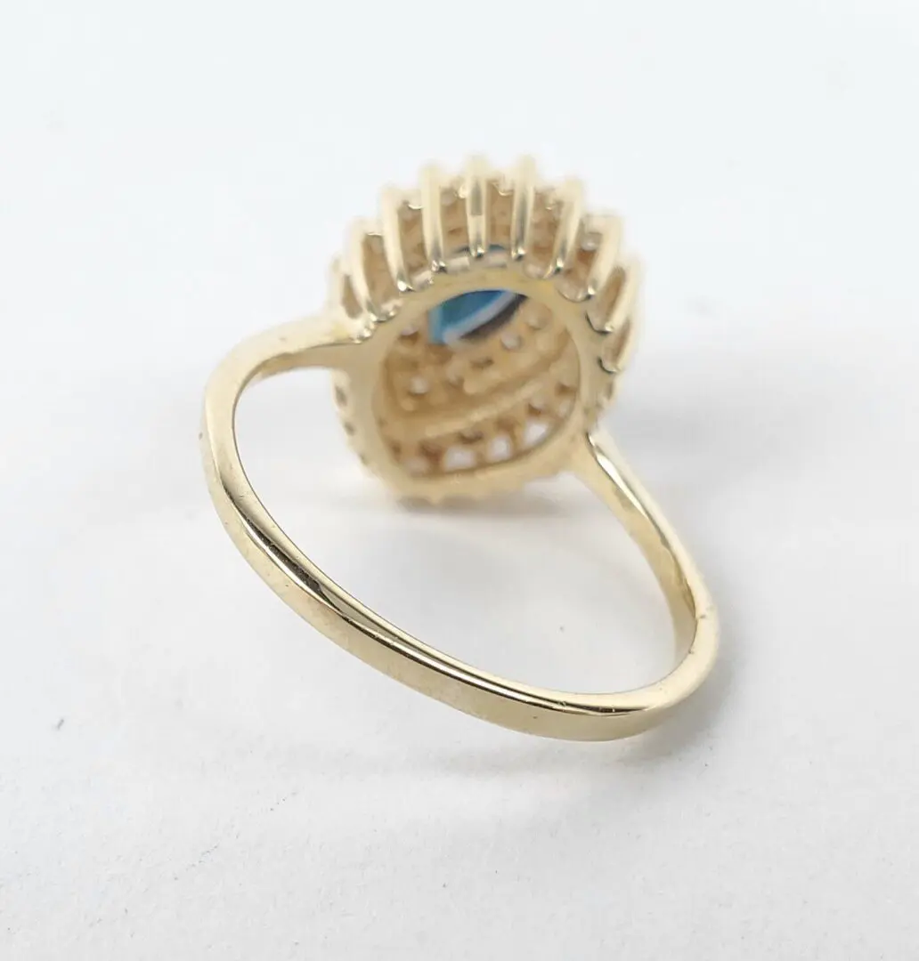 14k Yellow Gold 1.12ctw Pear Shape Blue Sapphire Diamond Double Halo Ring 6.75''