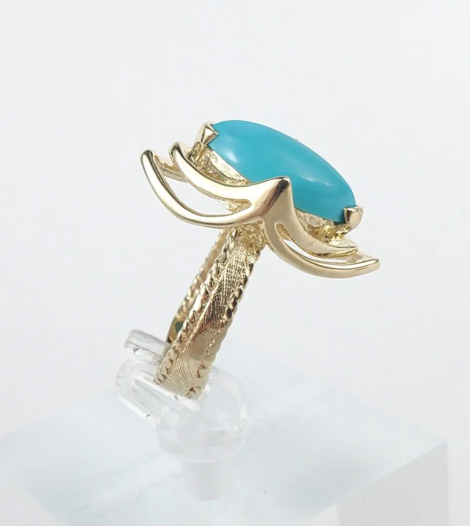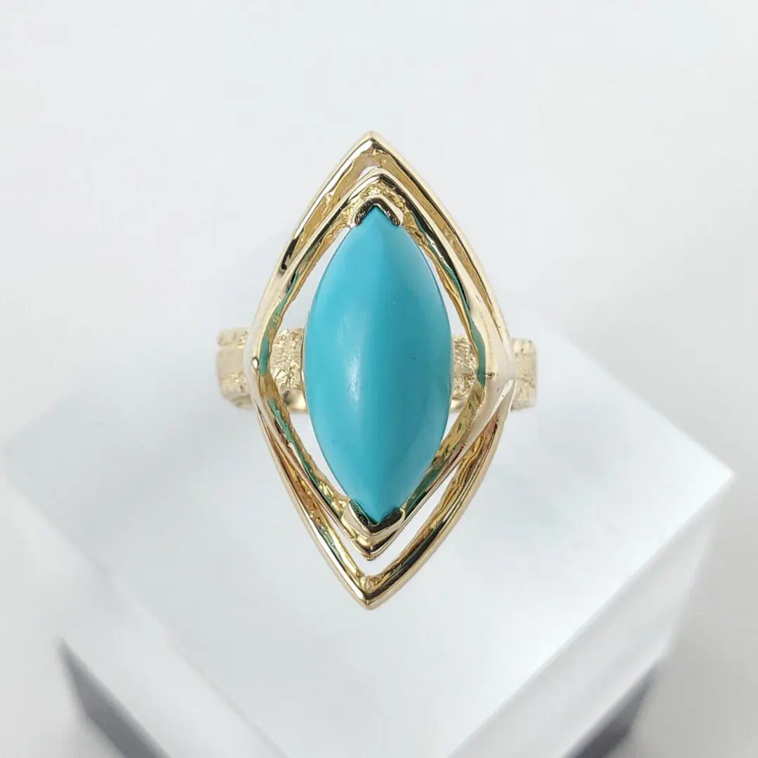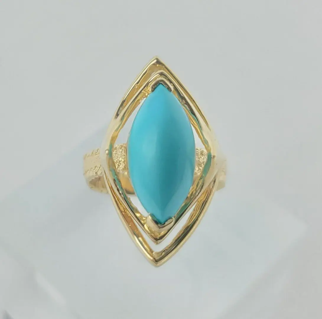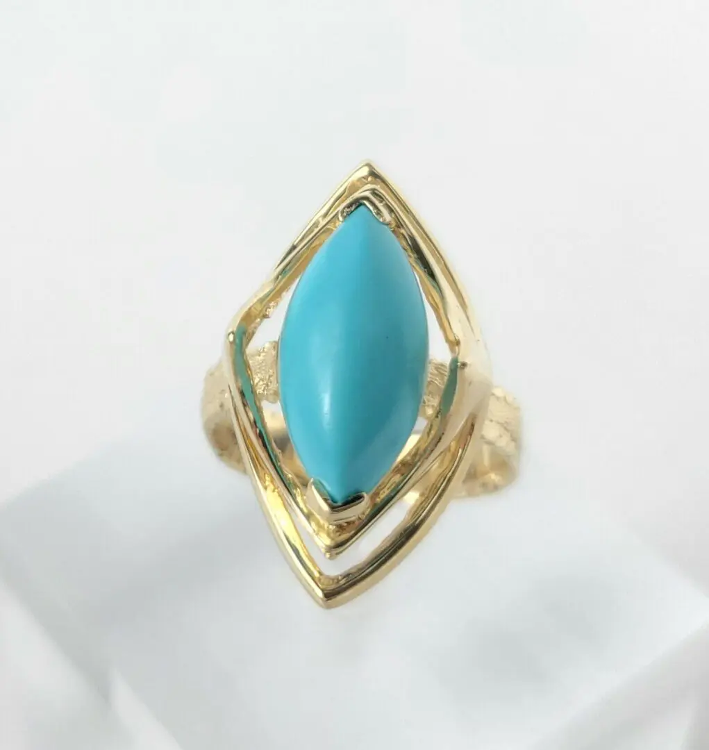 14k Yellow Gold 2.75ctw Marquise Cut Cabochon Turquoise Cocktail Solitaire Ring