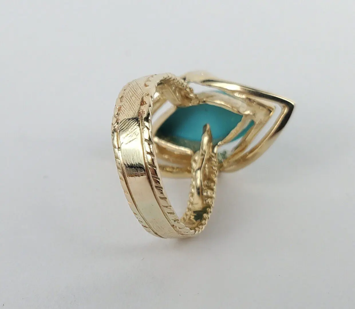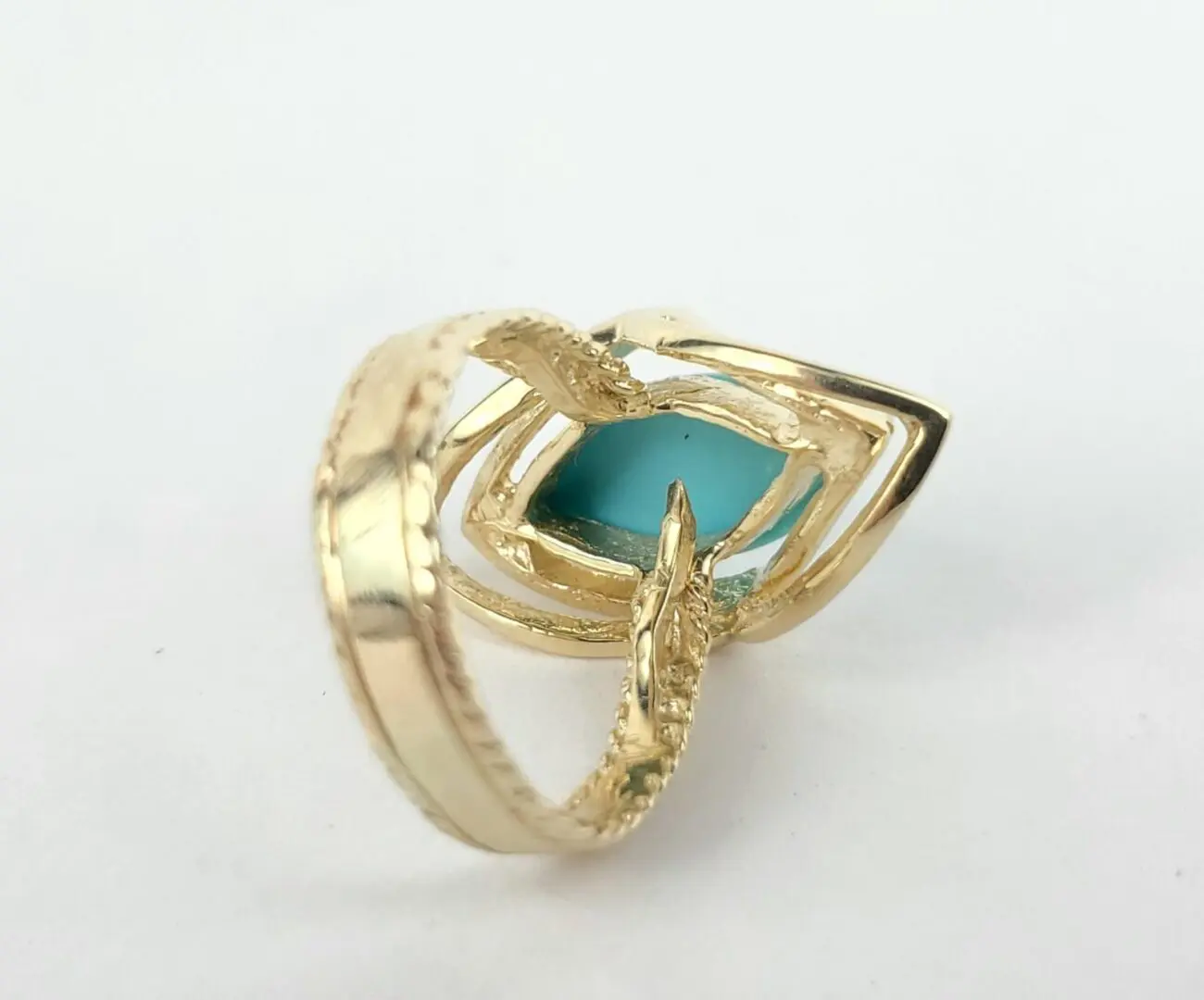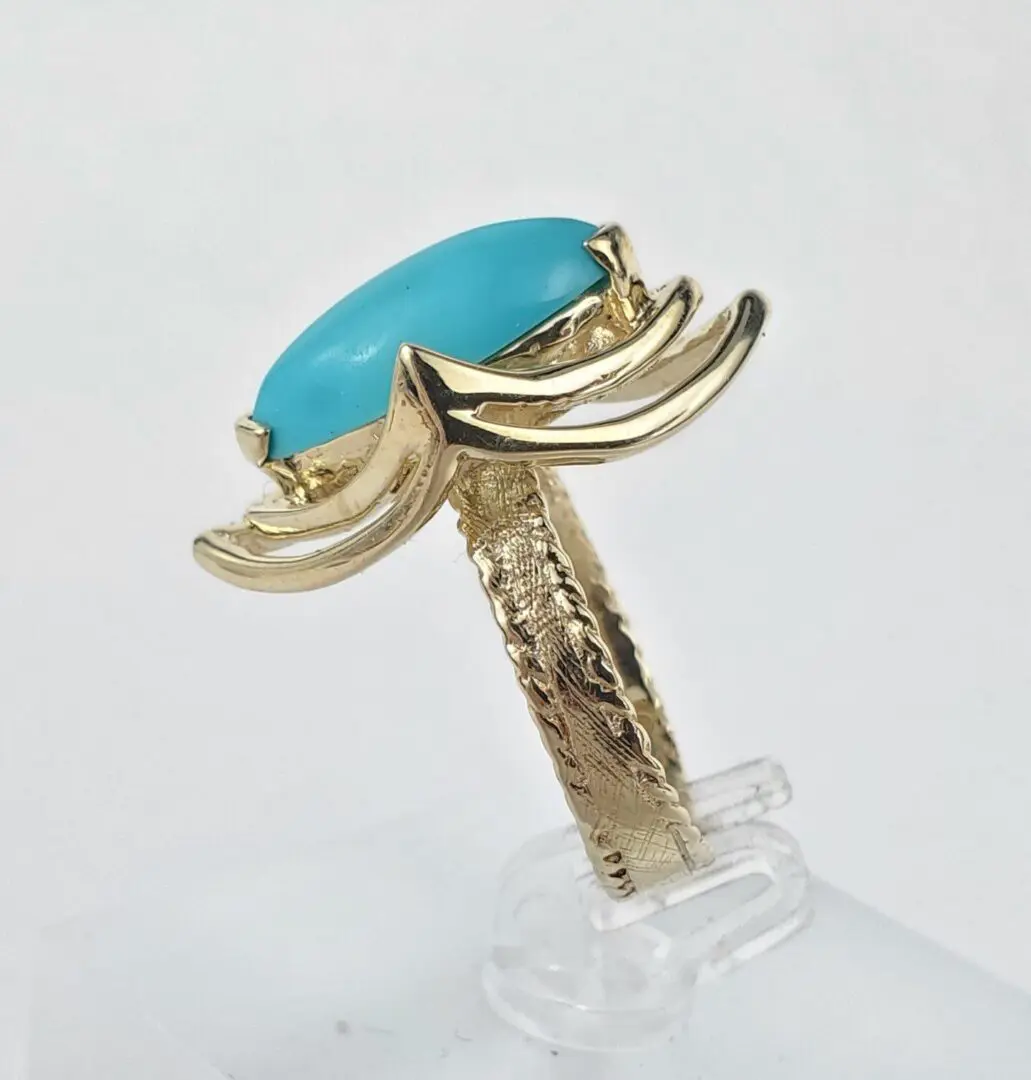14k Yellow Gold 2.75ctw Marquise Cut Cabochon Turquoise Cocktail Solitaire Ring