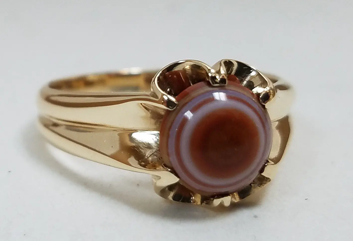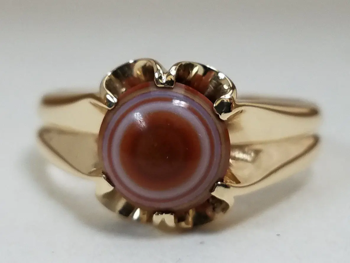 14k Yellow Gold Amazing Bullseye Banded Agate Ring