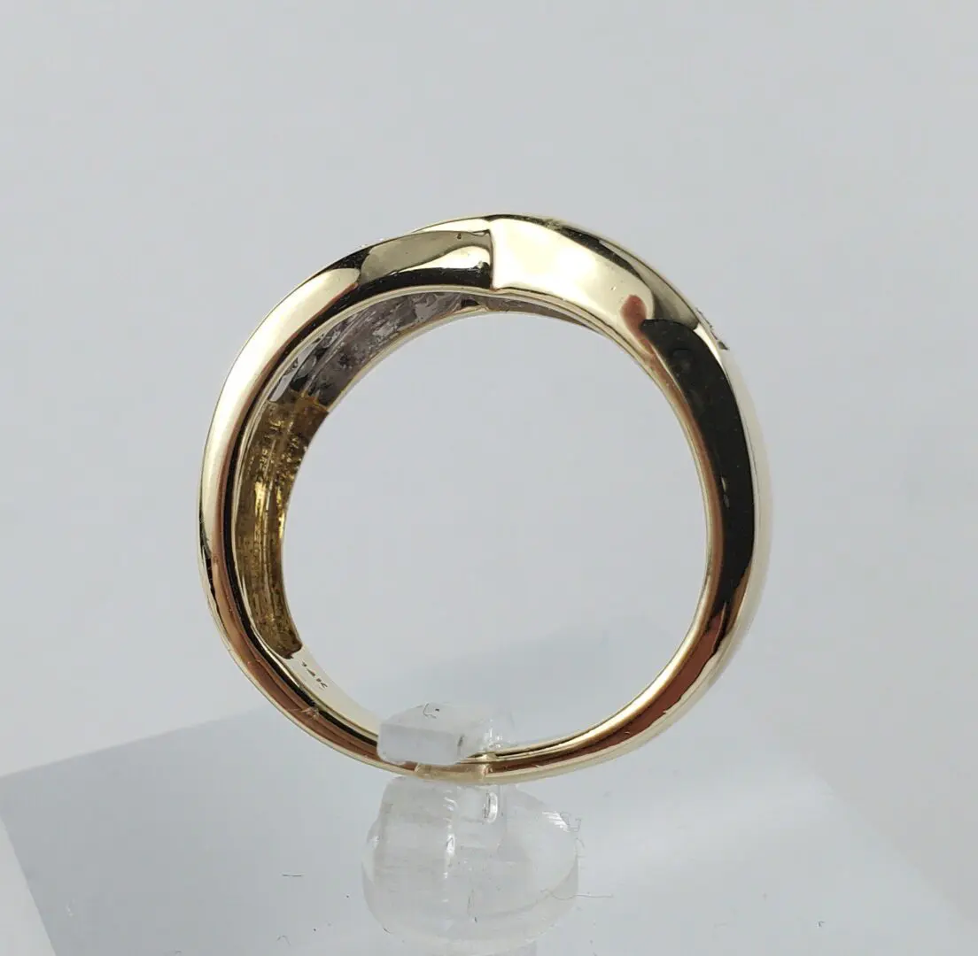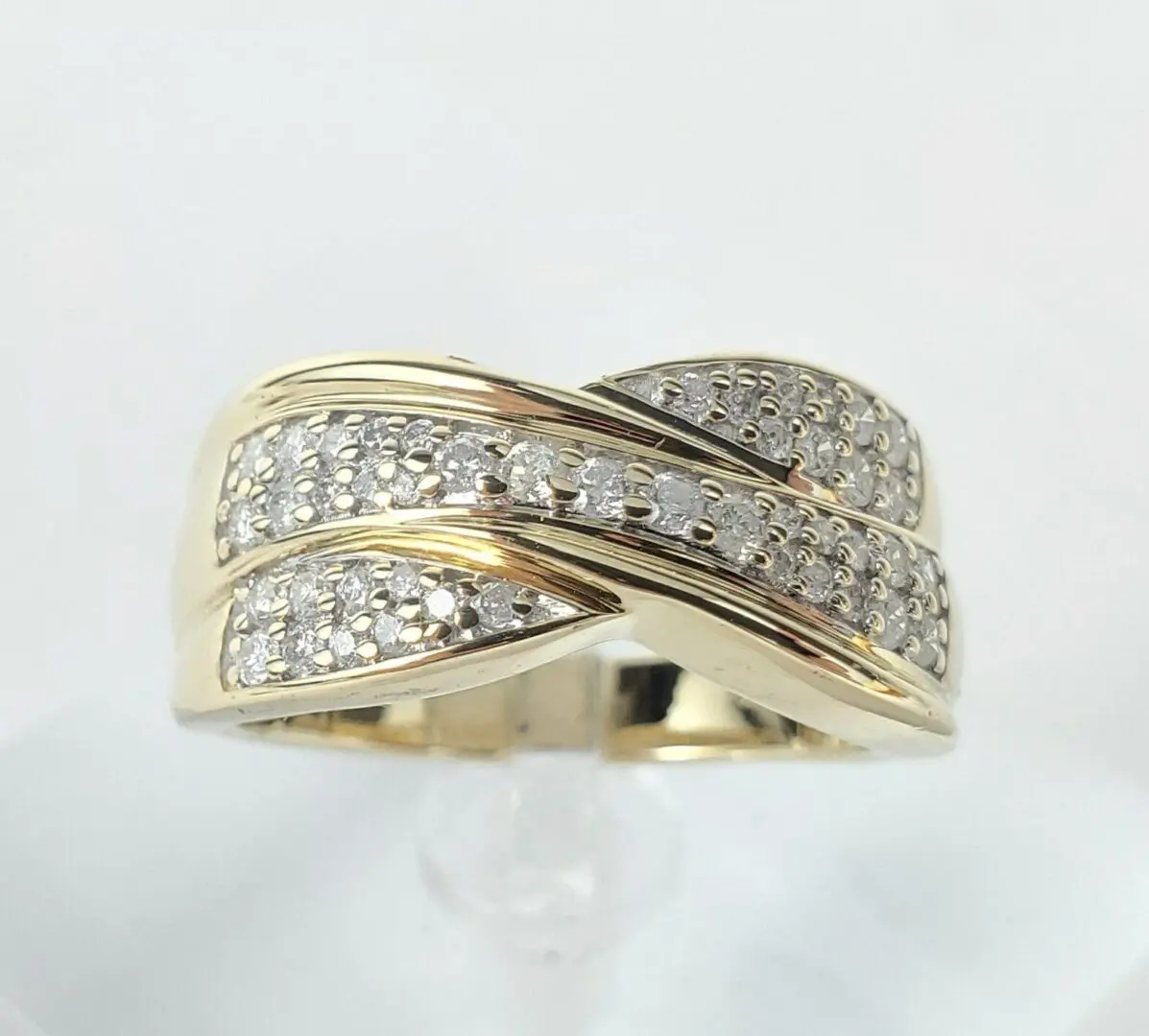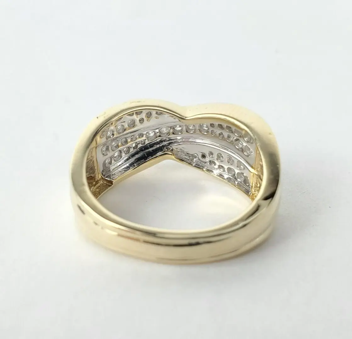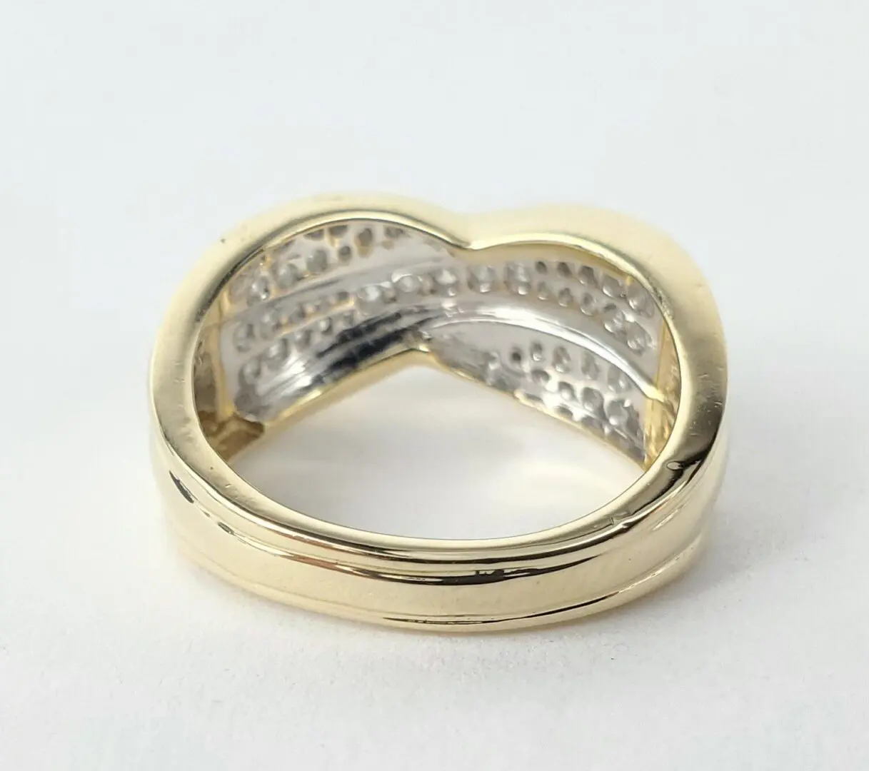 14k Yellow Gold Diamond Crossover Style Pave Band Ring 6.75''