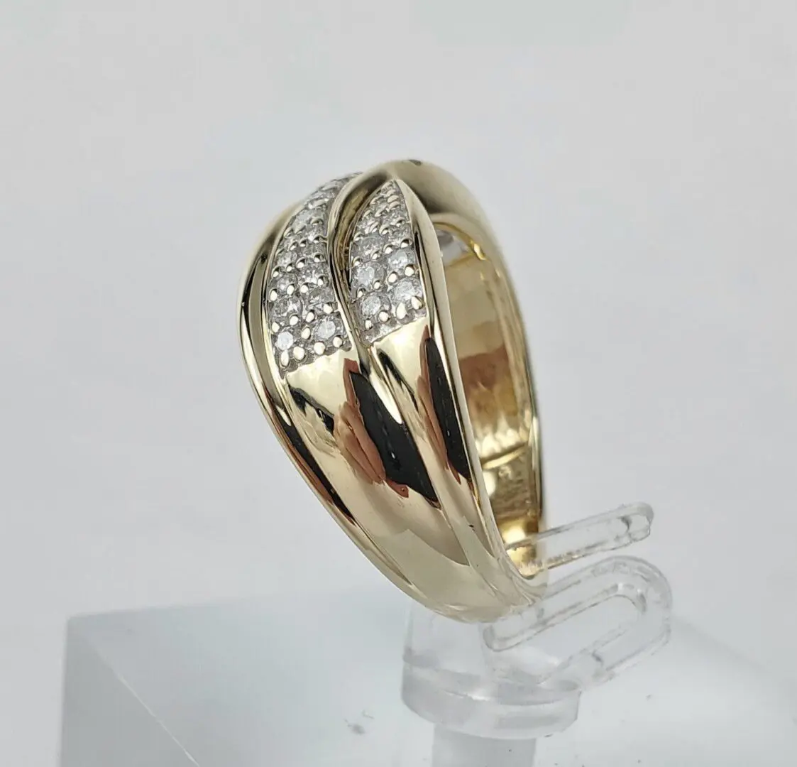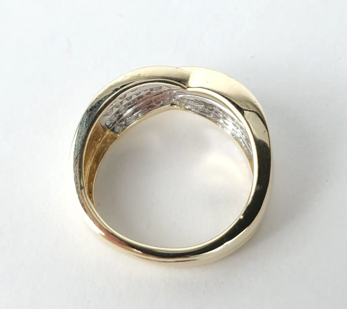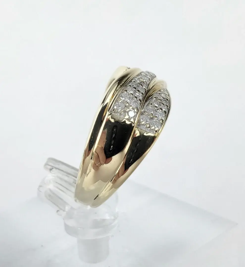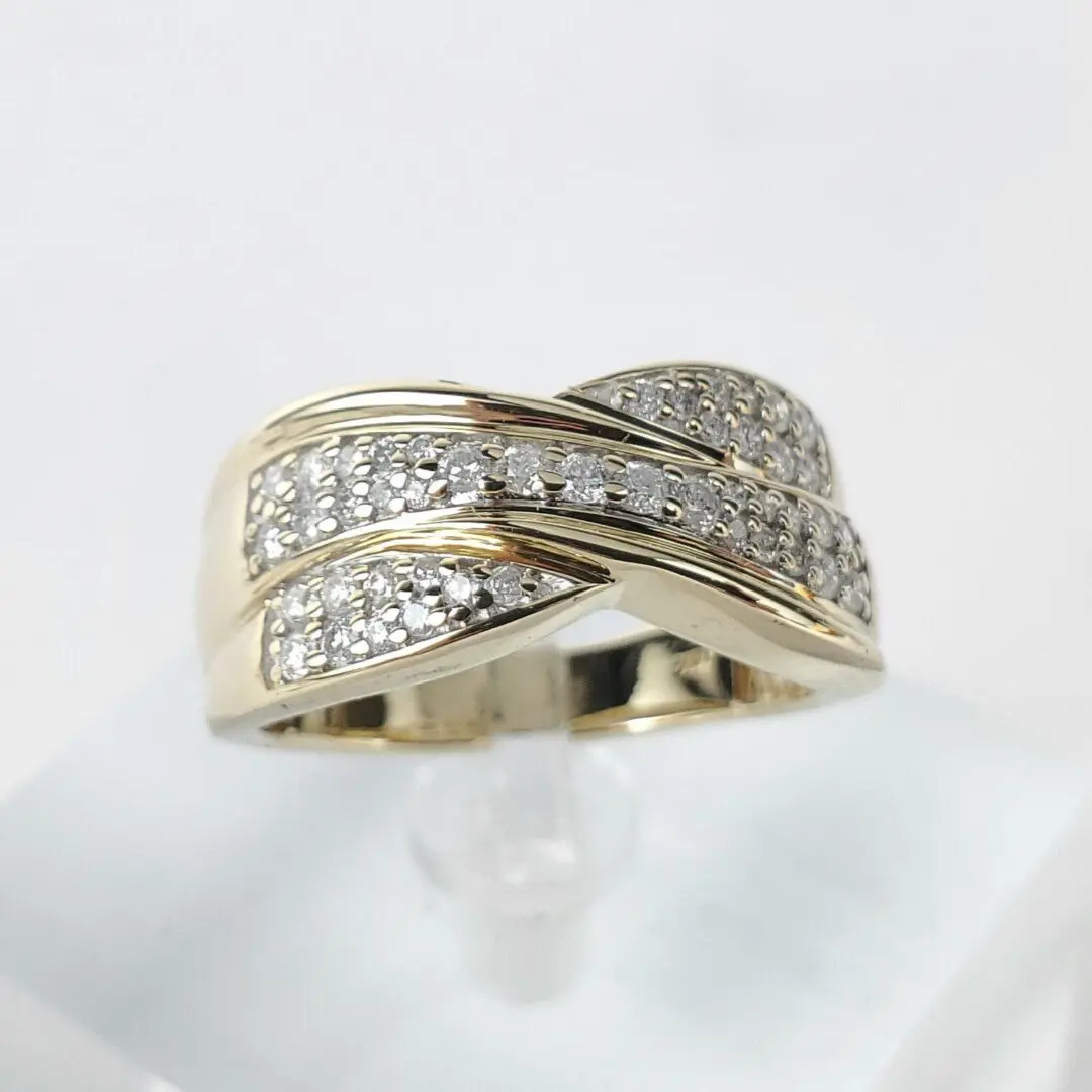 14k Yellow Gold Diamond Crossover Style Pave Band Ring 6.75''