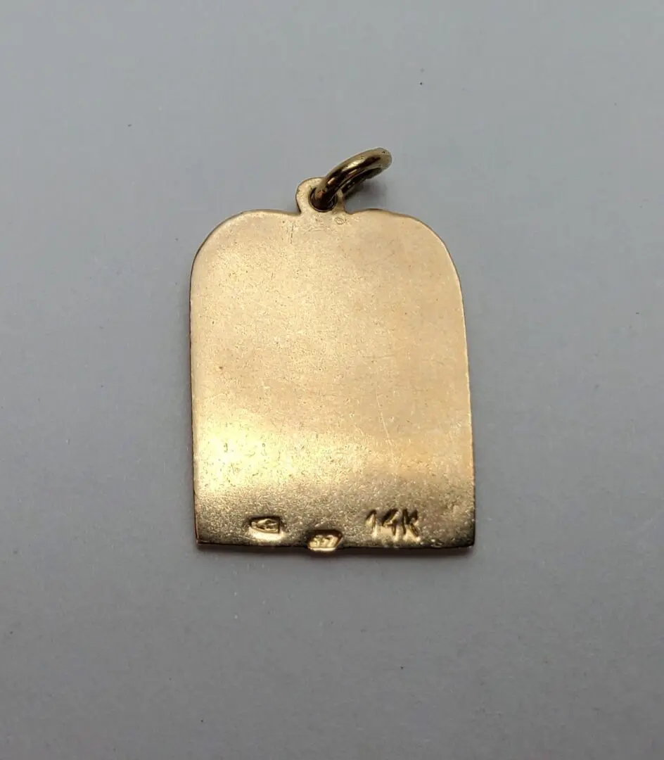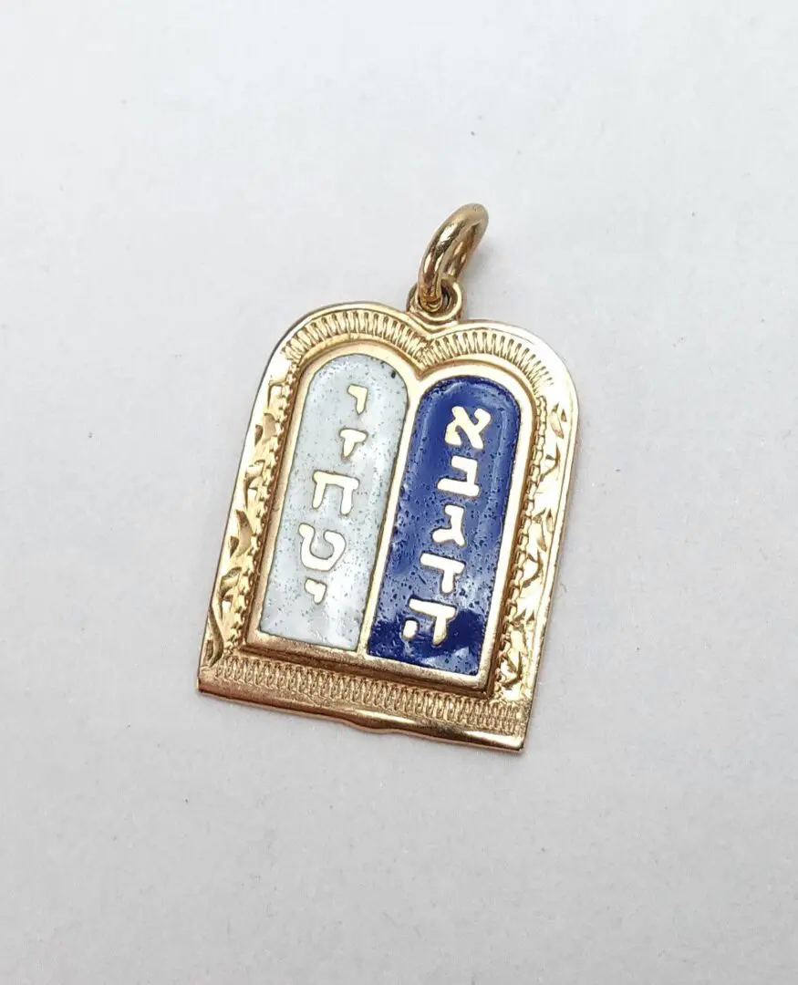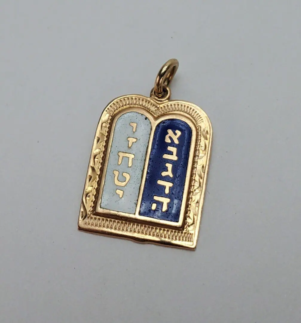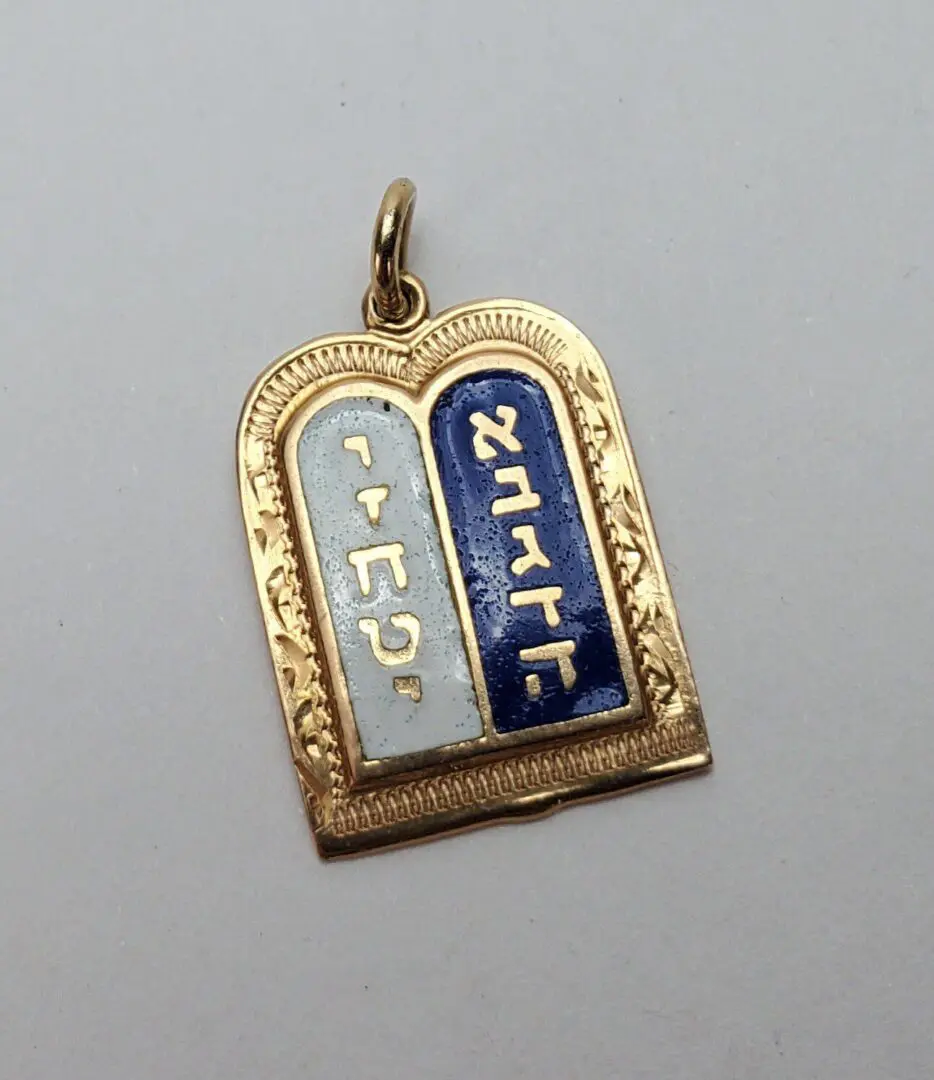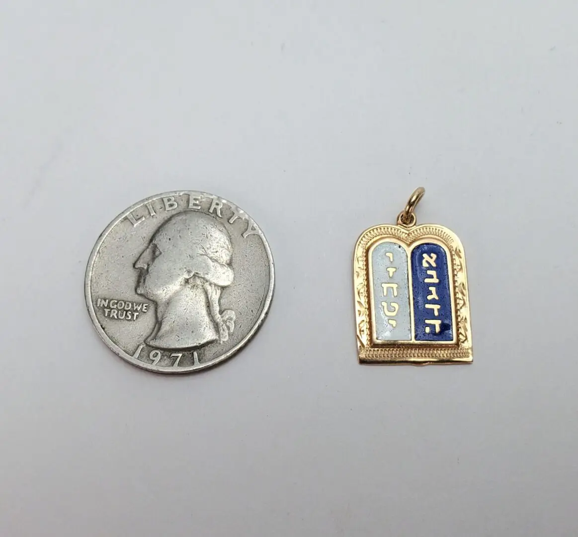 14k Yellow Gold Enamel 10 Ten Commandments Tablets Dangle Dangling Drop Pendant