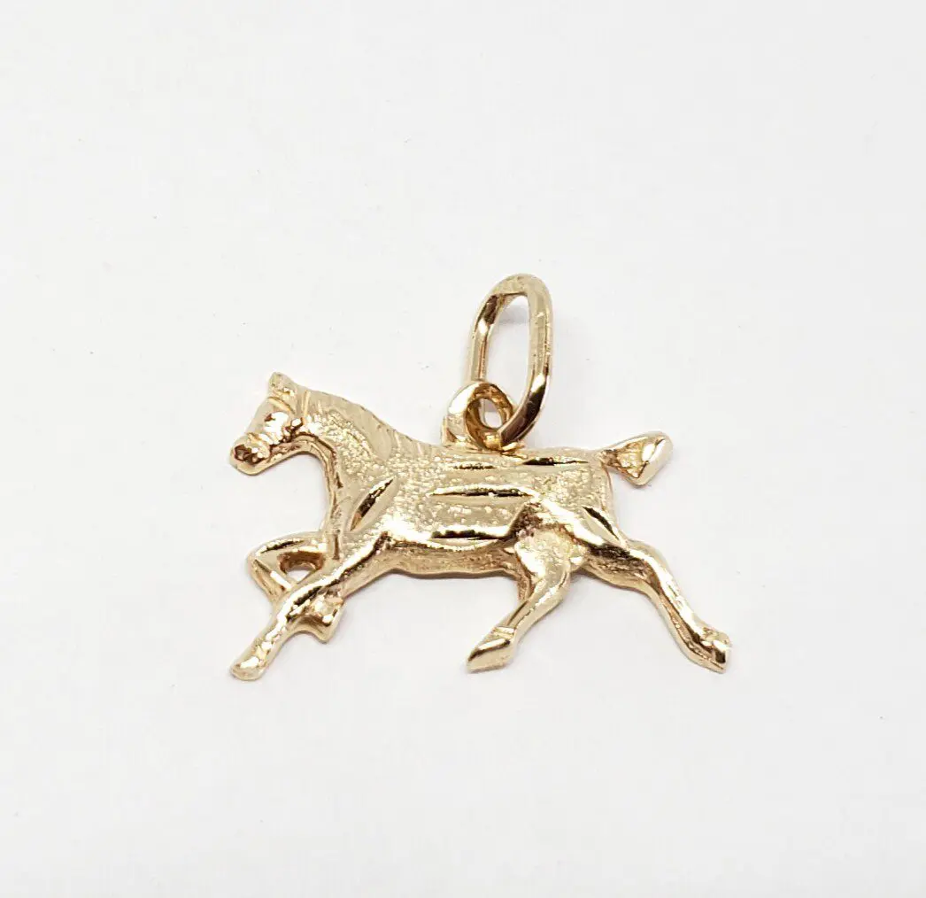 14k Yellow Gold Great Horse Steed Mare Strength Pendant Charm