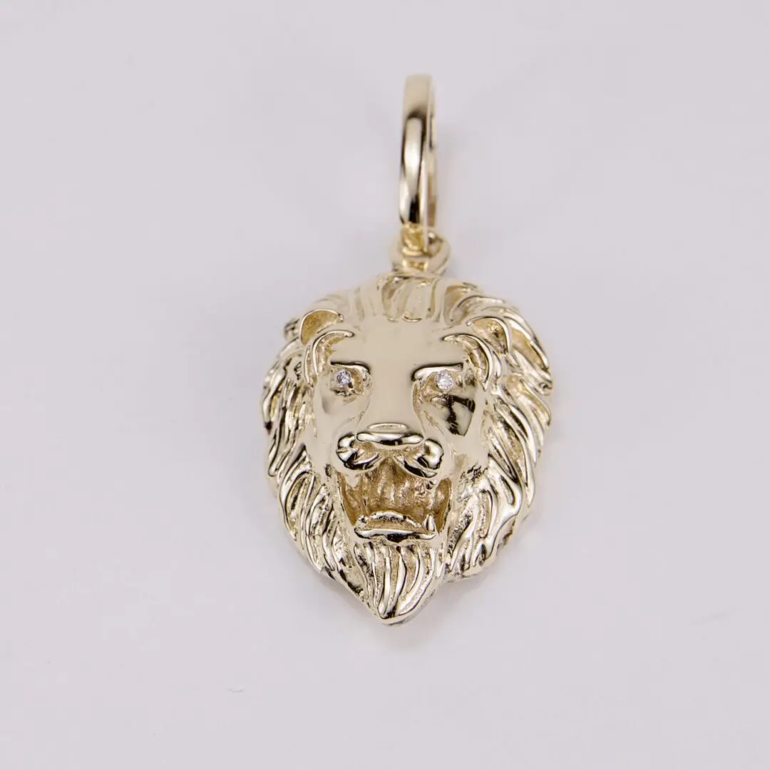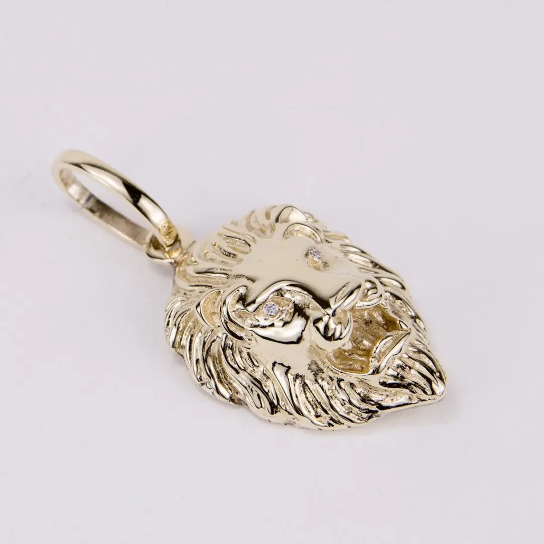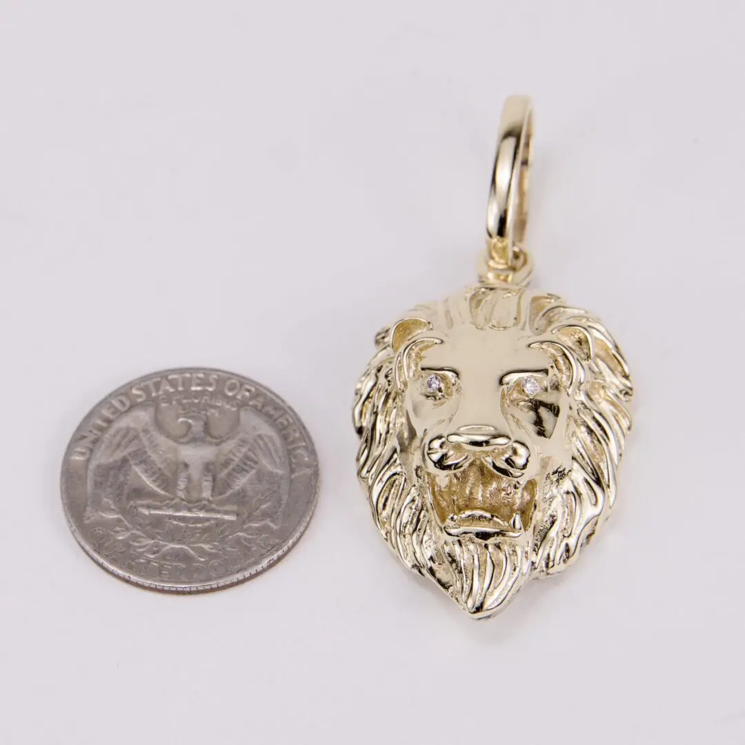 14k Yellow Gold Large Realistic Diamond Lion Head Pendant 2 3/8''