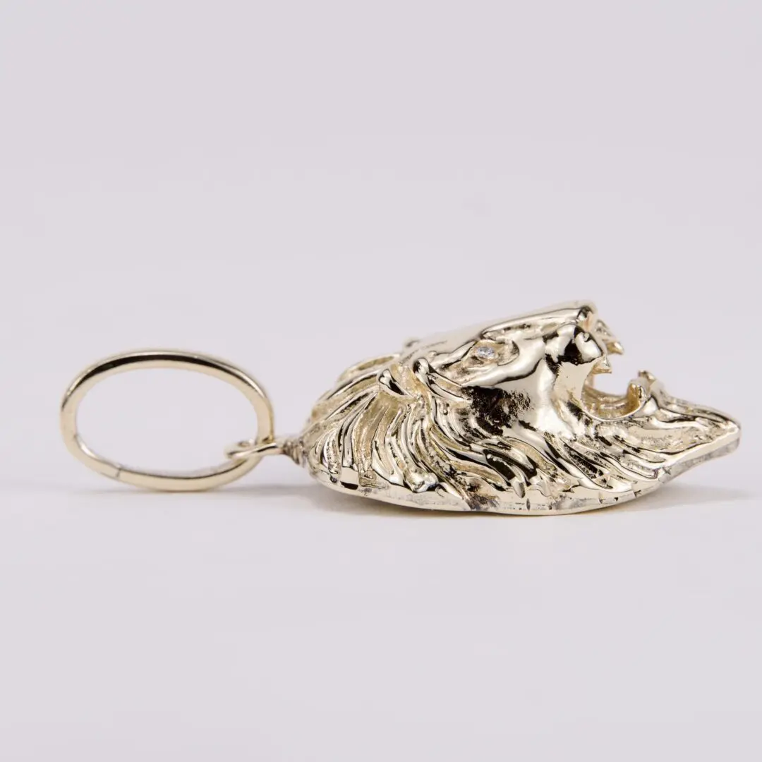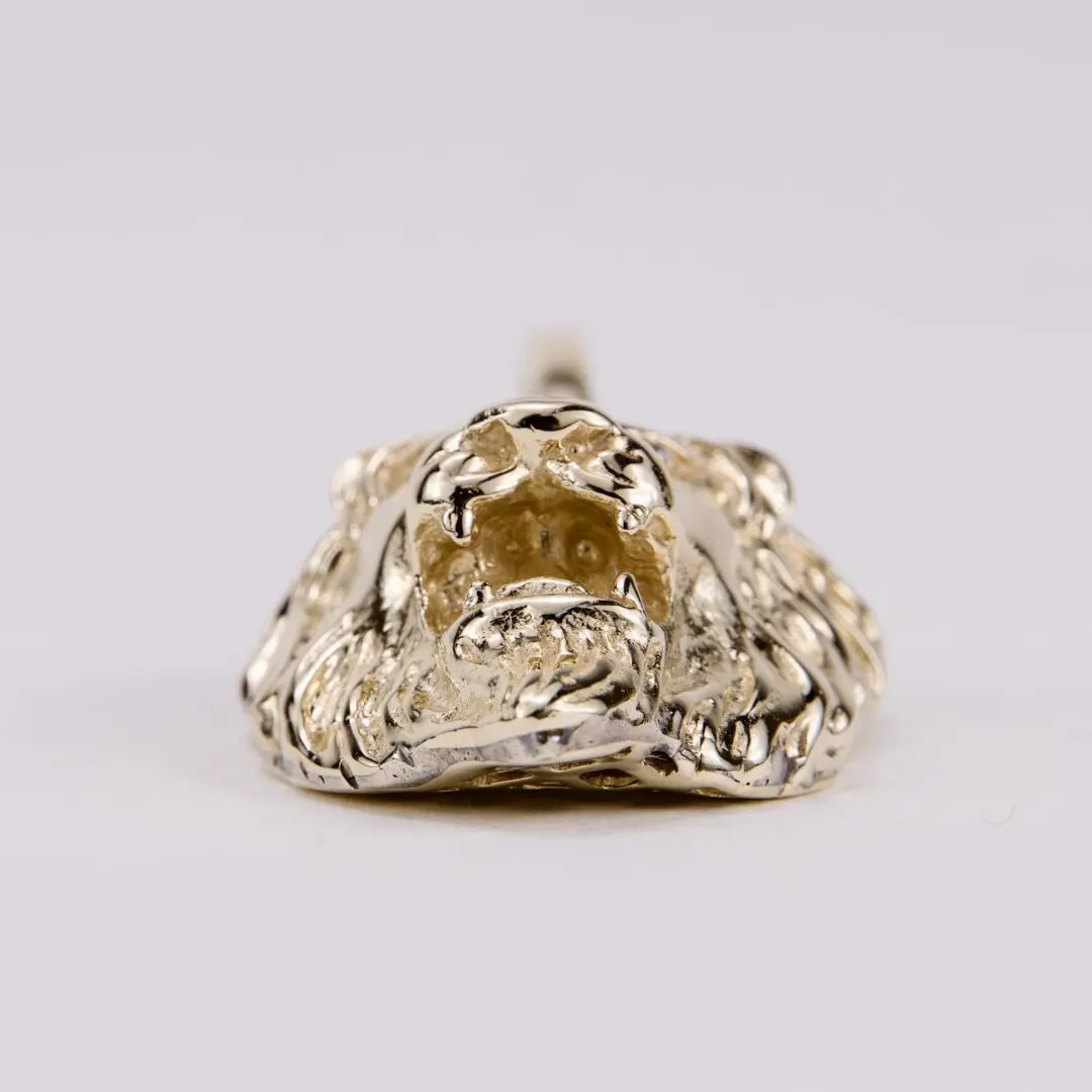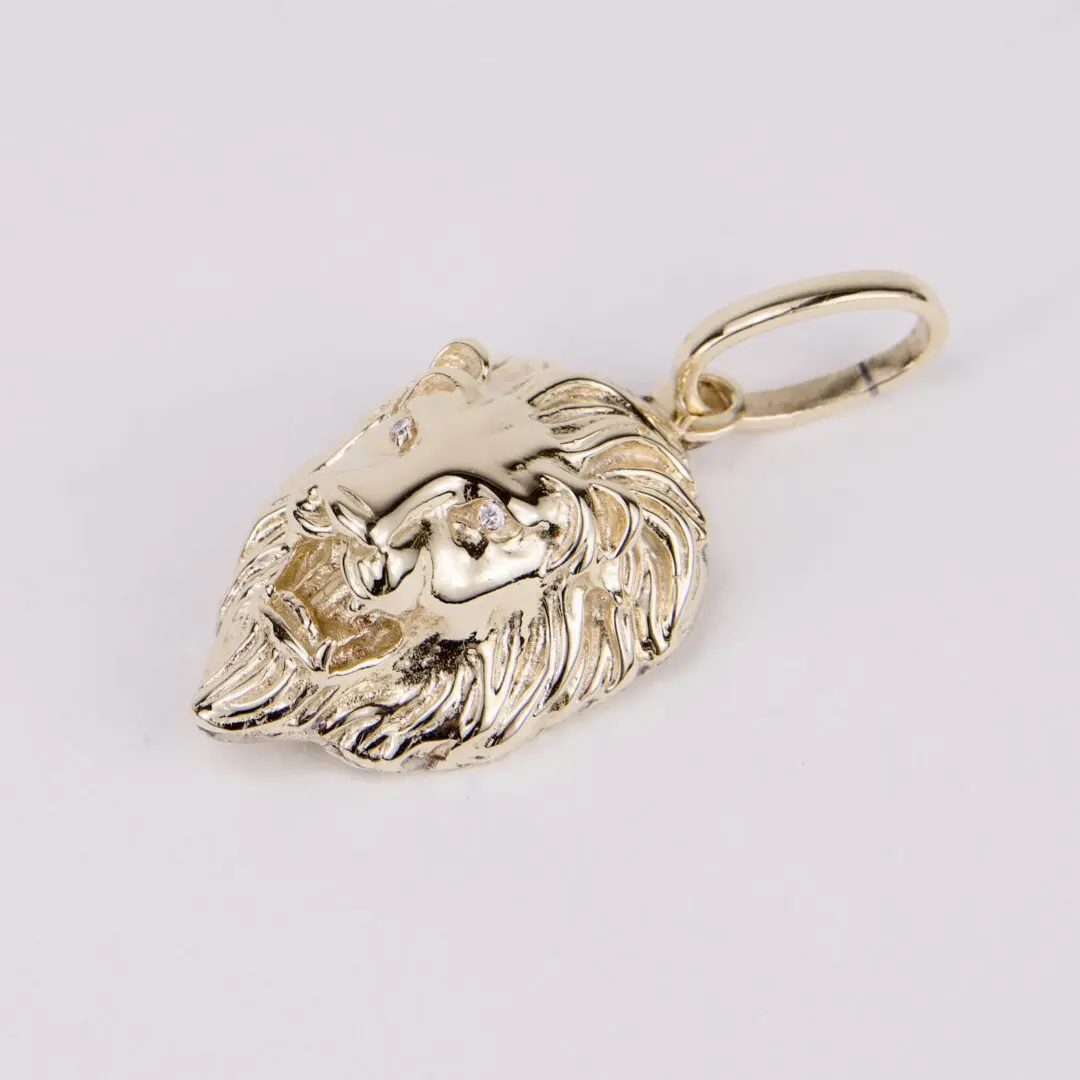 14k Yellow Gold Large Realistic Diamond Lion Head Pendant 2 3/8''