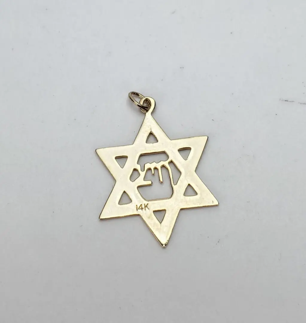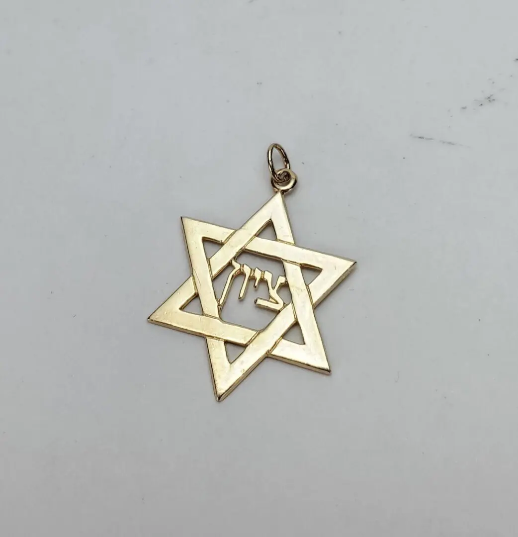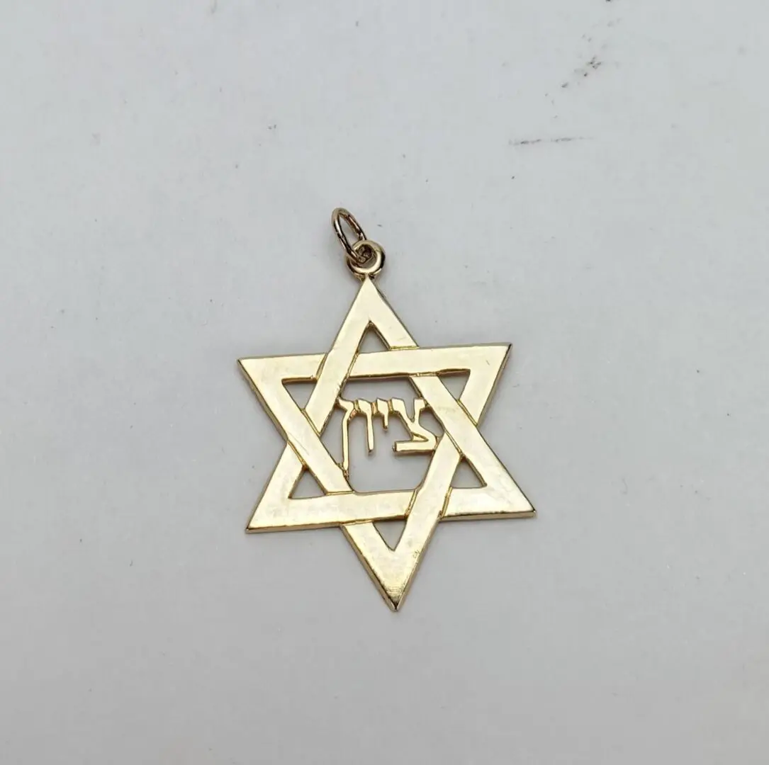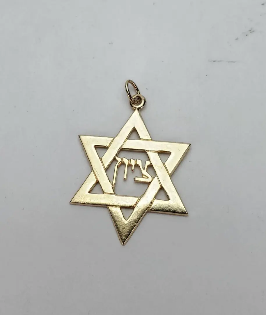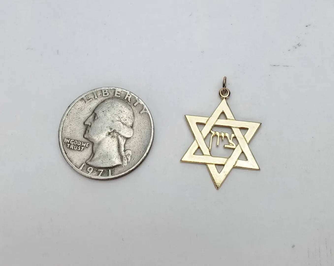 14k Yellow Gold Mount Zion Tzion Star of David Magen David Drop Pendant 1''