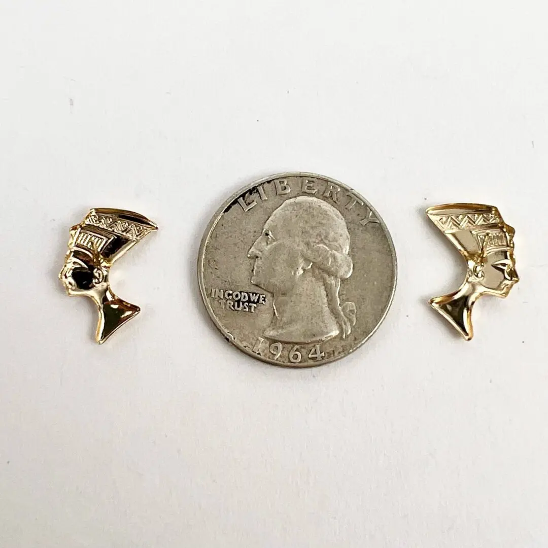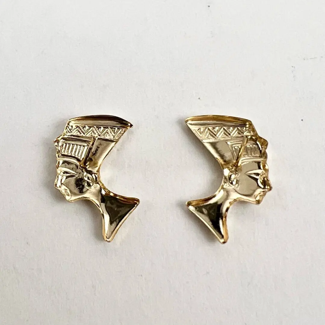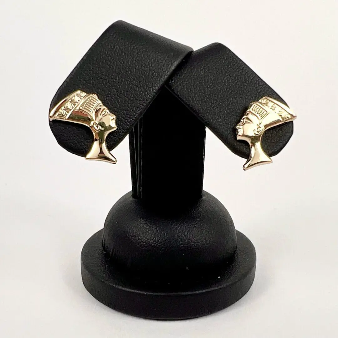 14k Yellow Gold Nefertiti Egyptian Stud Earrings 5/8''