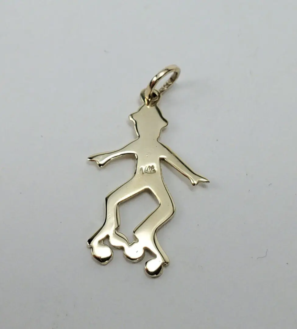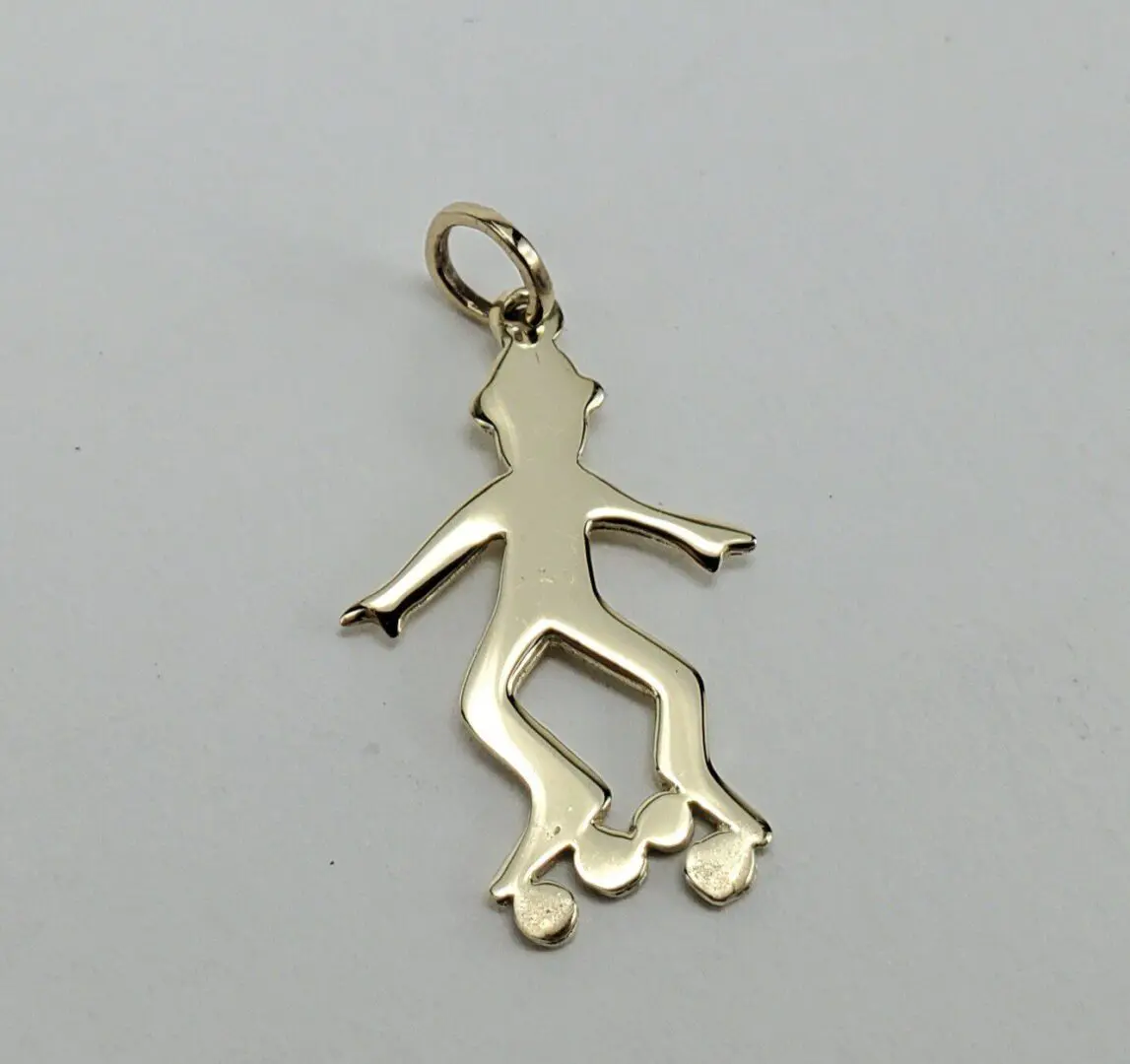 14k Yellow Gold Roller Skater Person Skating Roller Bladder Drop Pendant 1''