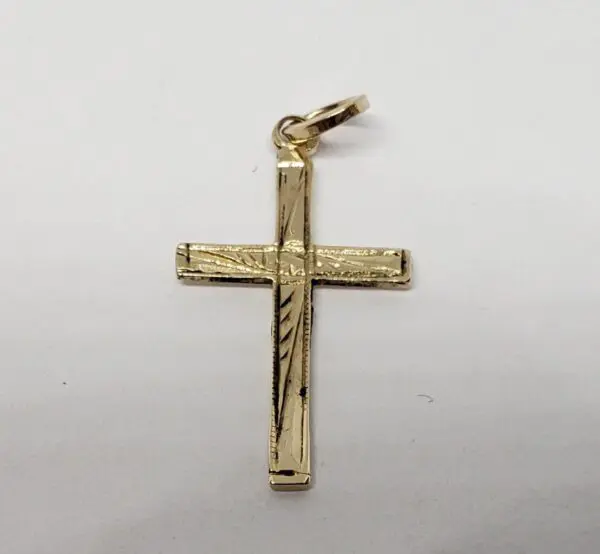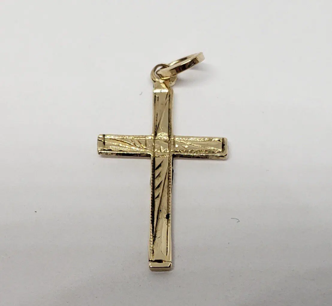 14k Yellow Gold Small Engraved Crucifix Cross Jesus Charm Pendant 15/16''