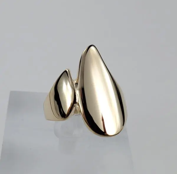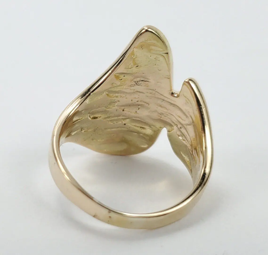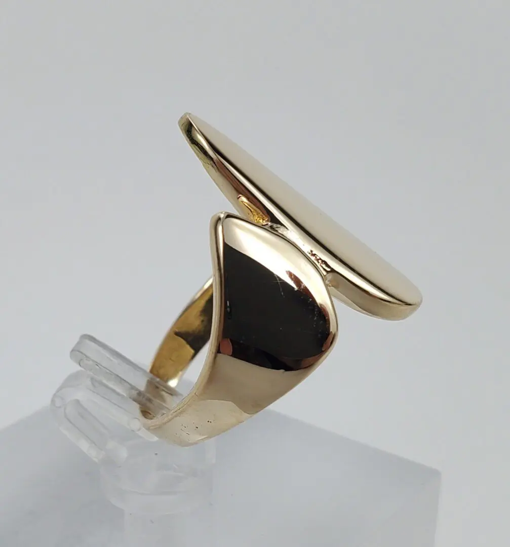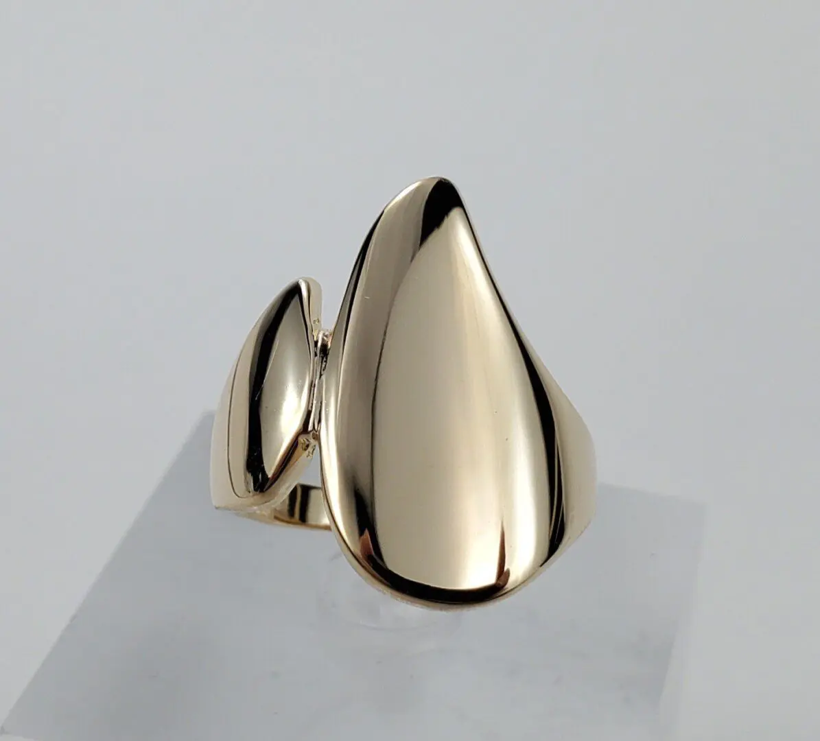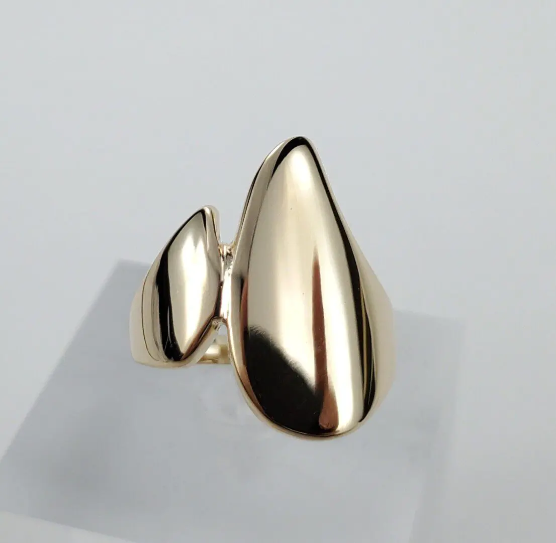 14k Yellow Gold Wide Twin Flame Polished Bypass Style Band Cocktail Ring 7''