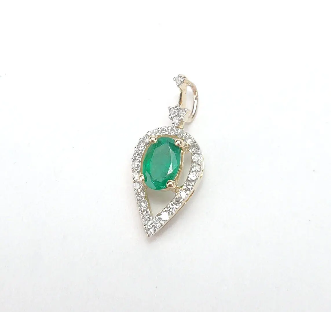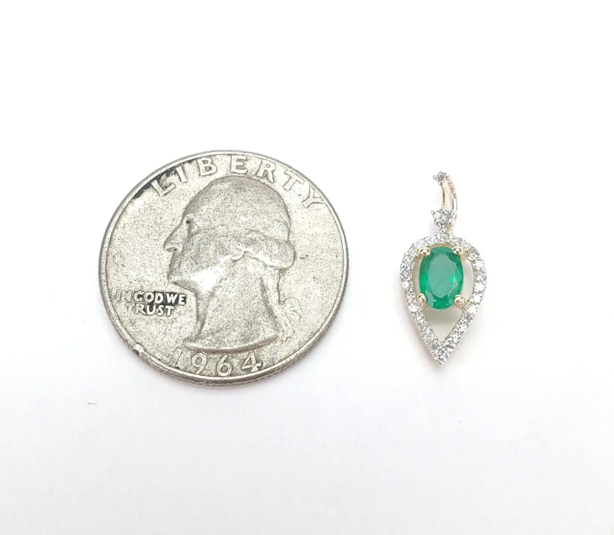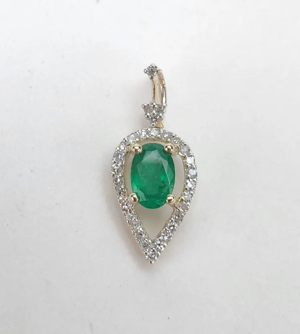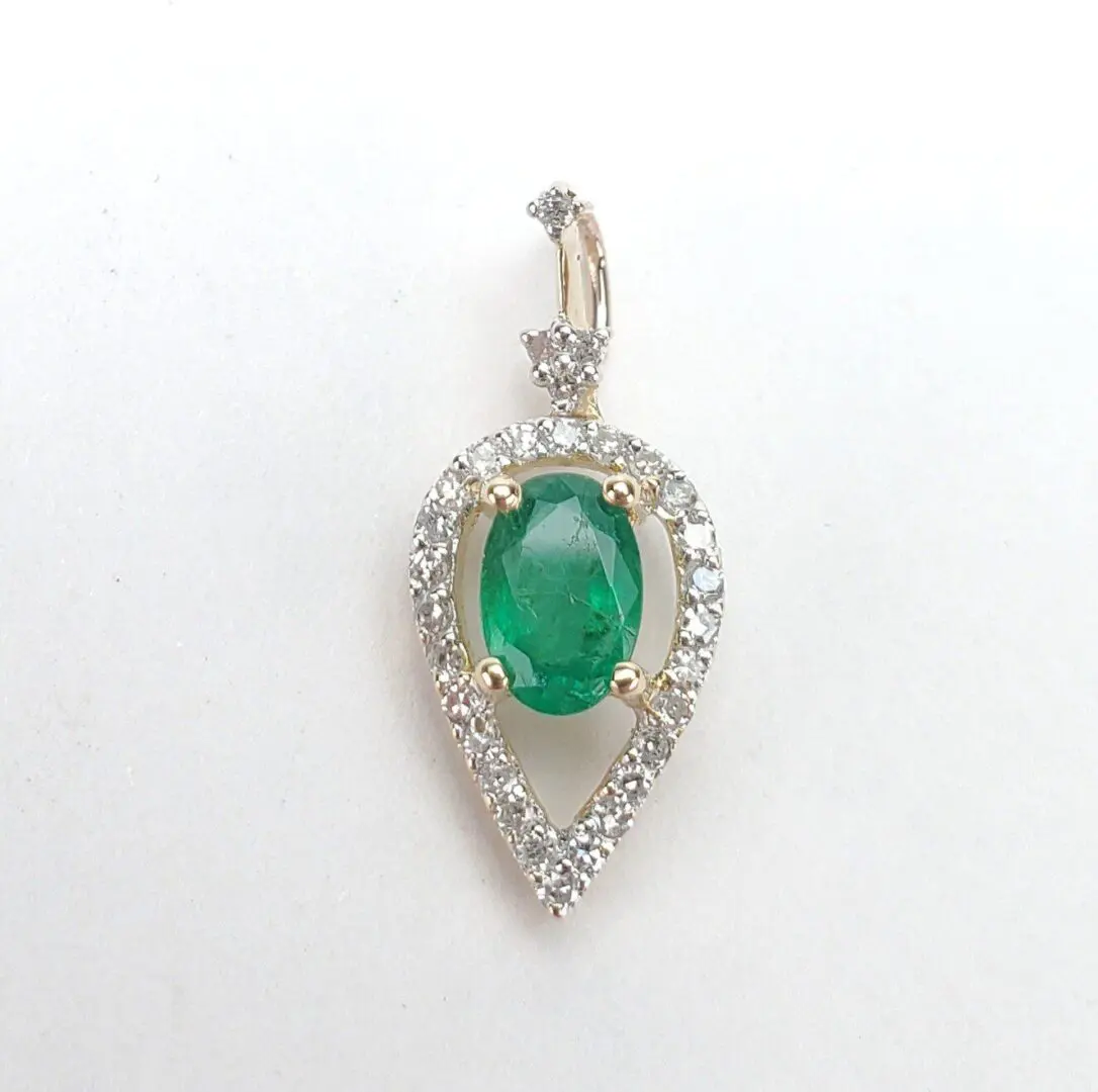 18k Multi-Tone Gold Natural Emerald Pave Halo Diamond Slider Pendant 3/4''