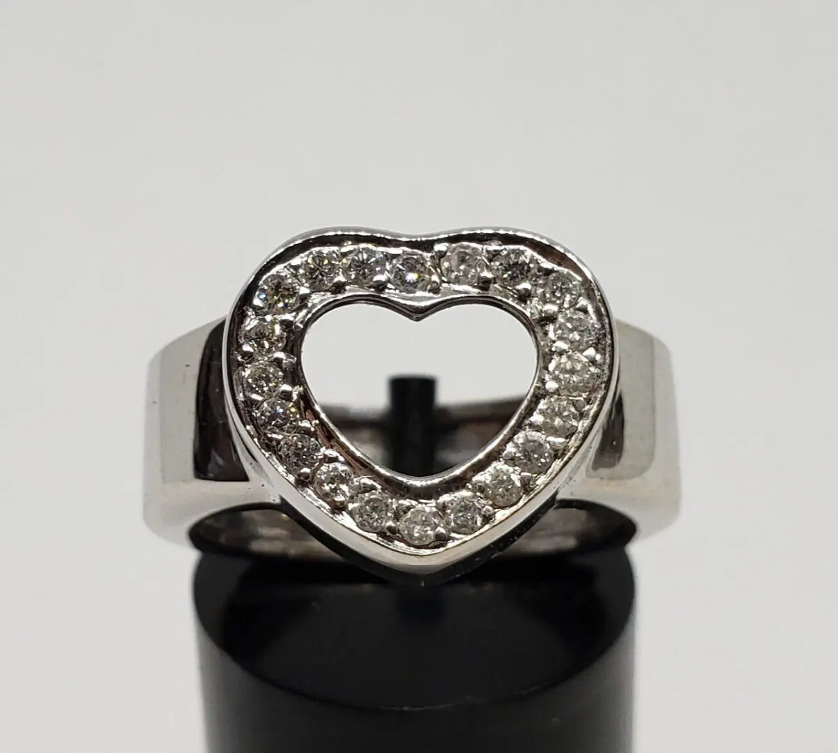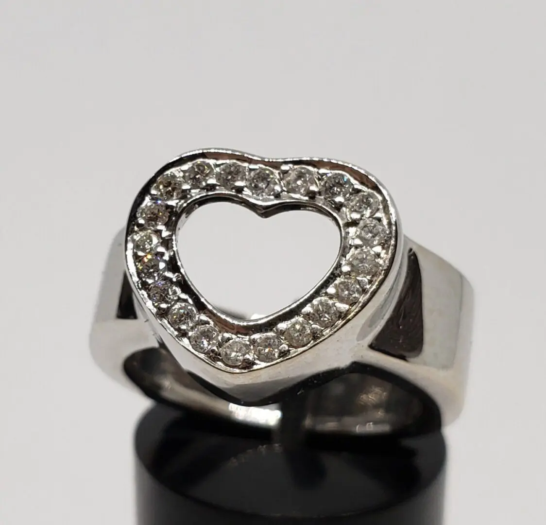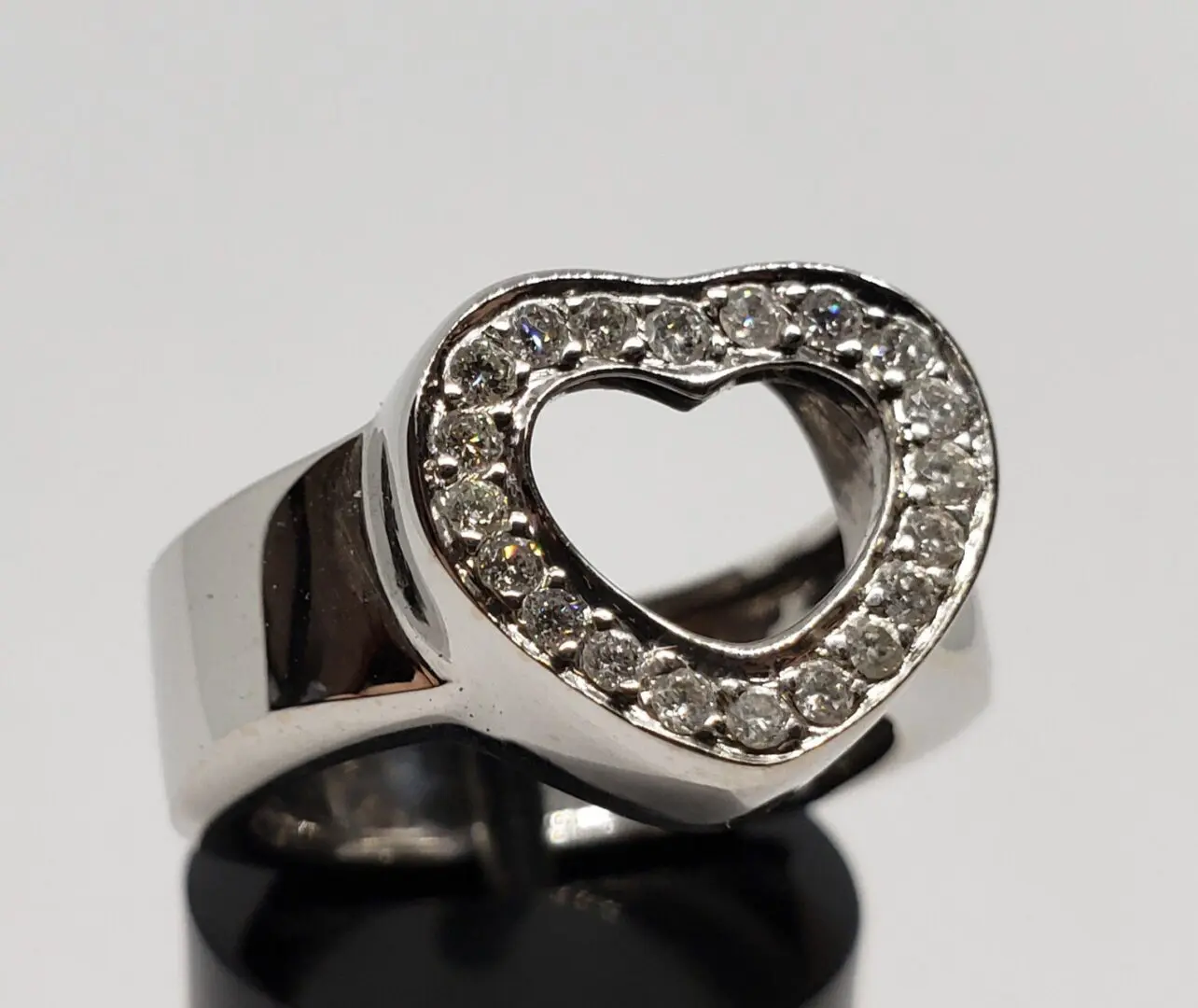 18k White Gold Open Heart Diamond Accent Thick Shank Anniversary Promise Ring