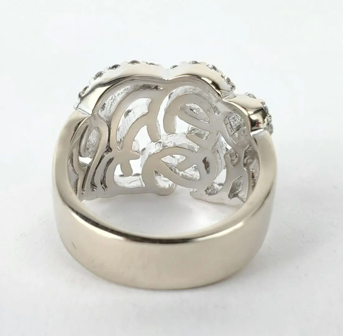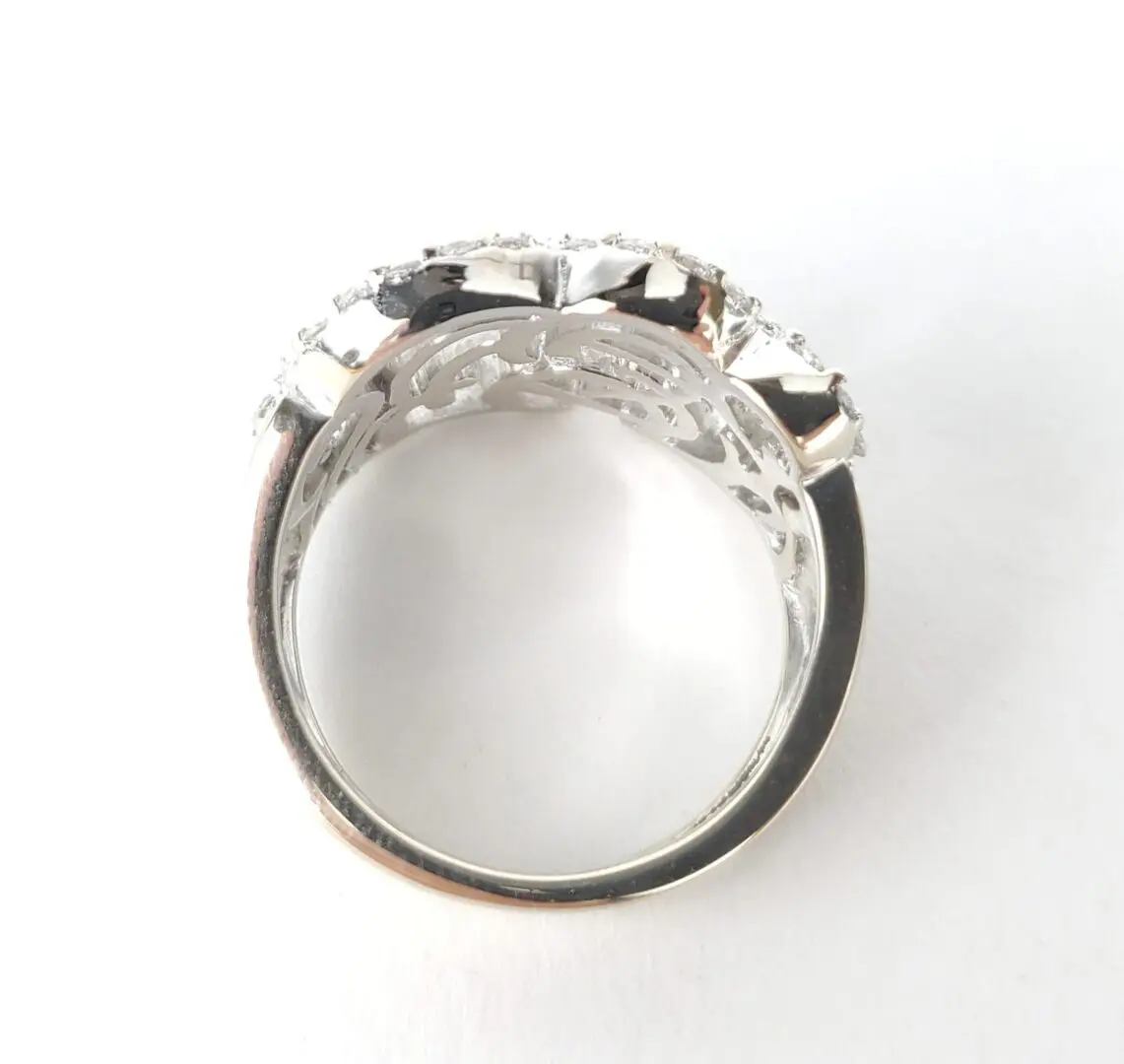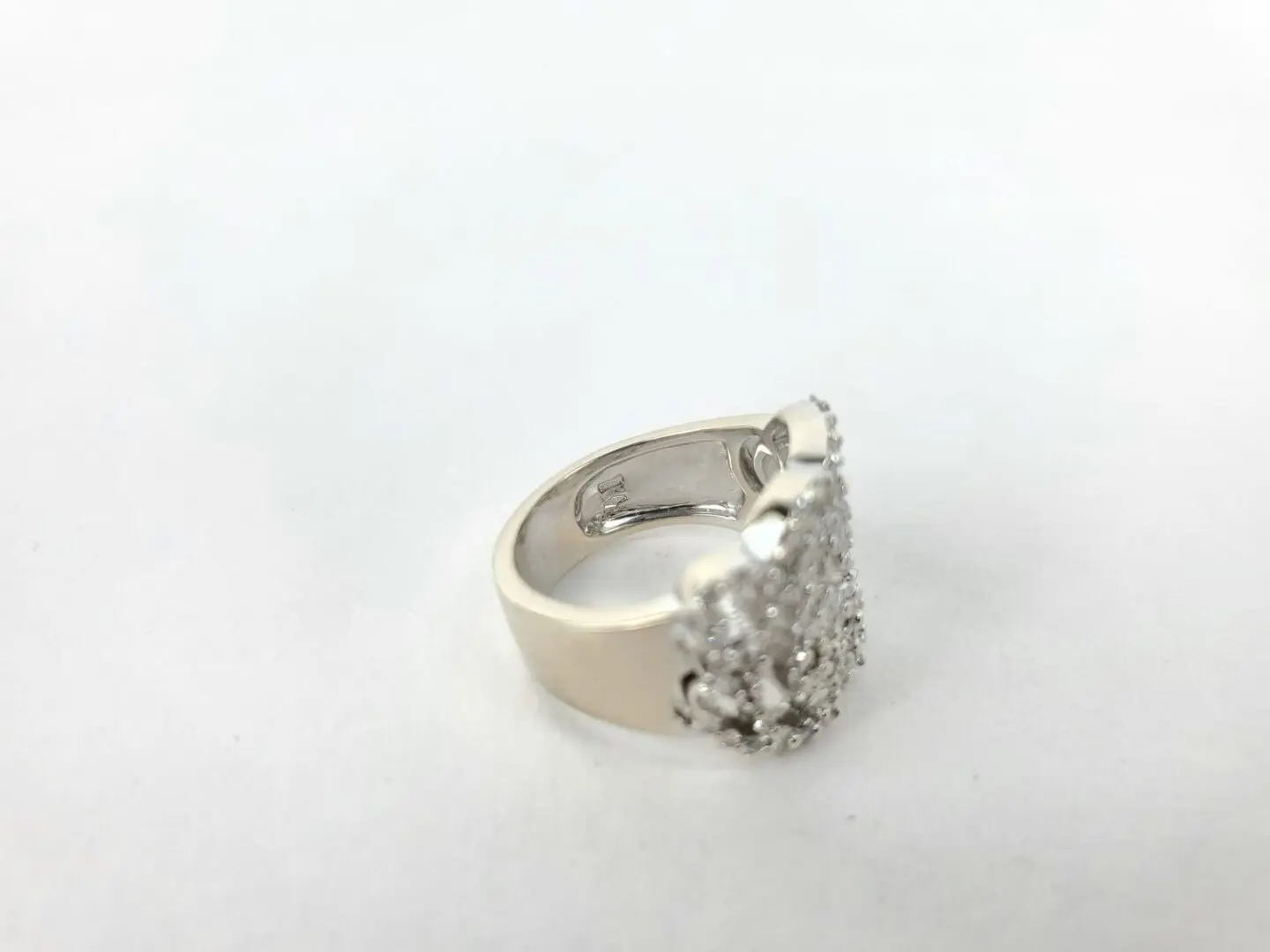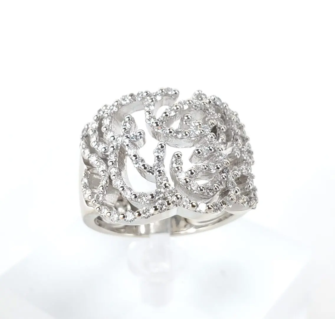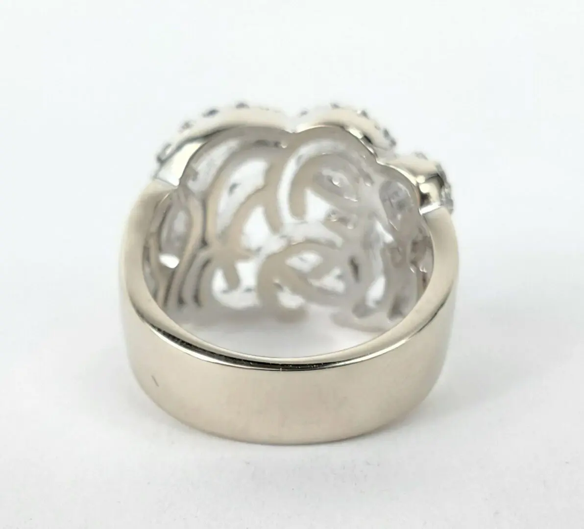 18k White Gold Pave Diamond Open Scroll Work Cluster Band Ring 7.5''