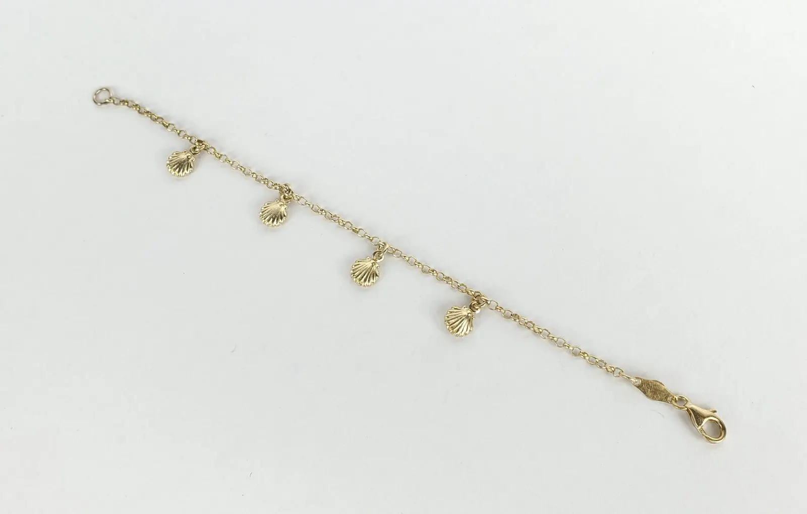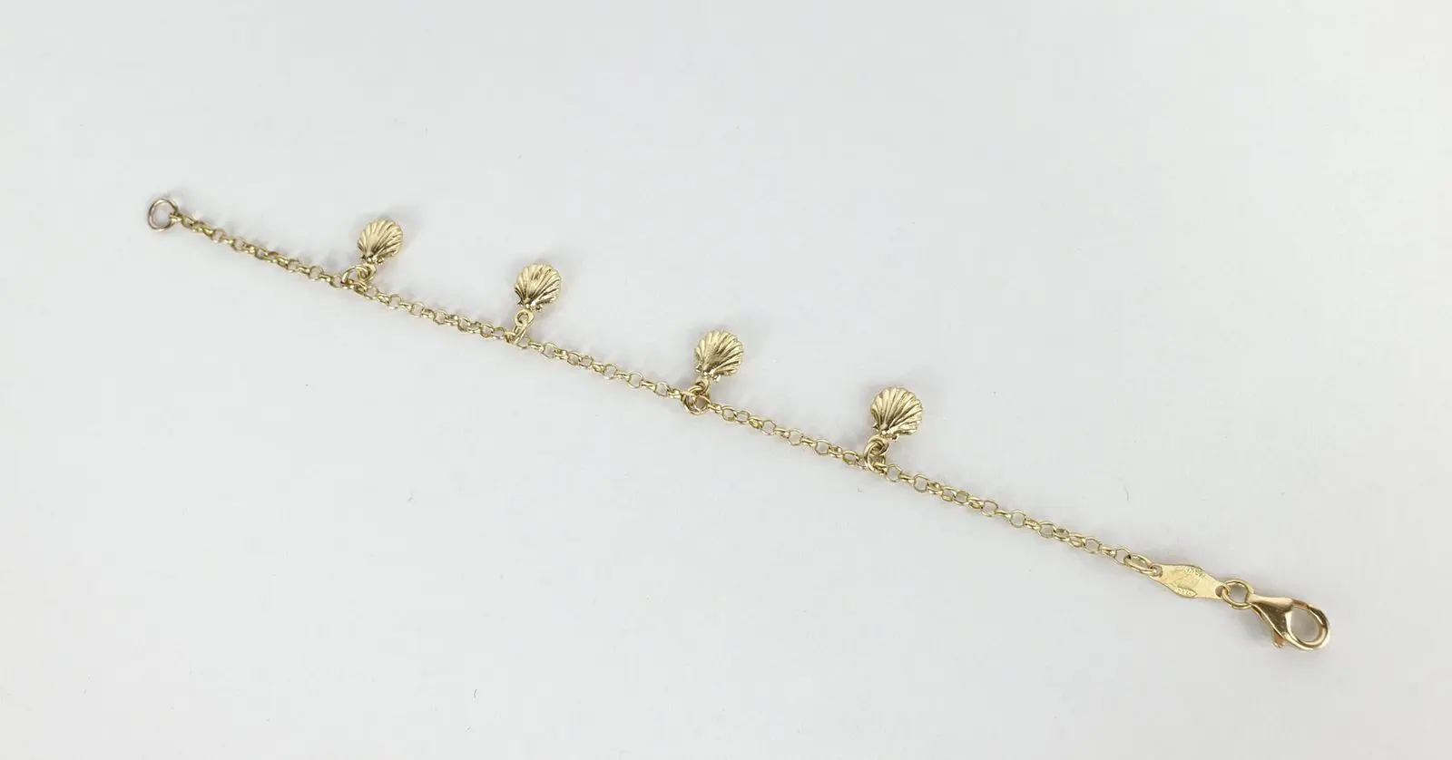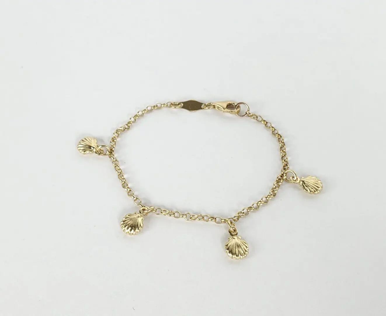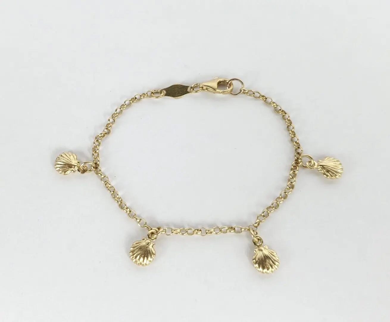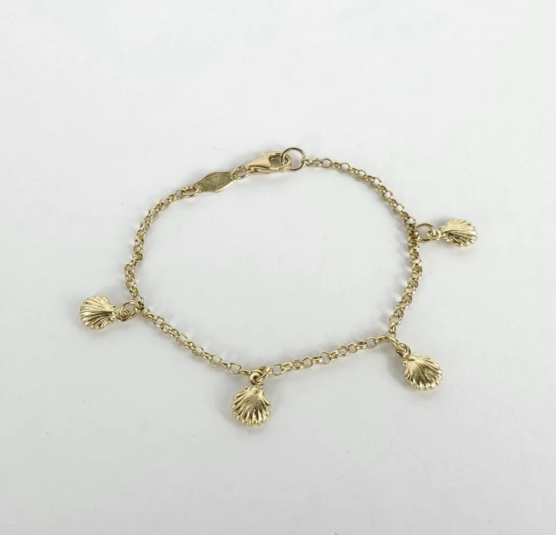 18k Yellow Gold Clam Oyster Nautical Childrens Kids Chain Link Charm Bracelet
