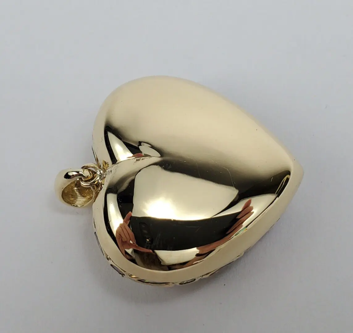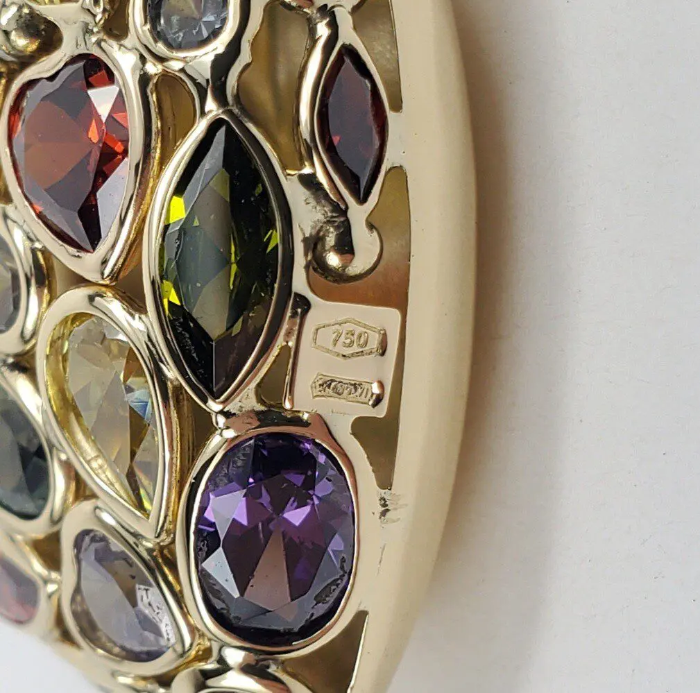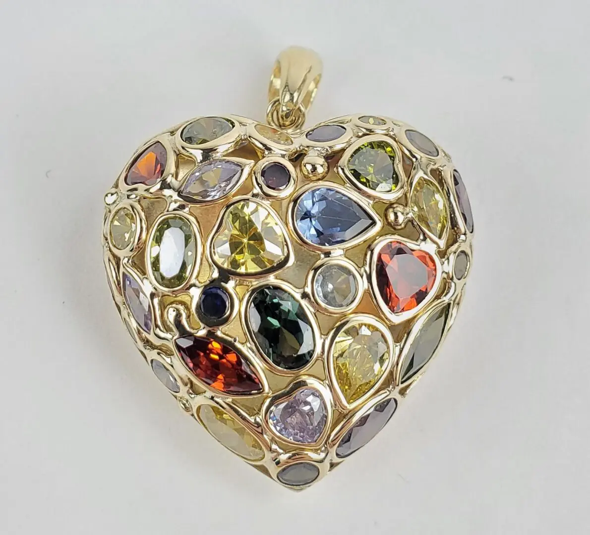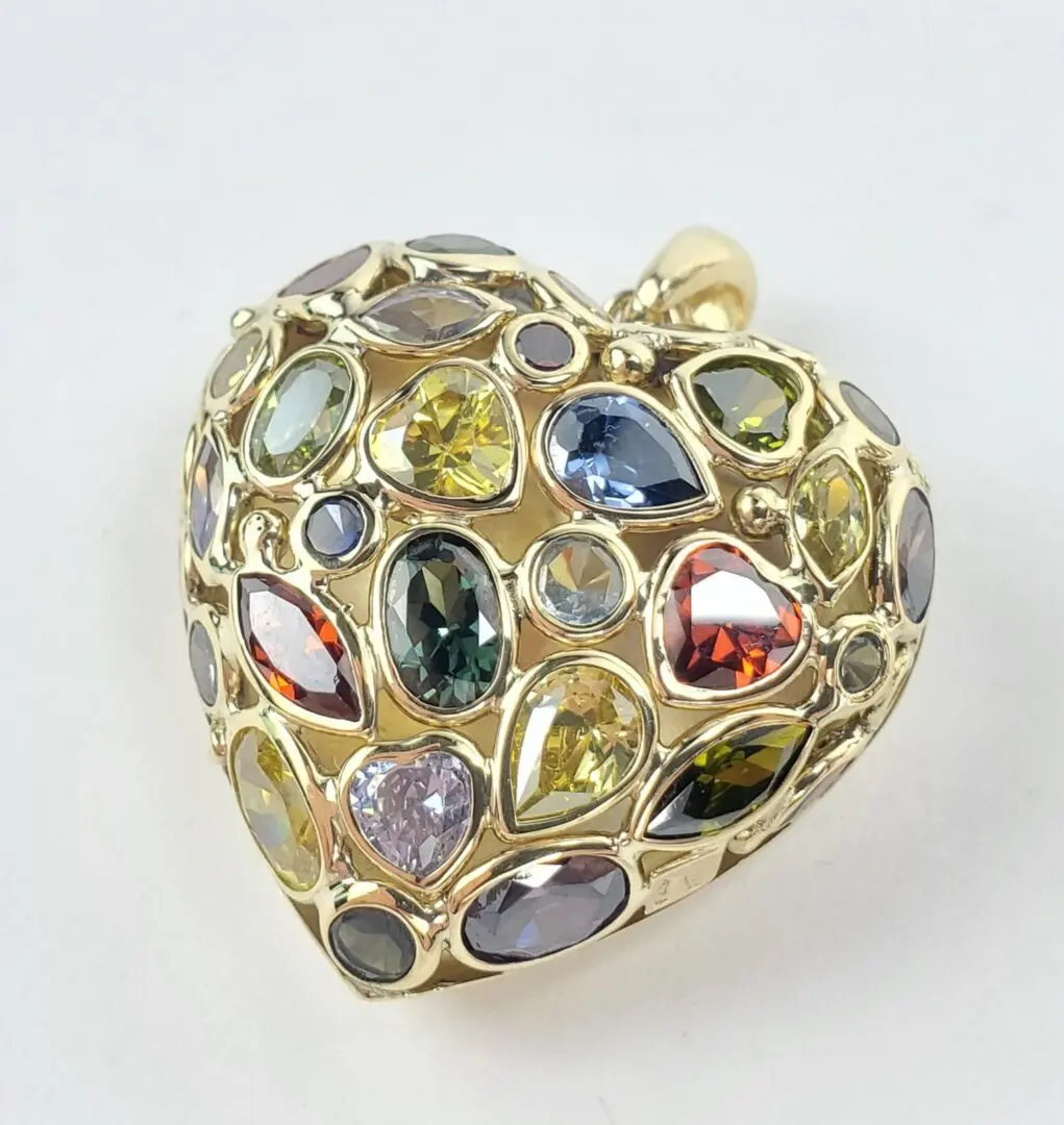 18k Yellow Gold Mosaico Multi Colored Puffed Heart Love Drop Pendant 1 1/2''