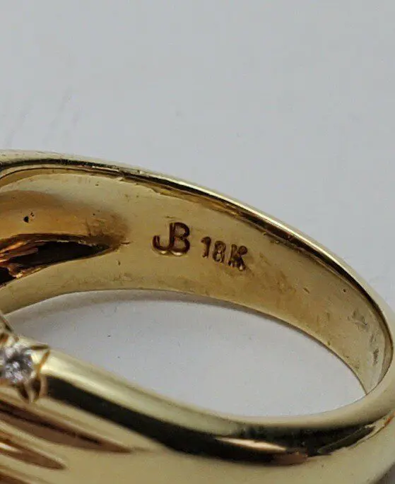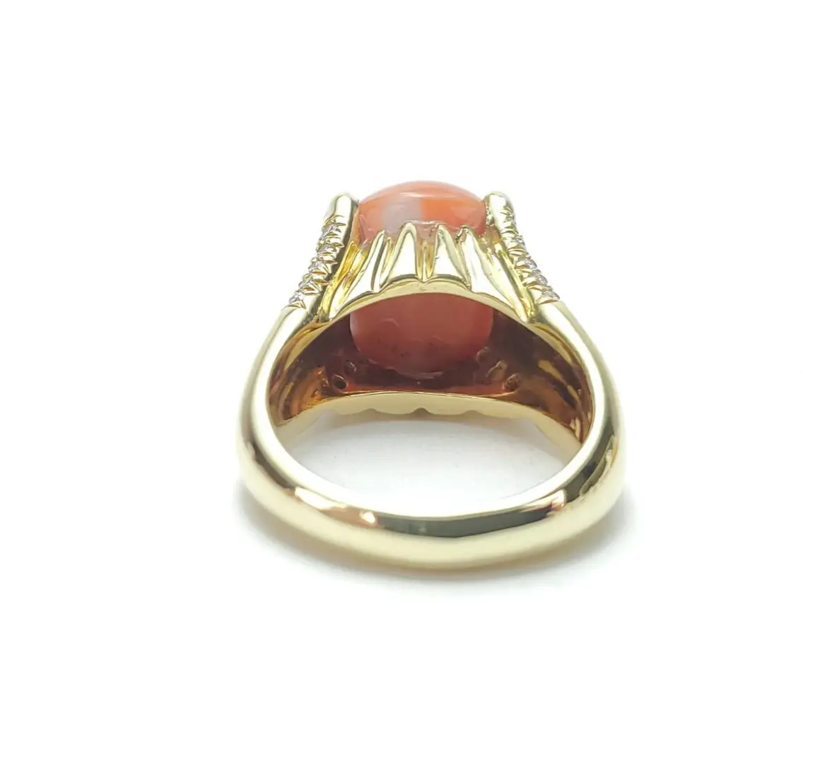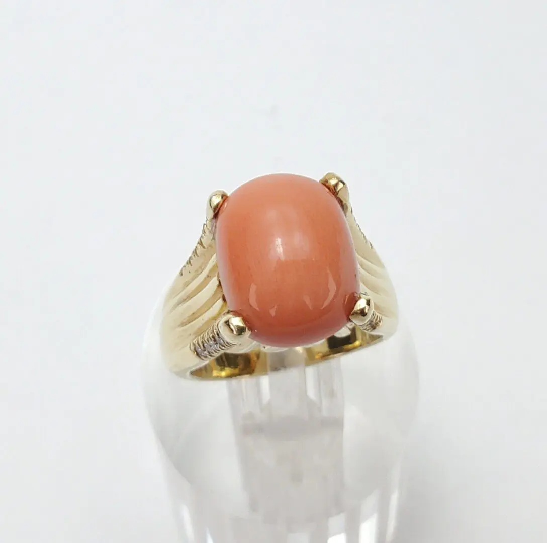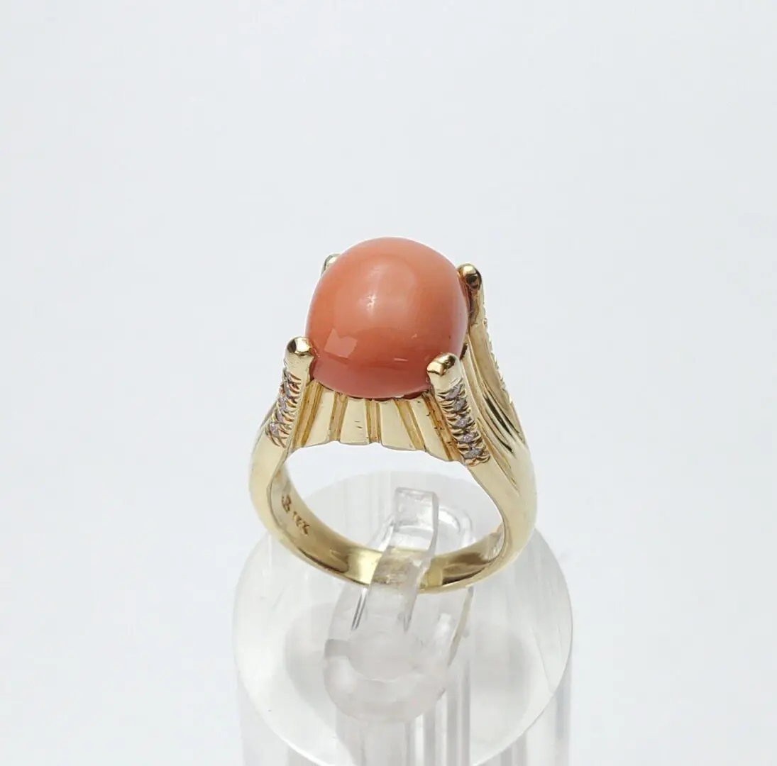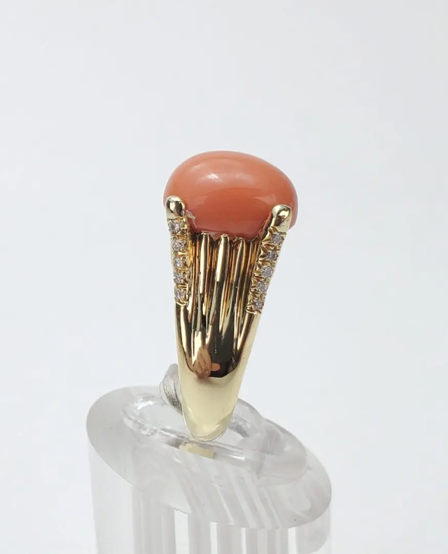18k Yellow Gold Natural Diamond Coral Cocktail Estate Dinner Ring 5.5''
