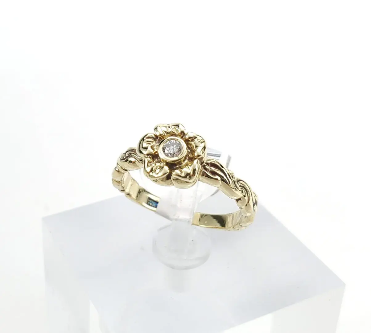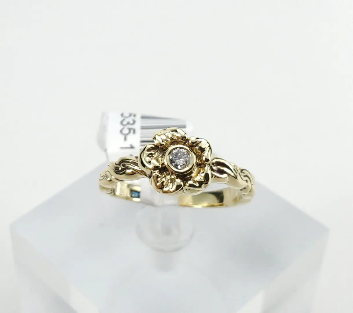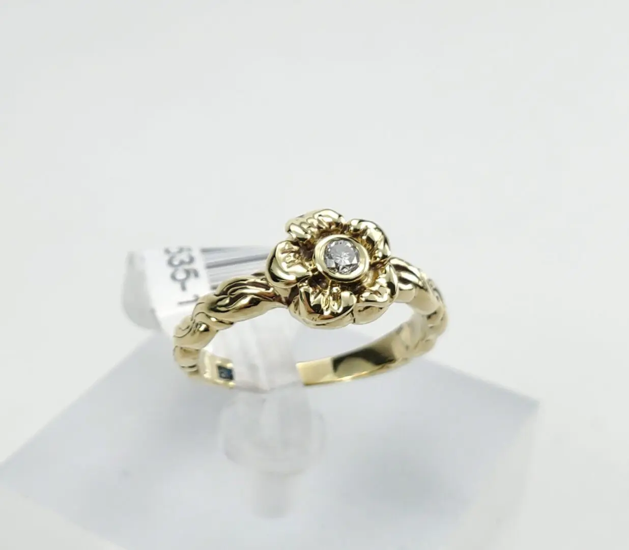 18k Yellow Gold Natural Diamond Flower Braid Vine Ring ZDNY 6'' Sizable