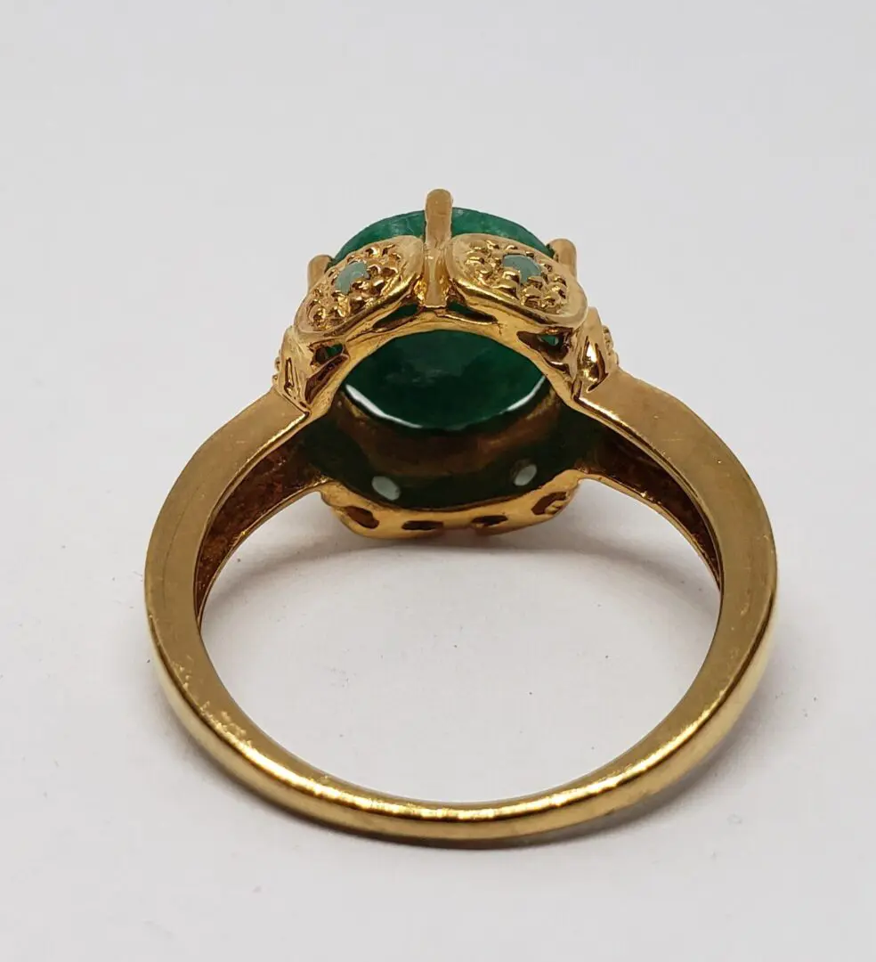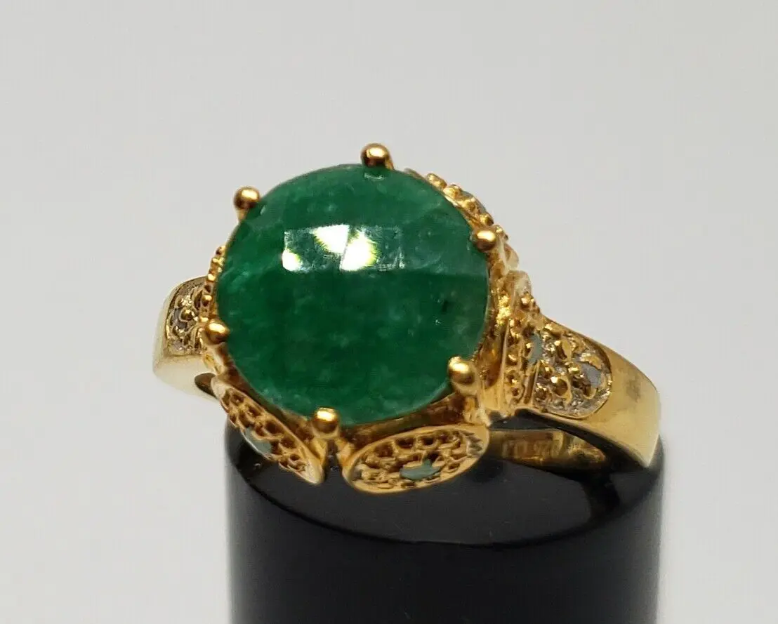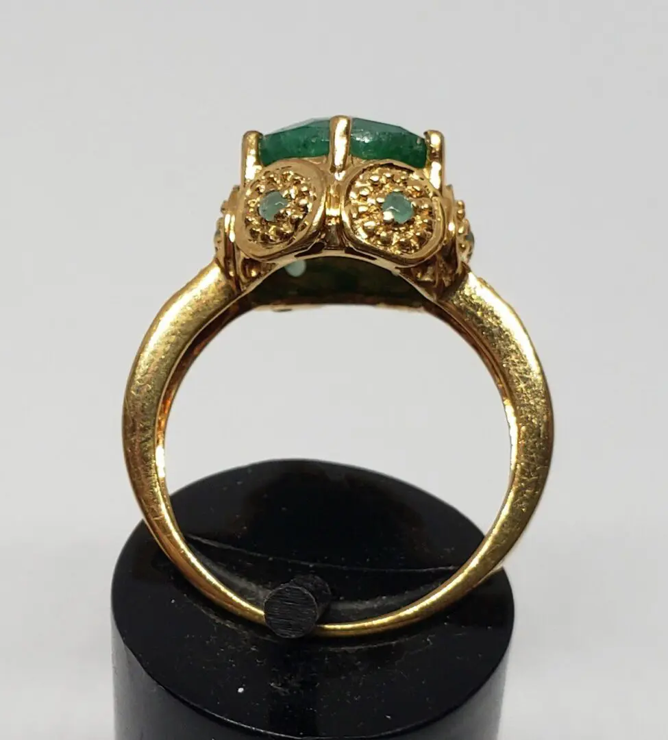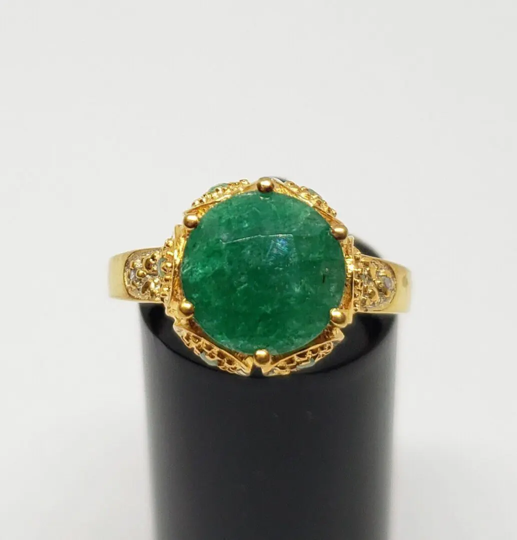 925 Sterling Silver Gold Tone Emerald Diamond Granulated Ring India 7.25''