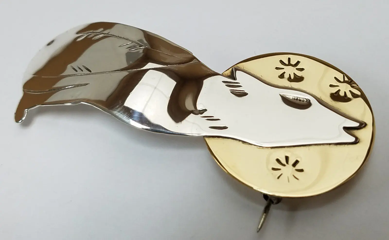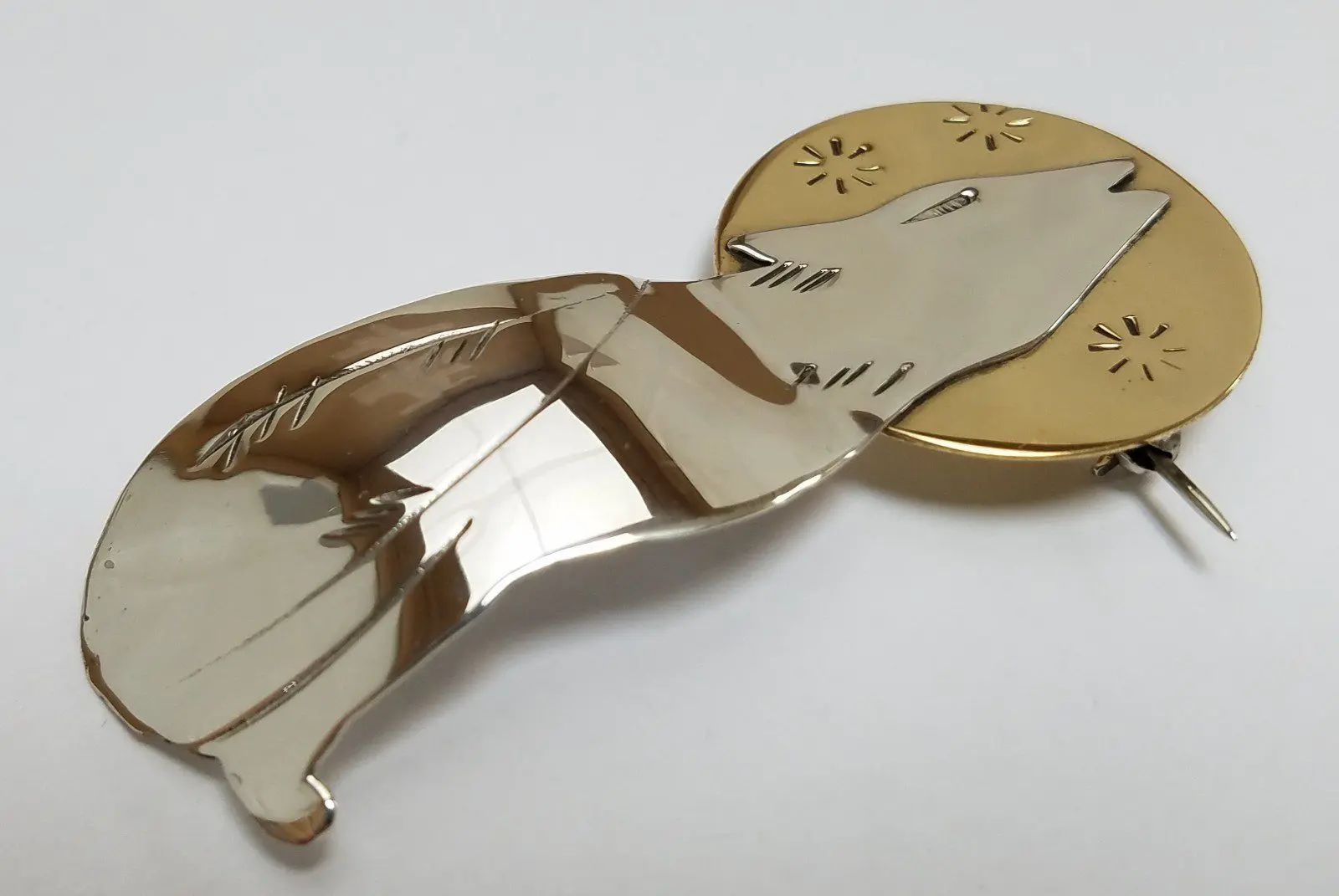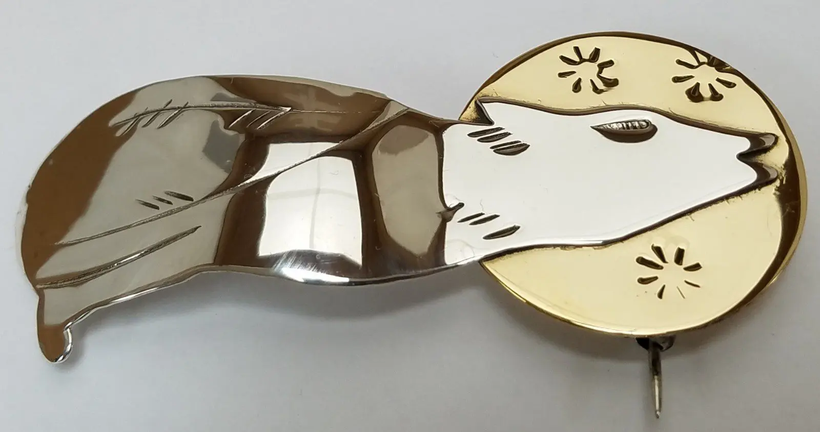 925 Sterling Silver Wolf Coyote Howling at Full Moon Pin Brooch