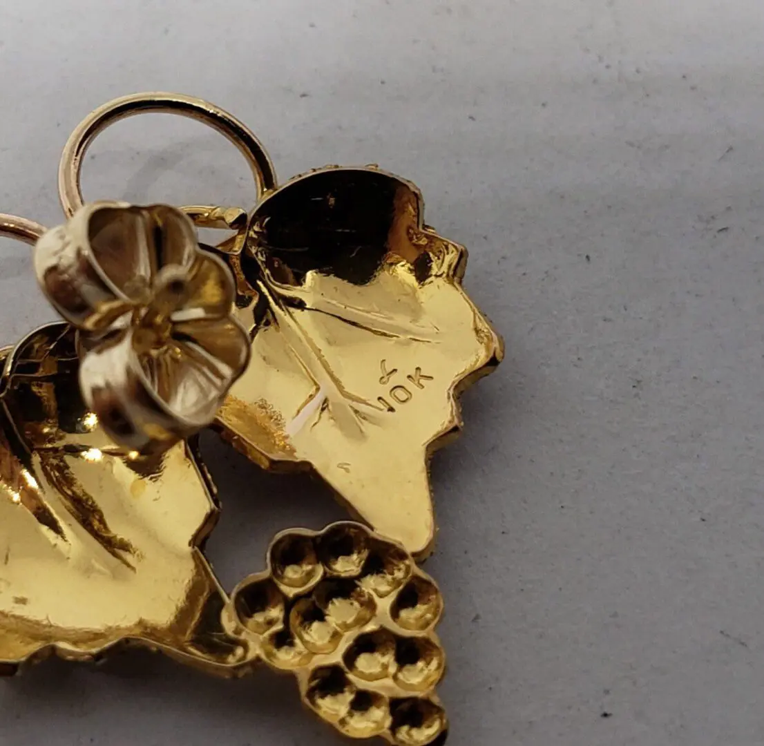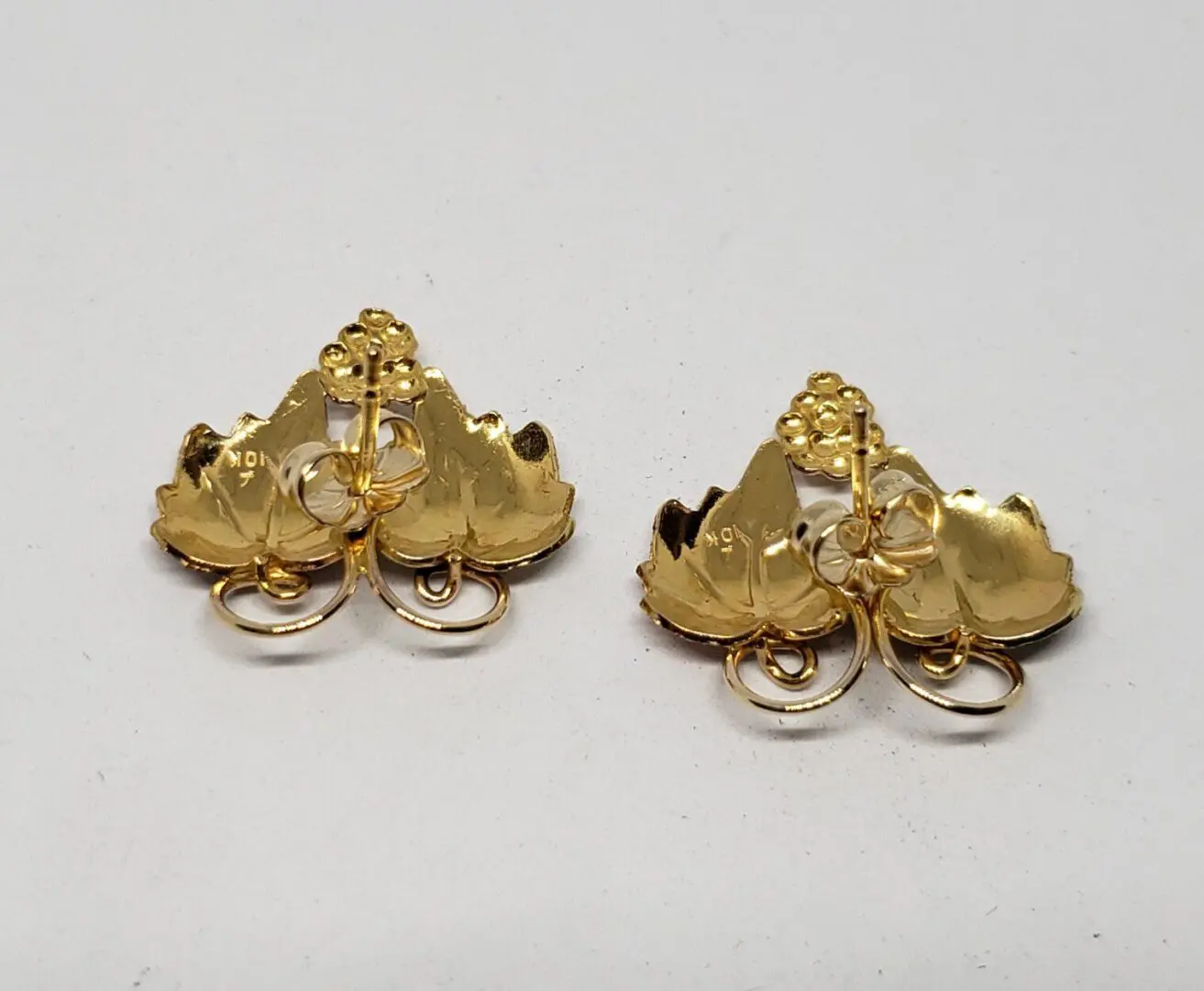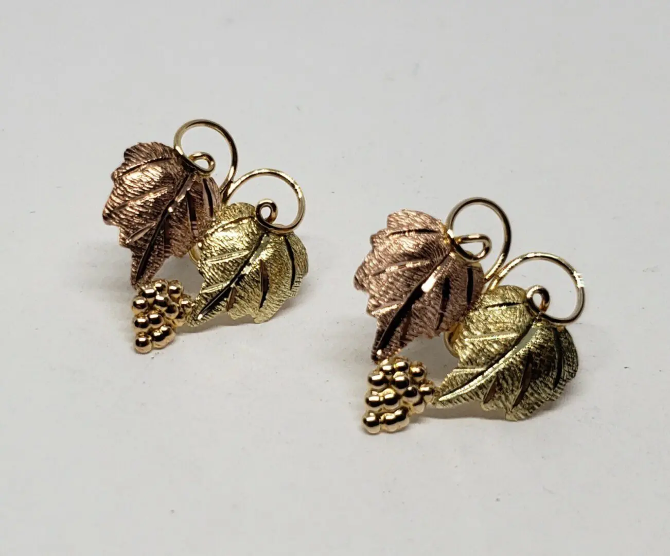Black Hills Gold 10k Tri Yellow Rose White Gold Grape Leaves Vine Stud Earrings