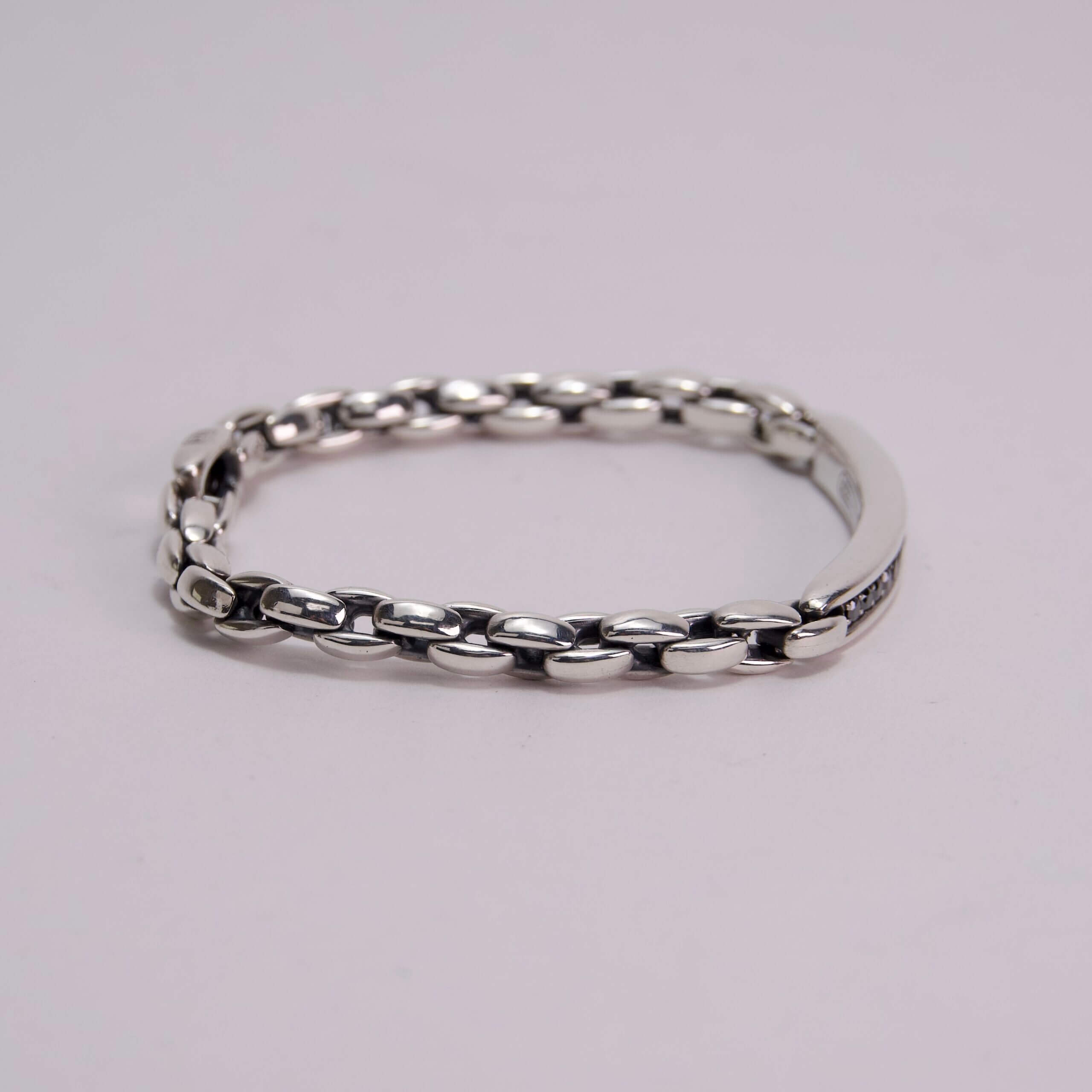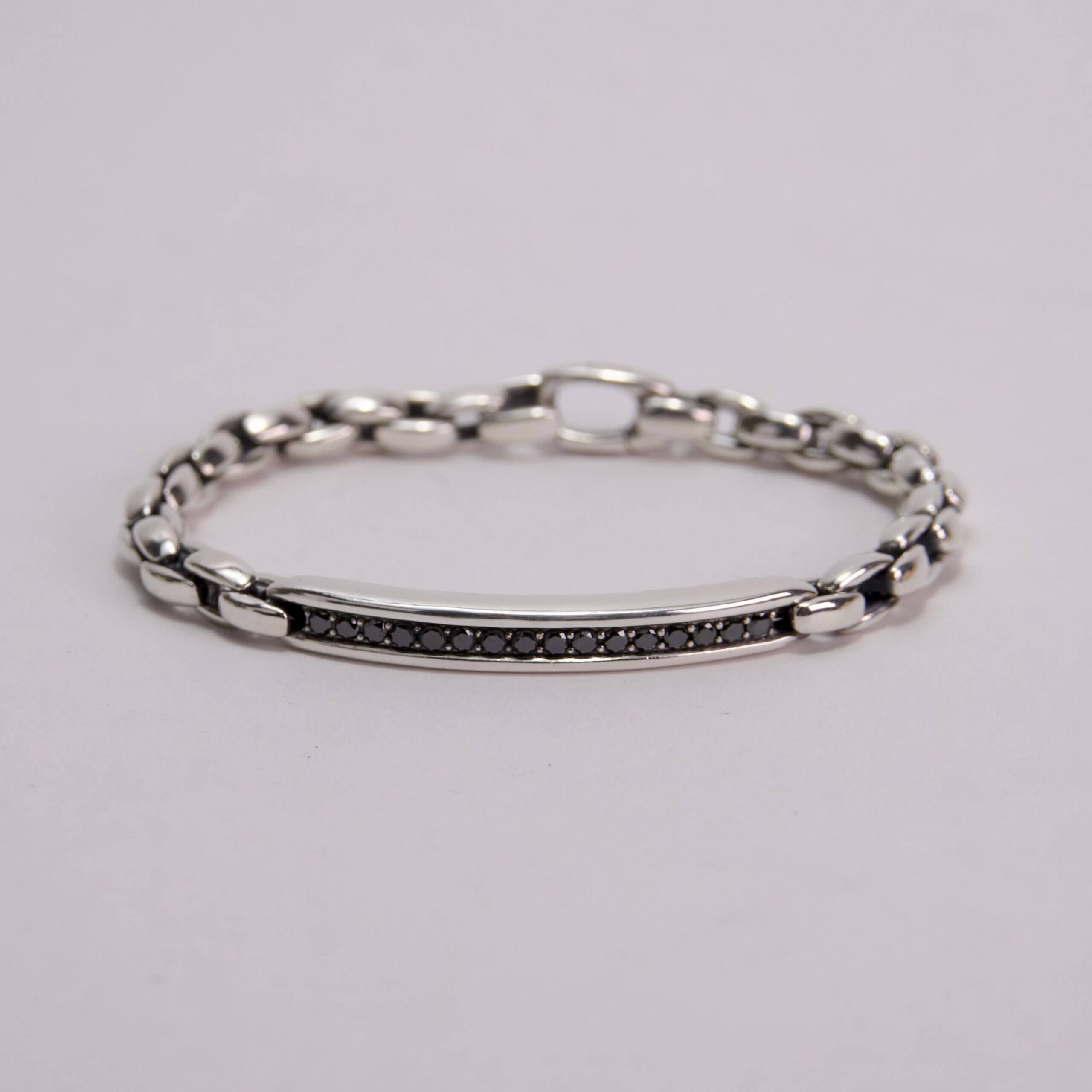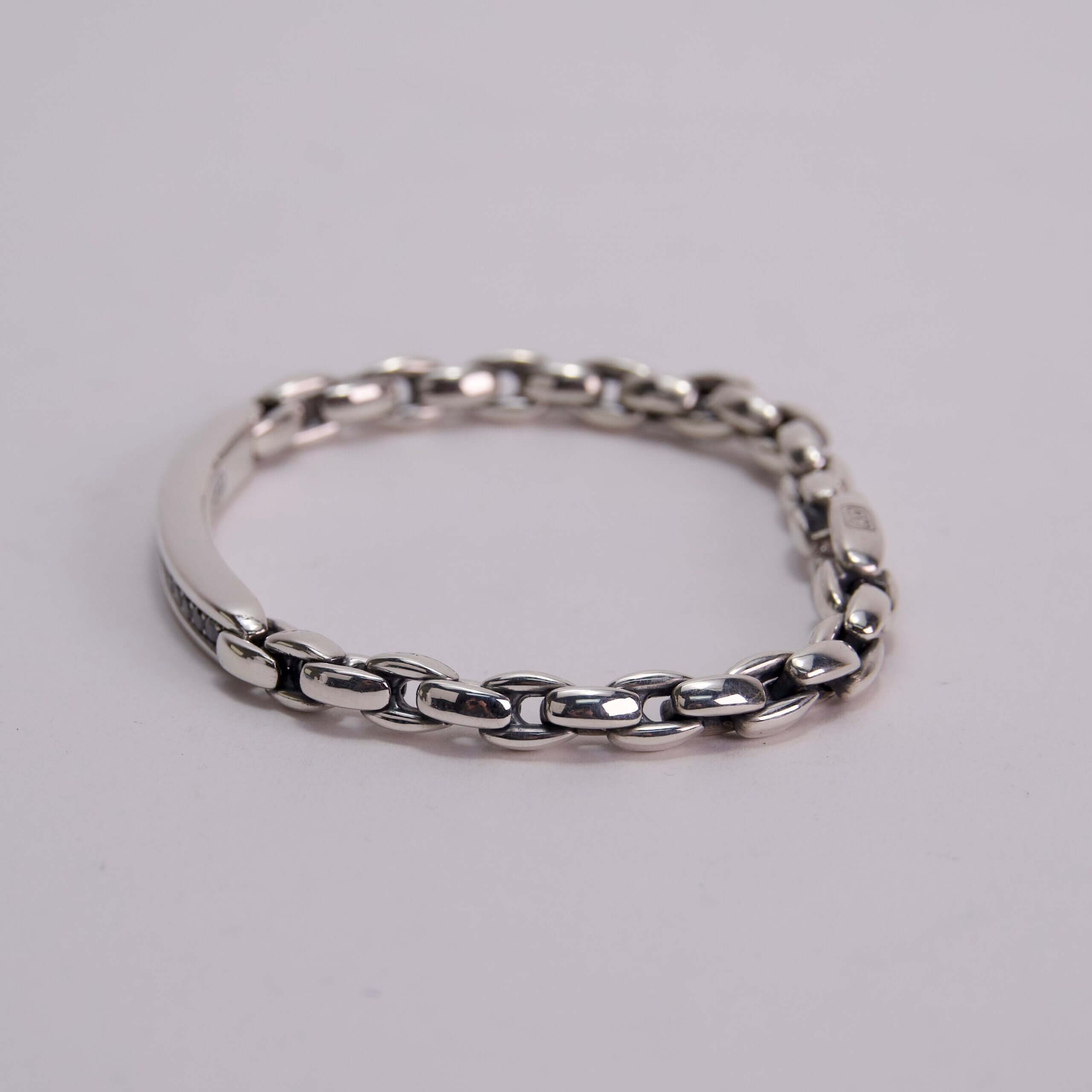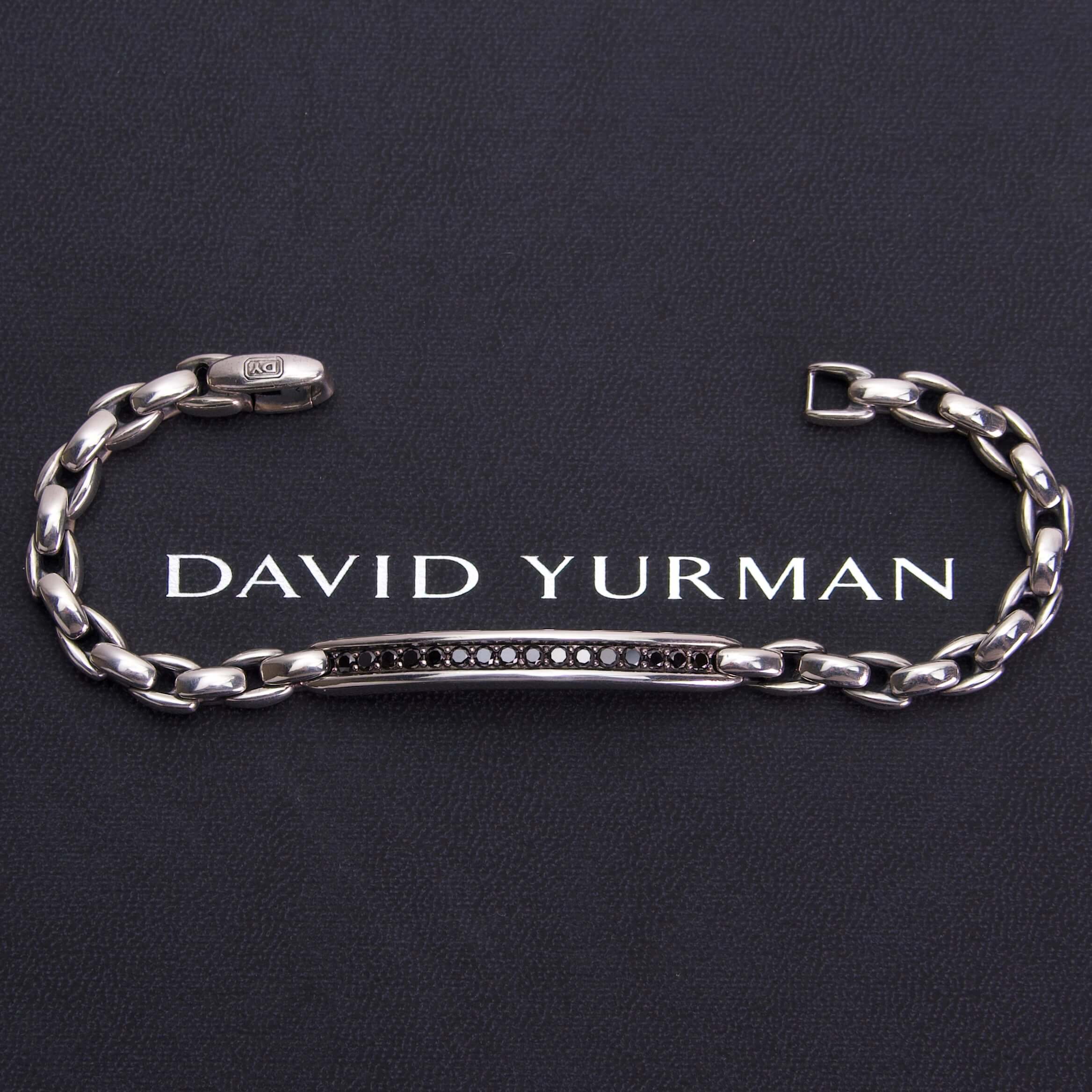 David Yurman 925 Sterling Silver Black Diamond ID Bracelet – 8”