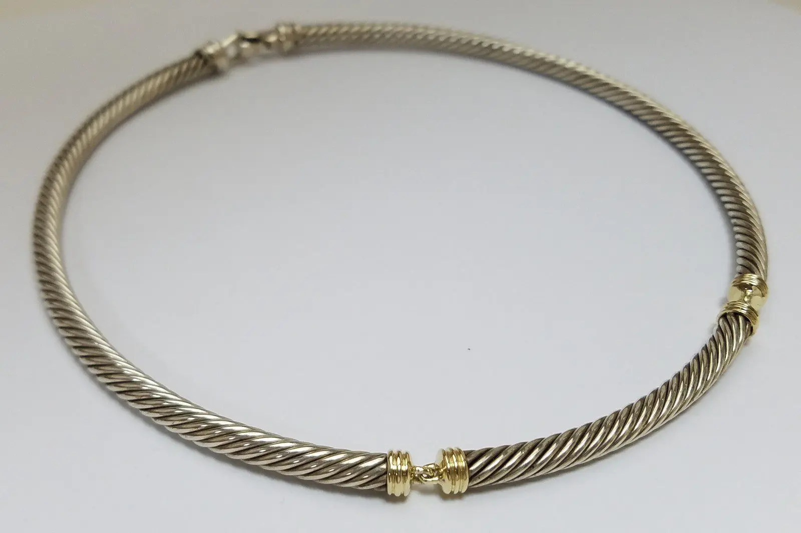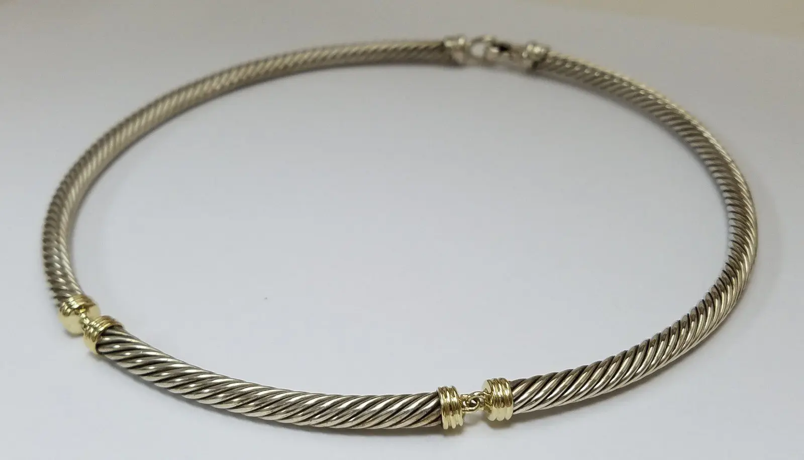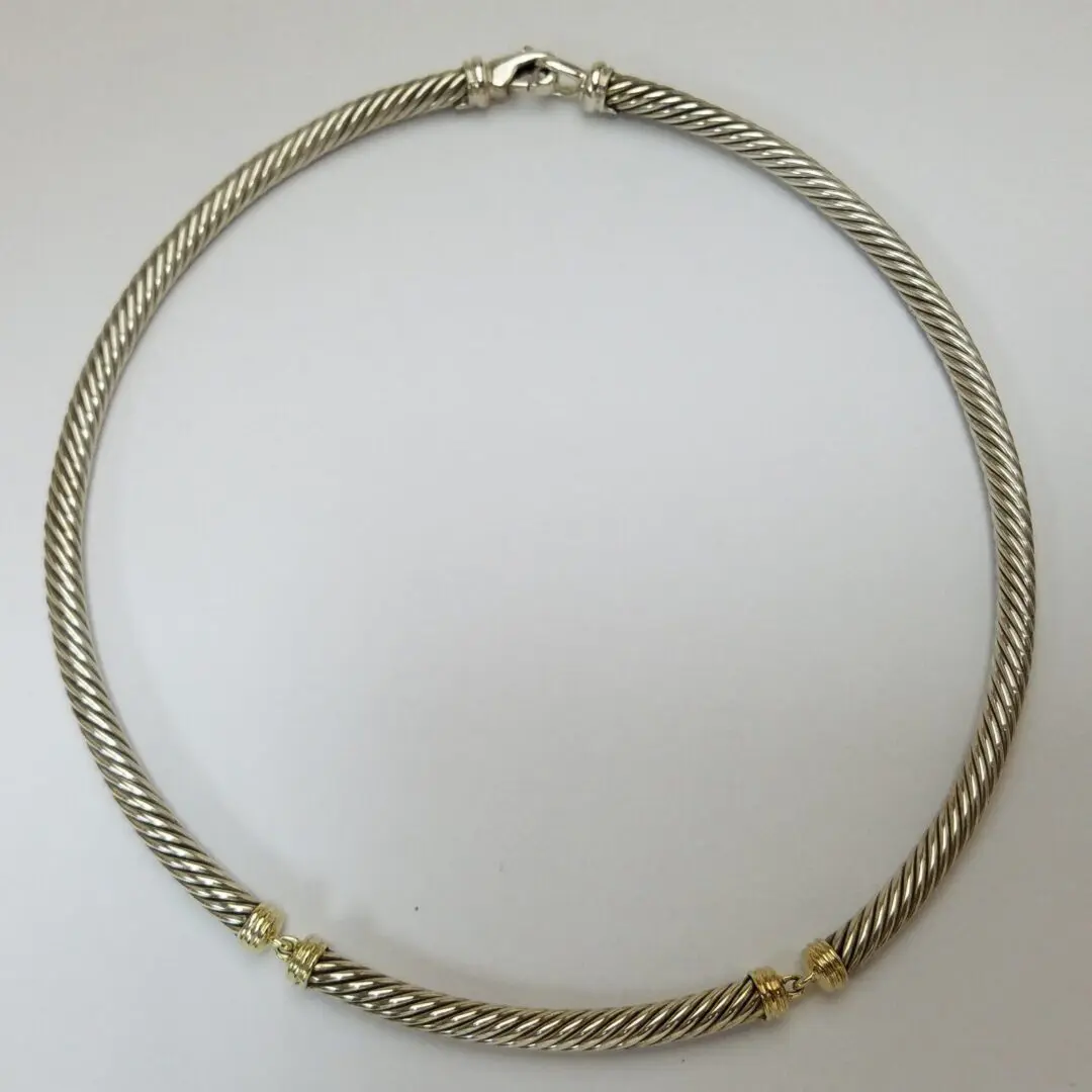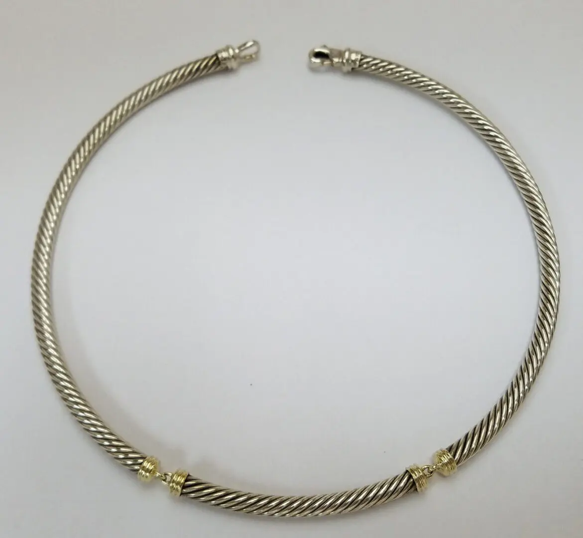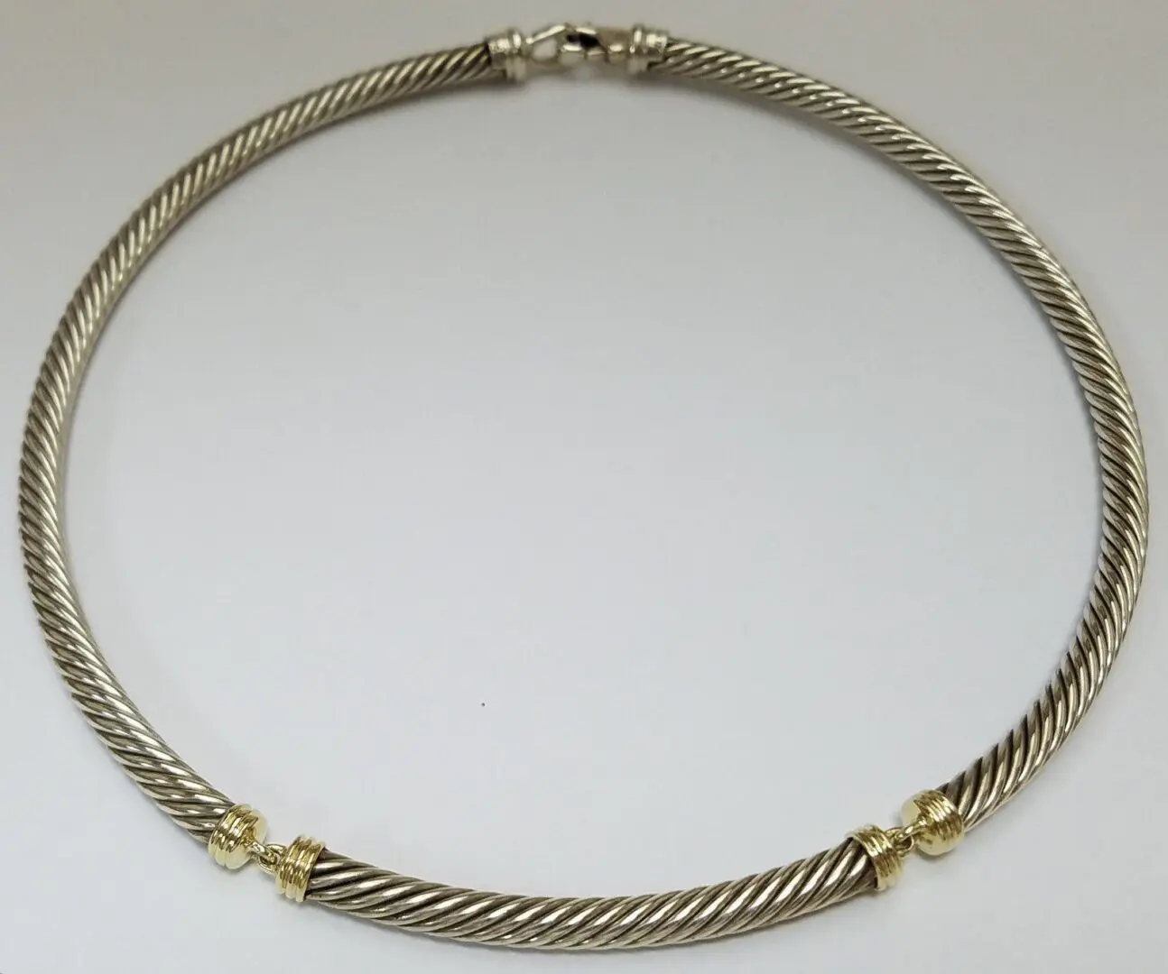 David Yurman 925 Sterling Silver 14k Gold Cable Choker Segmented Necklace