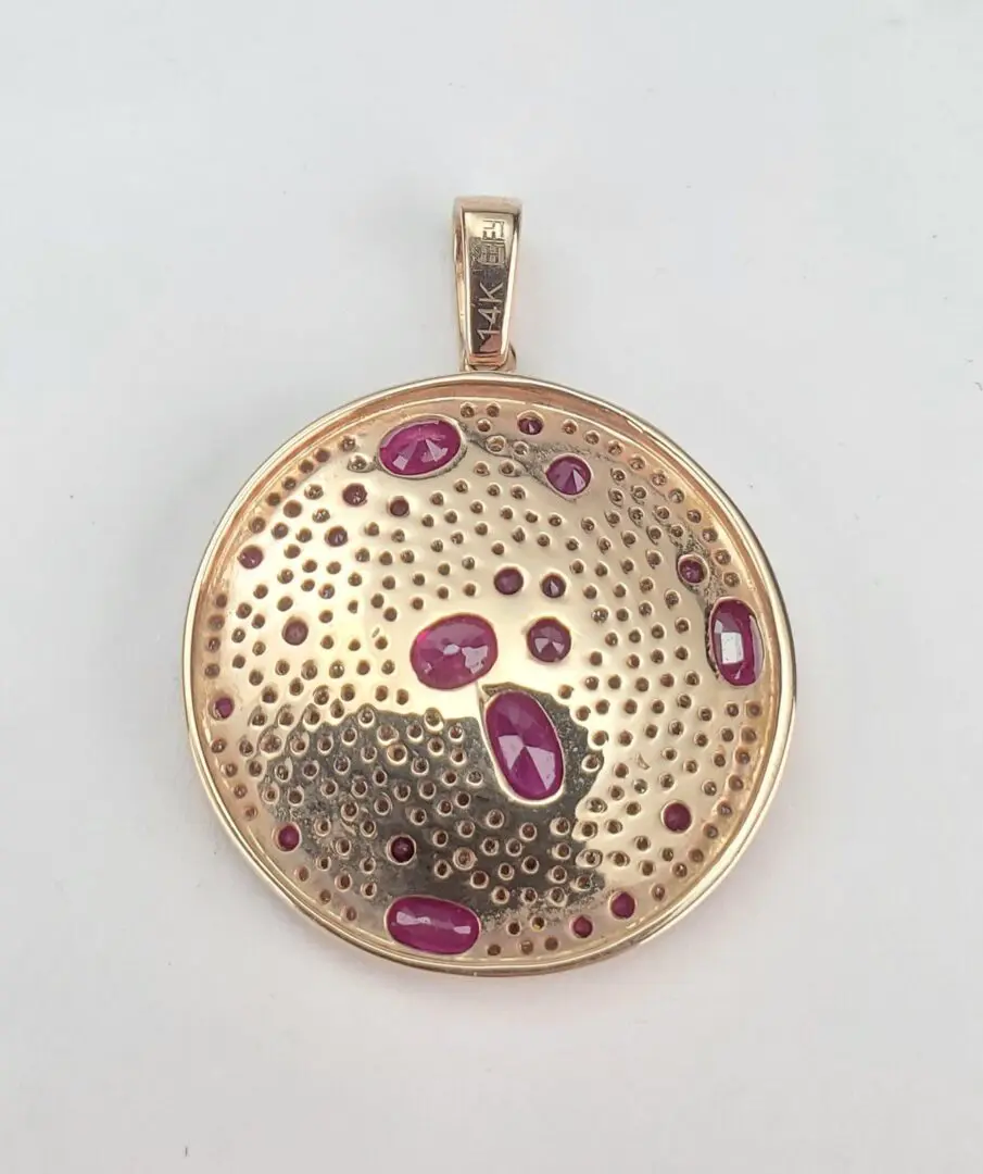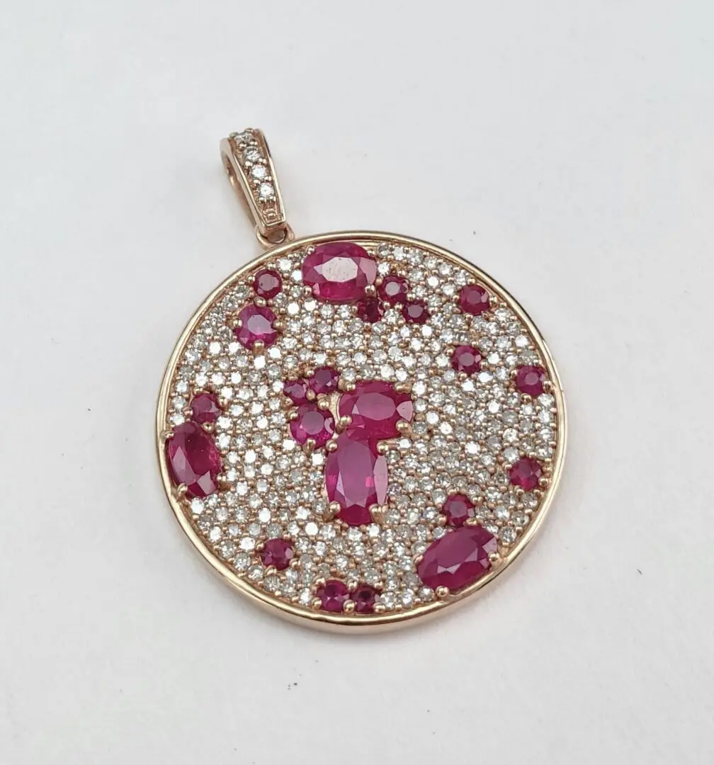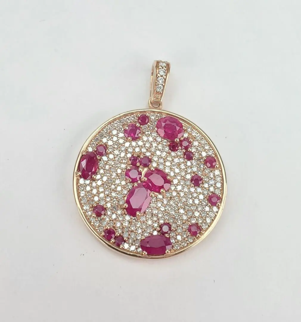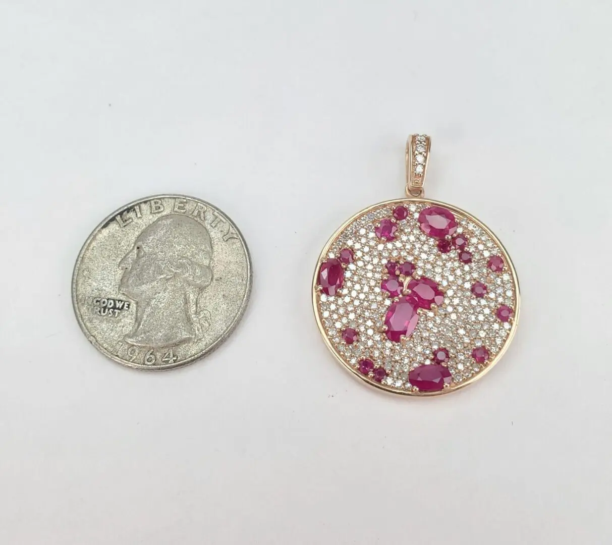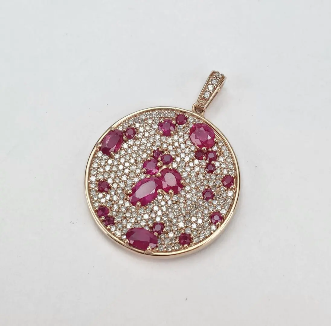 Effy 14k Rose Gold 3.50ctw Natural Ruby Pave Diamond Circle Drop Pendant 1 3/8''