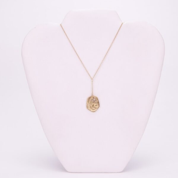 The pendant gracefully hangs from a 18K gold rolo chain, secured with a S-hook clasp for everyday wear. Its organic floral design adds a touch of nature-inspired sophistication, while the diamond accent provides just the right amount of sparkle.