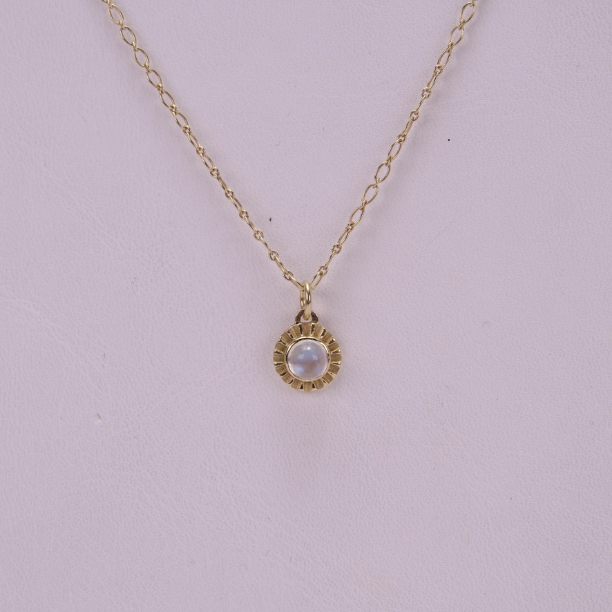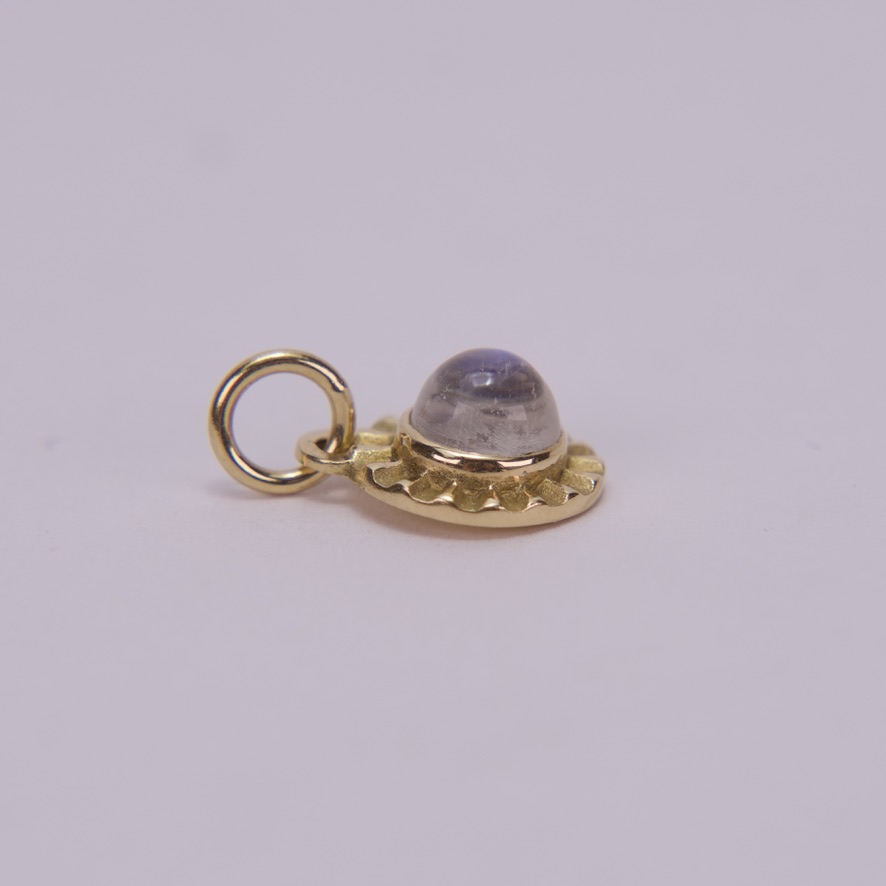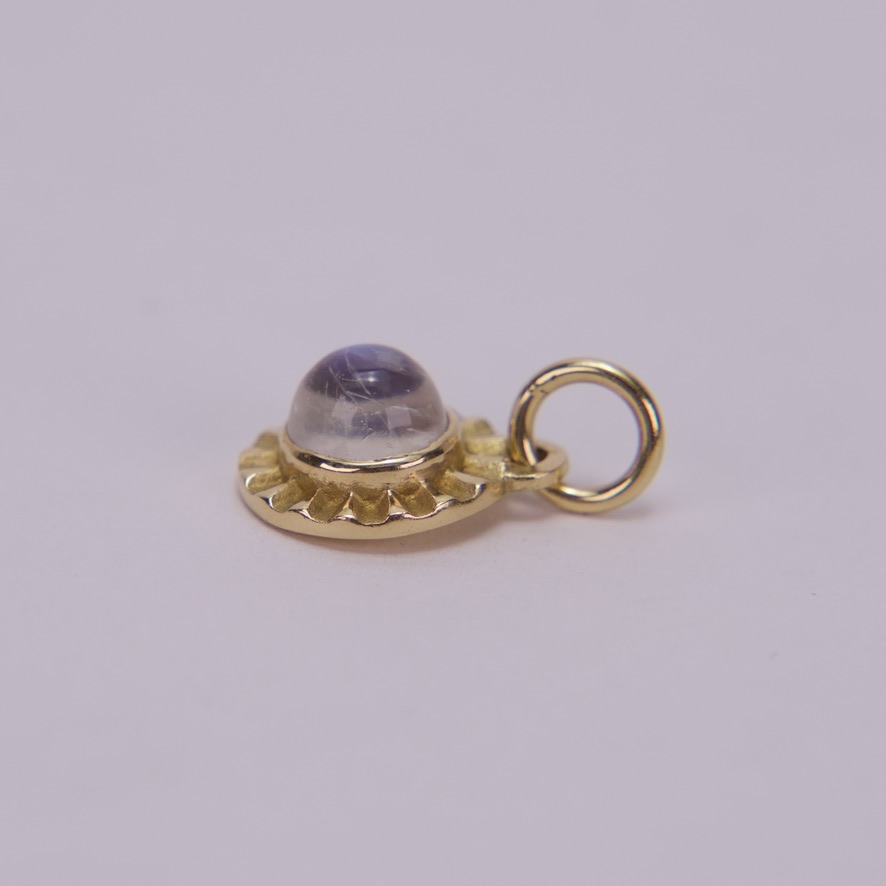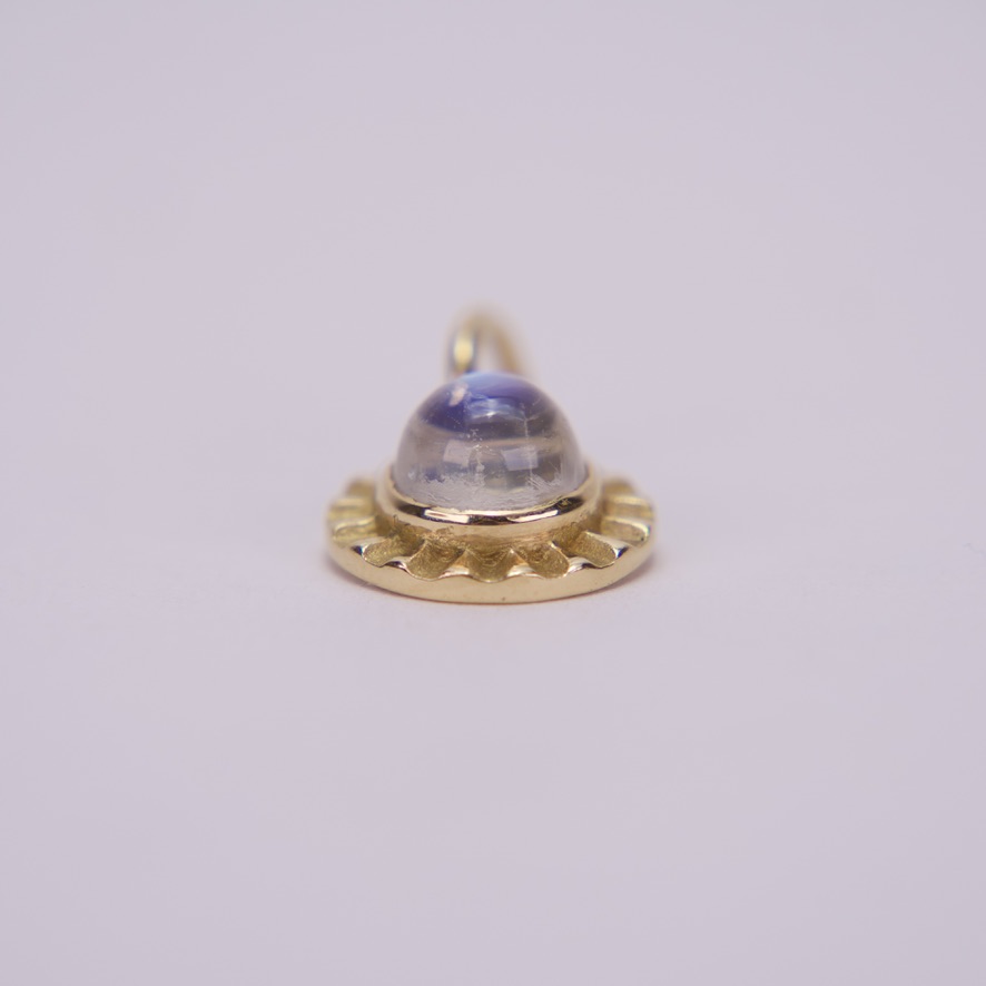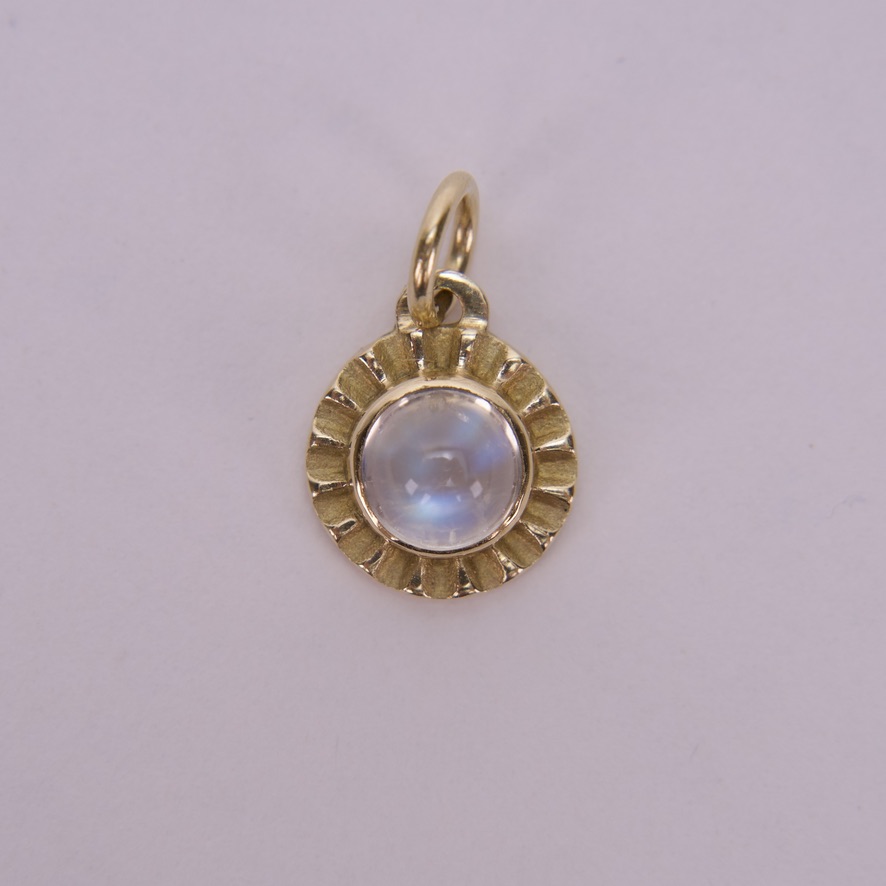 Pamela Zamore 18k Yellow Gold Cabochon Moonstone Sunburst-Style Texture Small Pendant