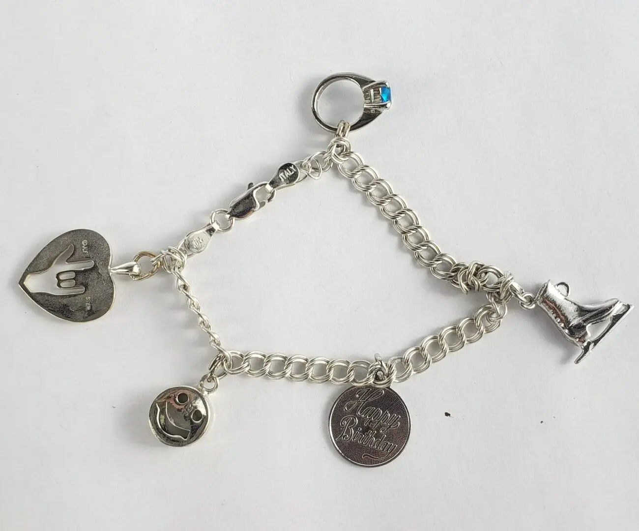 Sterling Silver Skating Birthday Heart Rocker Smiley Face Engagement Charm Br…