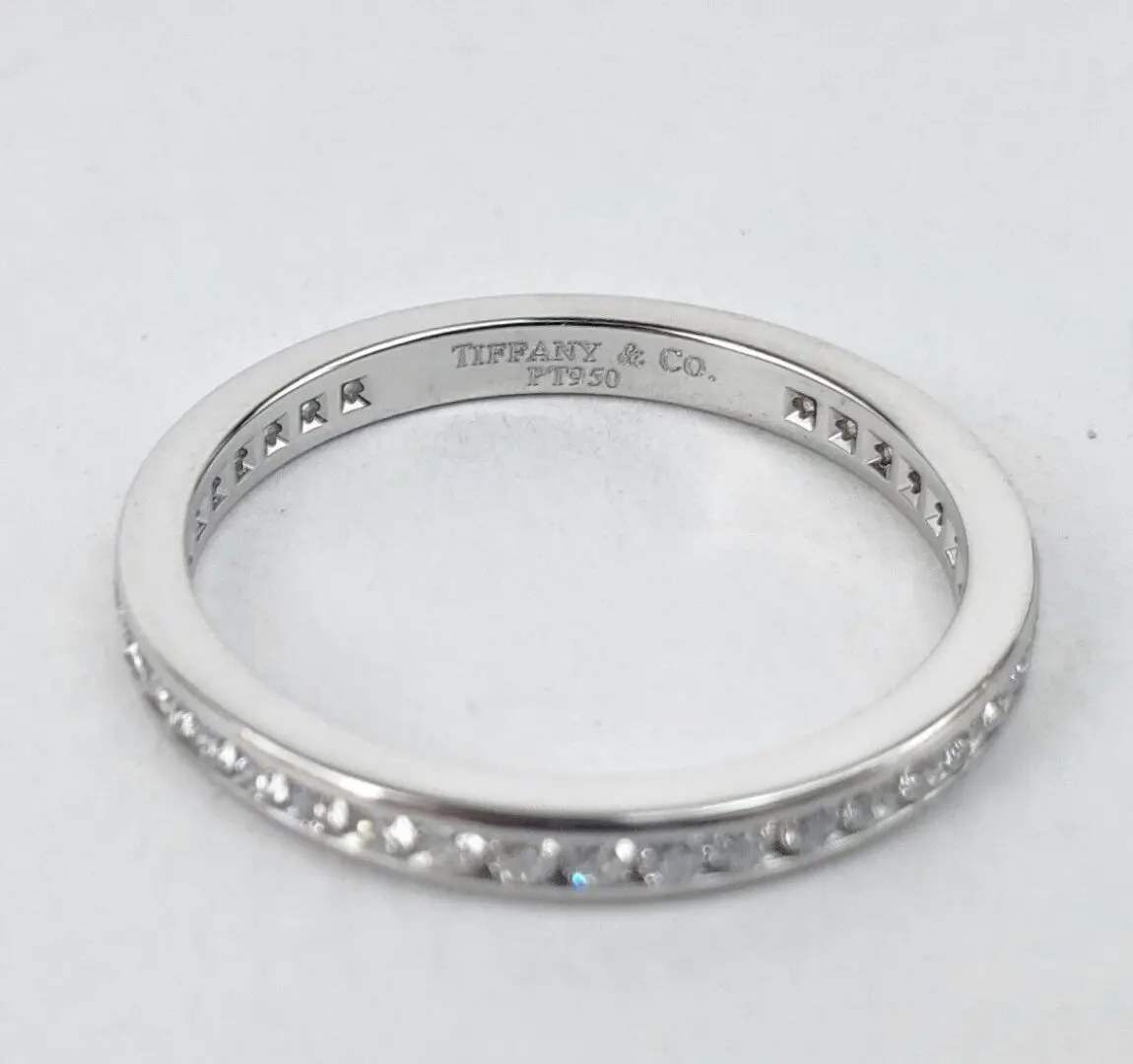 Tiffany & Co 950 Platinum 2.3mm .60ct Diamond Channel Set Eternity Band Ring 7'