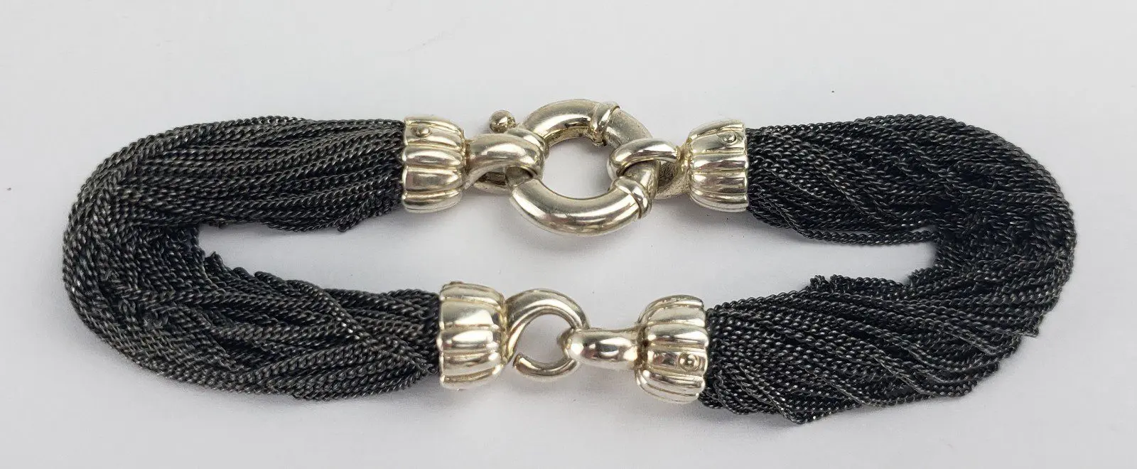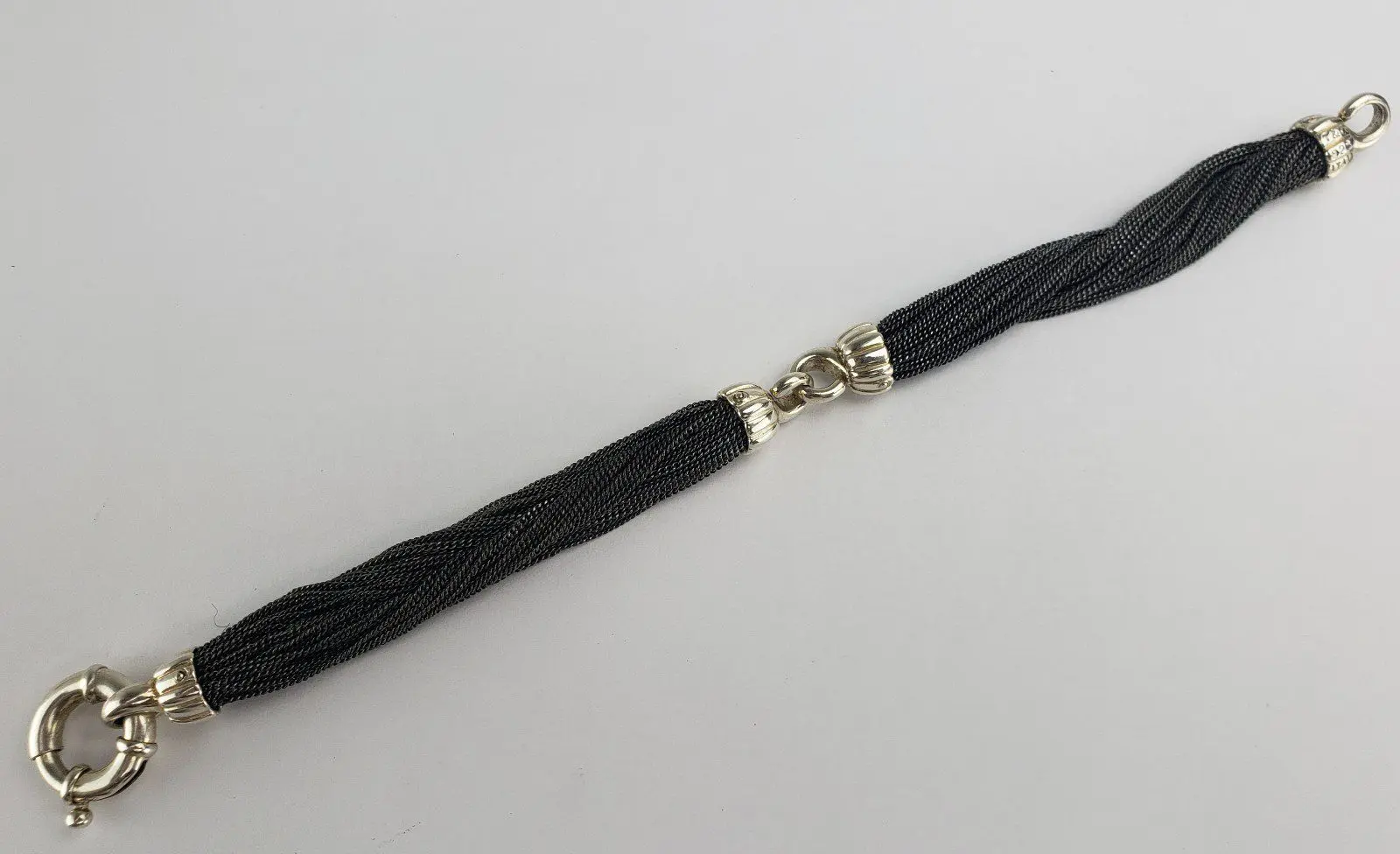 Tiffany & Co. Rare Sterling Silver Multi Strand Black Oxidized Mesh Bracelet