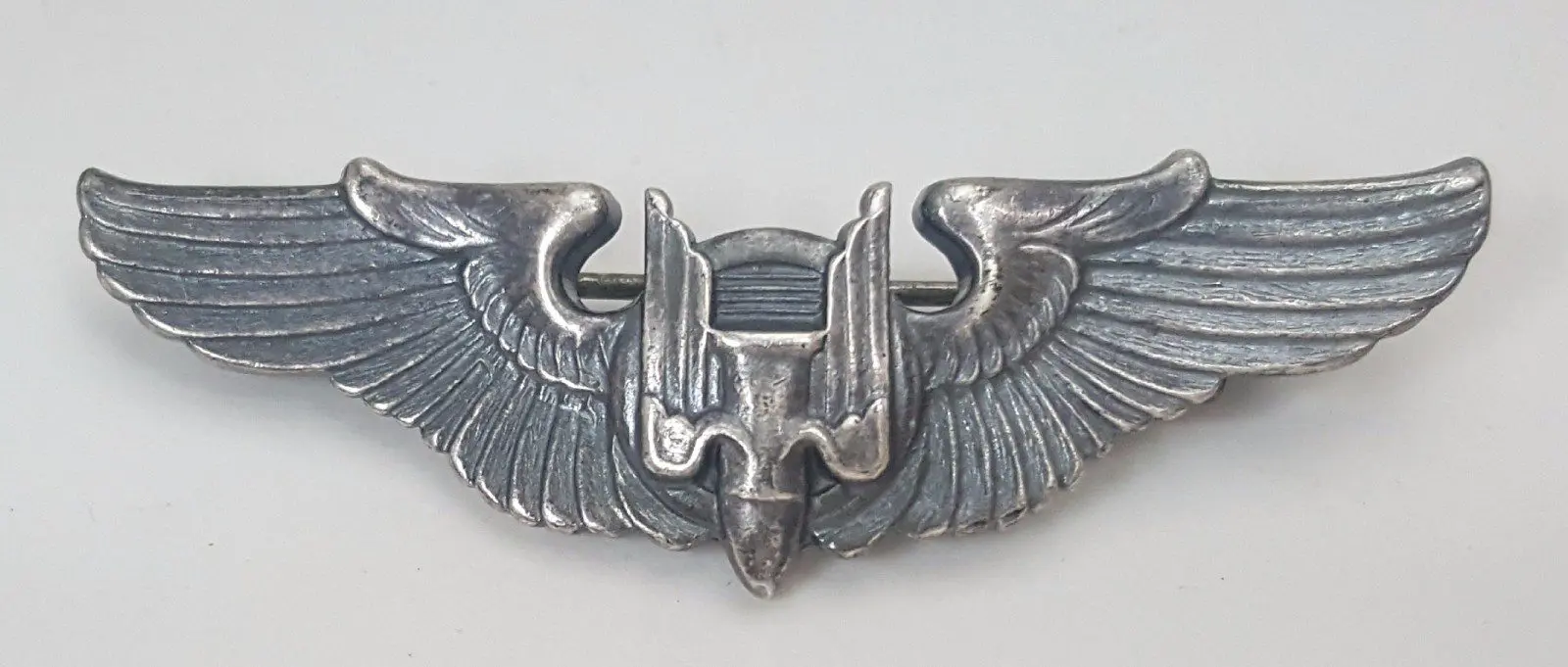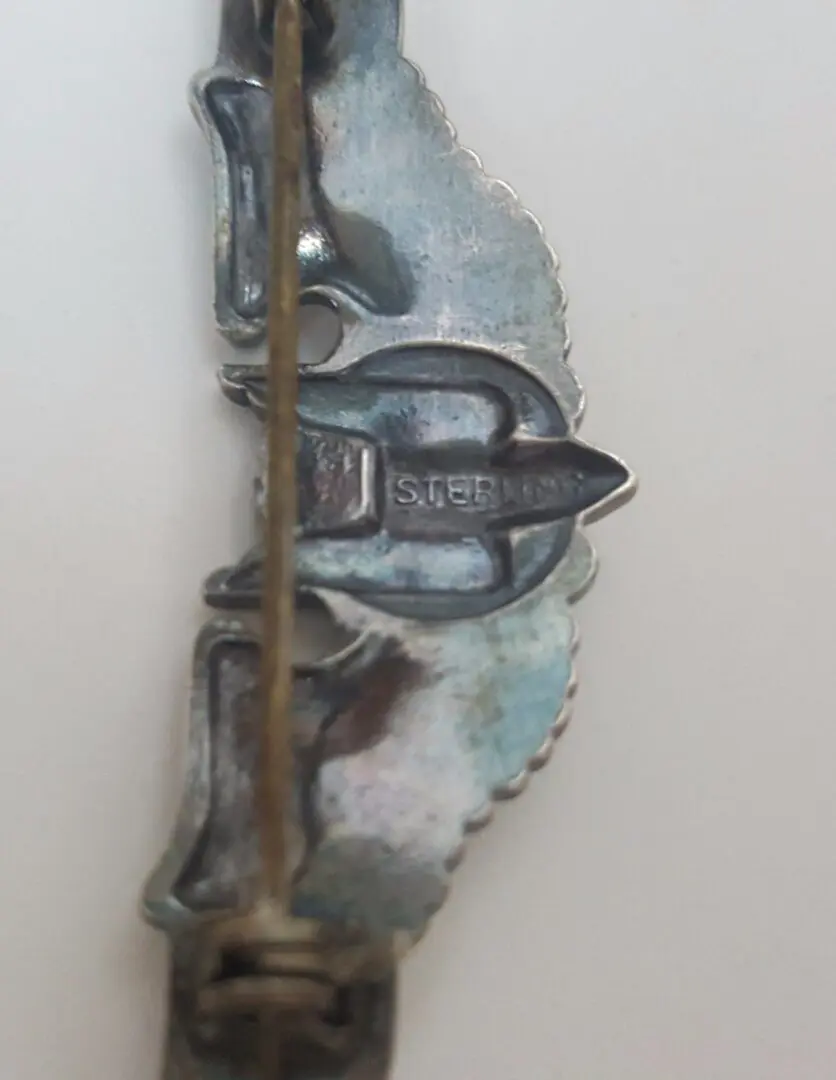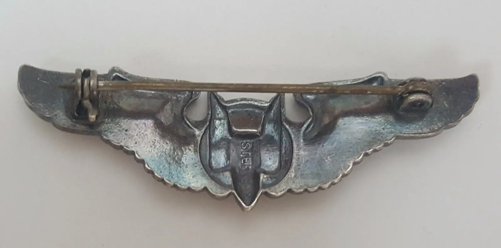 Vintage WW2 WWII Sterling Silver Air Force Aircraft Wings Aerial Gunner Pin