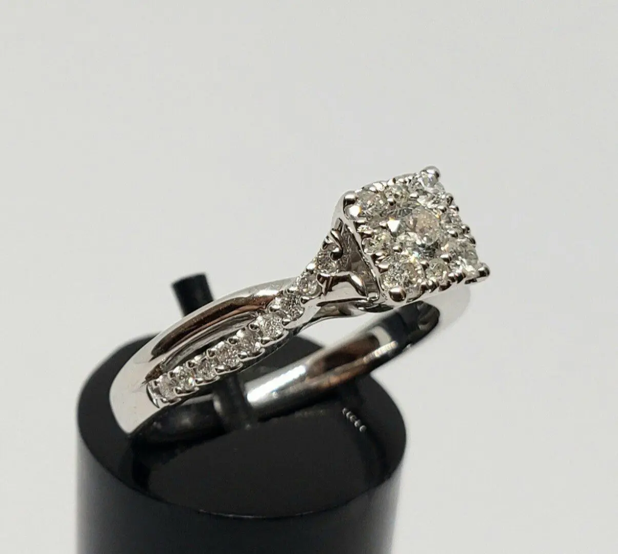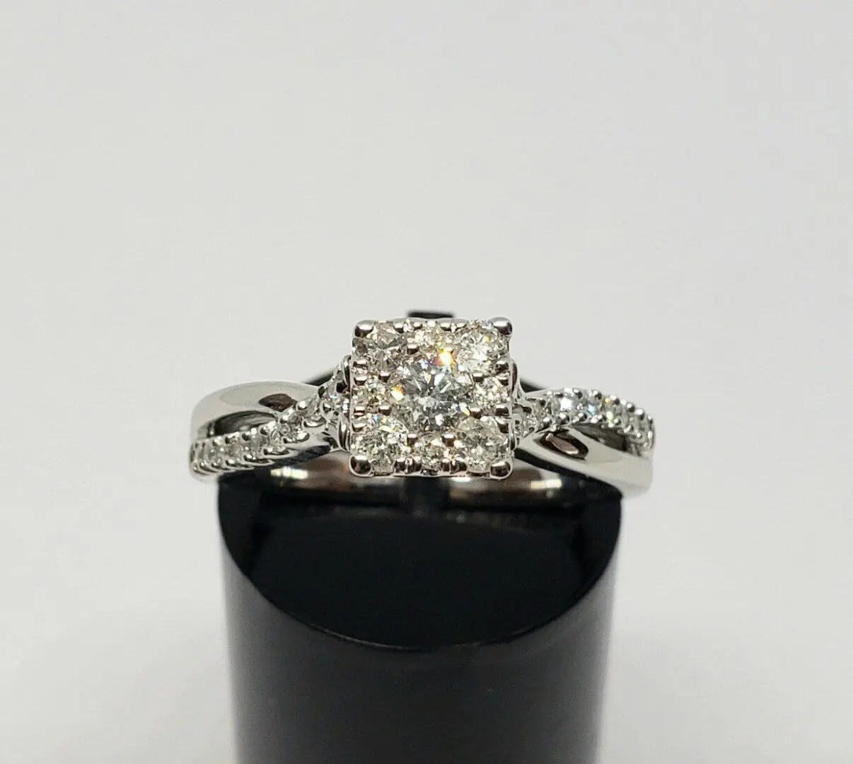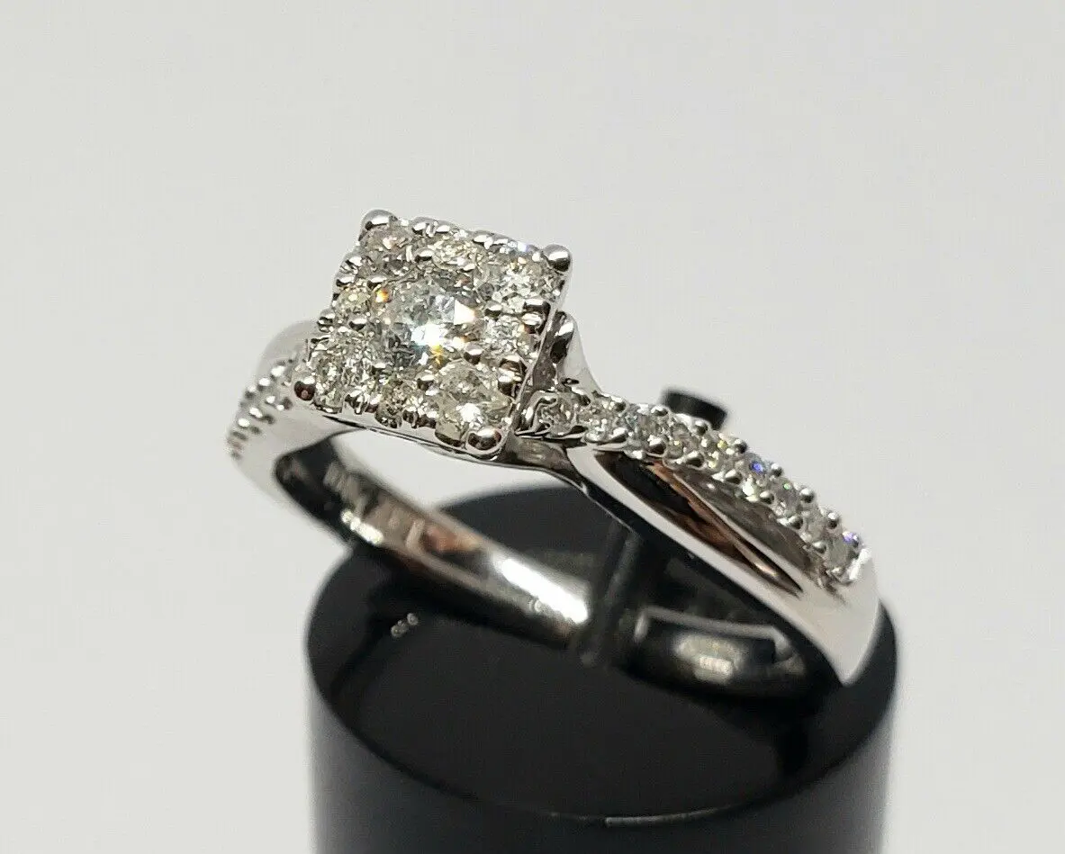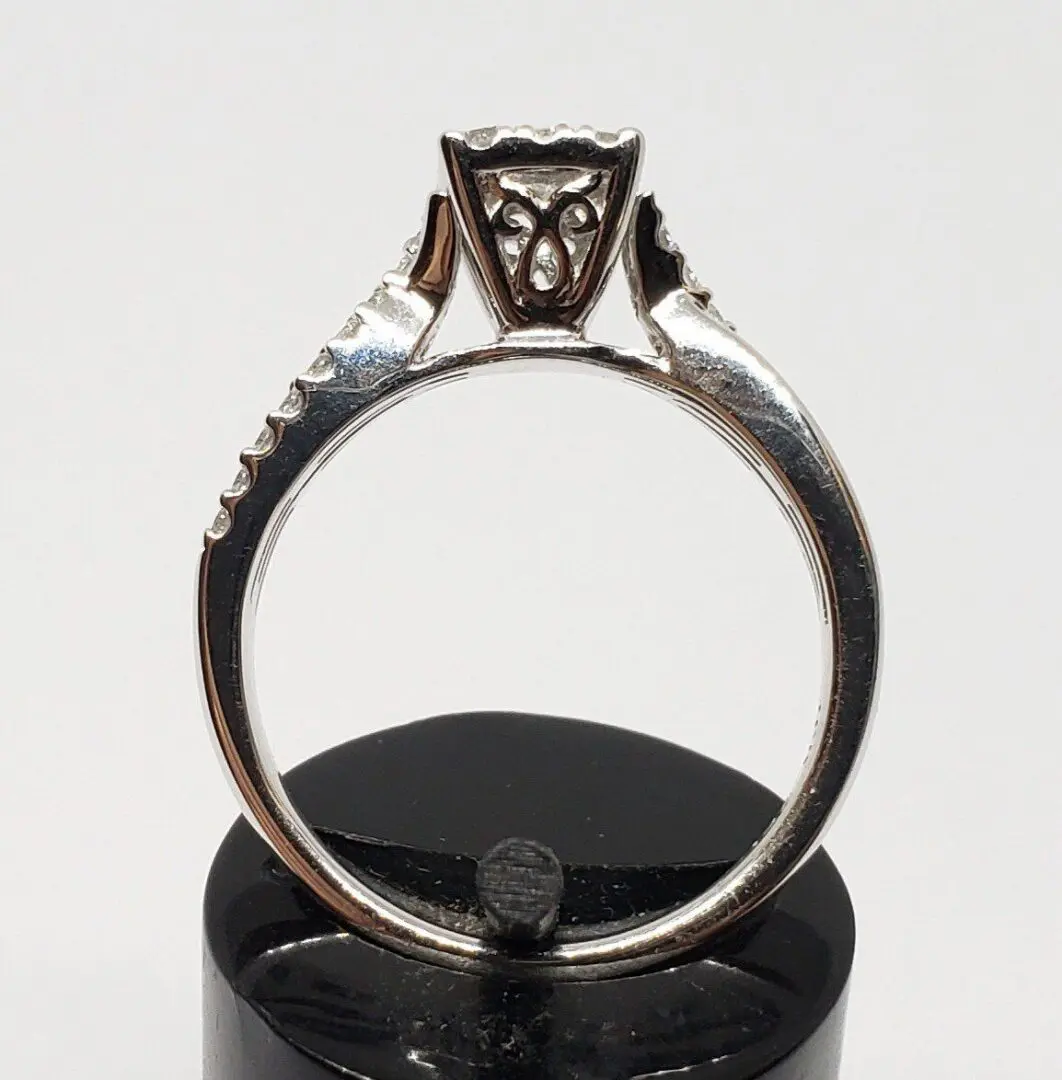 ZEI 10k White Gold Diamond Illusion Setting Split Shank Engagement Wedding Ring